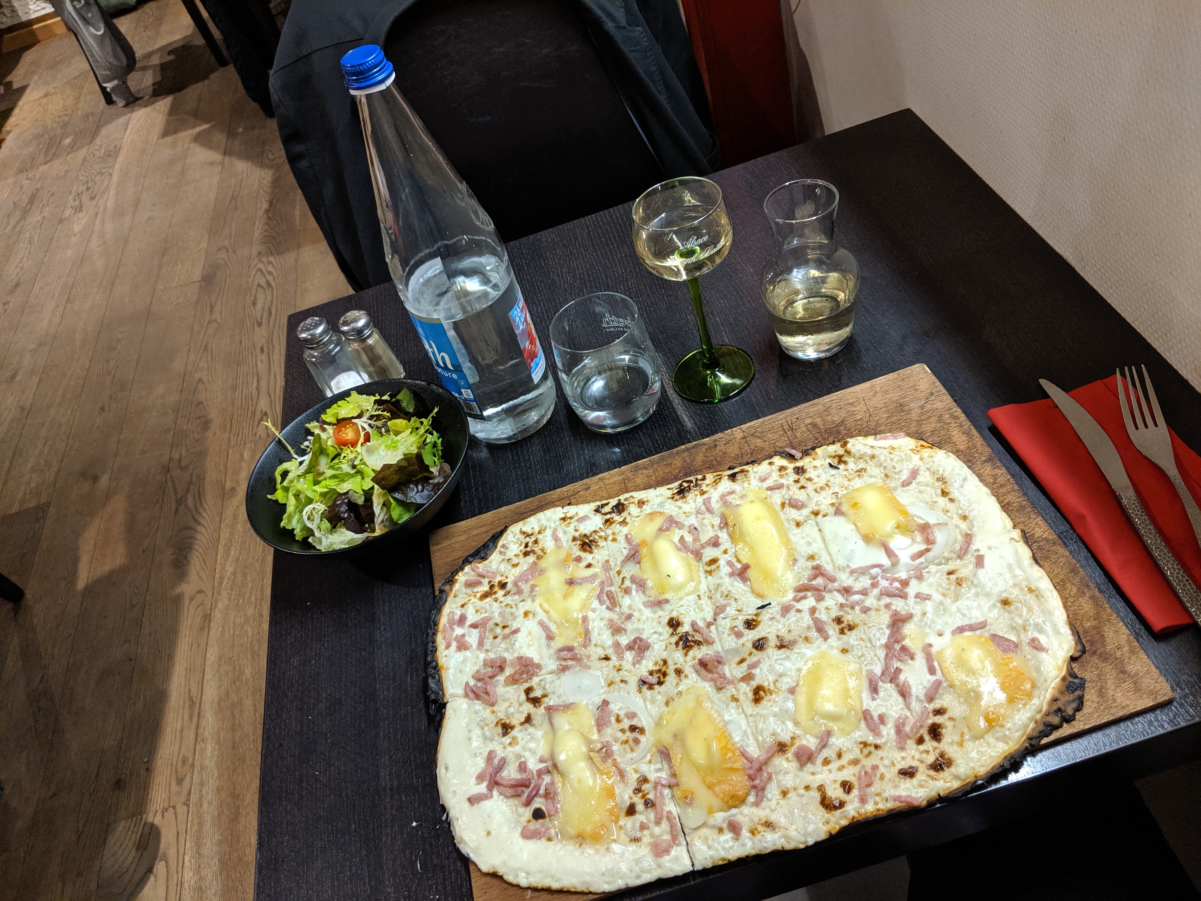 Petit week-end avec une amie à Strasbourg, on s'arrête à La Fignette pour déguster les fameuses tartes flambées qui étaient très bonnes ! Petit bonus à notre serveur Ange (team jaune) qui transmet son énergie et sa bonne humeur ! Petite information, le restaurant ne prend pas de réservation au mois de Décembre, il faut prévoir de faire la queue avant de bien manger.