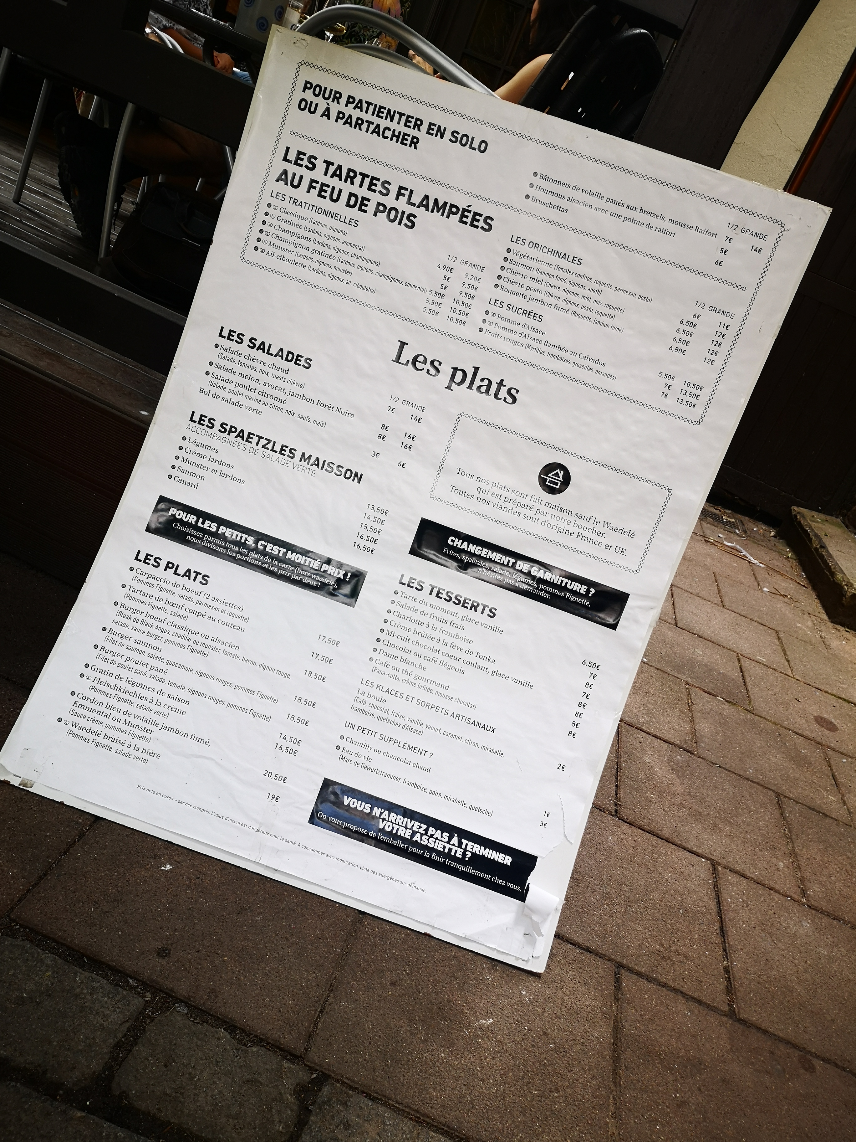 Je viens de terminer de manger. Mais que c'est bon toutes ces tartes flambées ! Le cadre de la terrasse est sympa, le service est irréprochable et sympathique, les prix sont corrects, ... Fun fact, la carte est marrante (allez-y, vous verrez par vous même !).