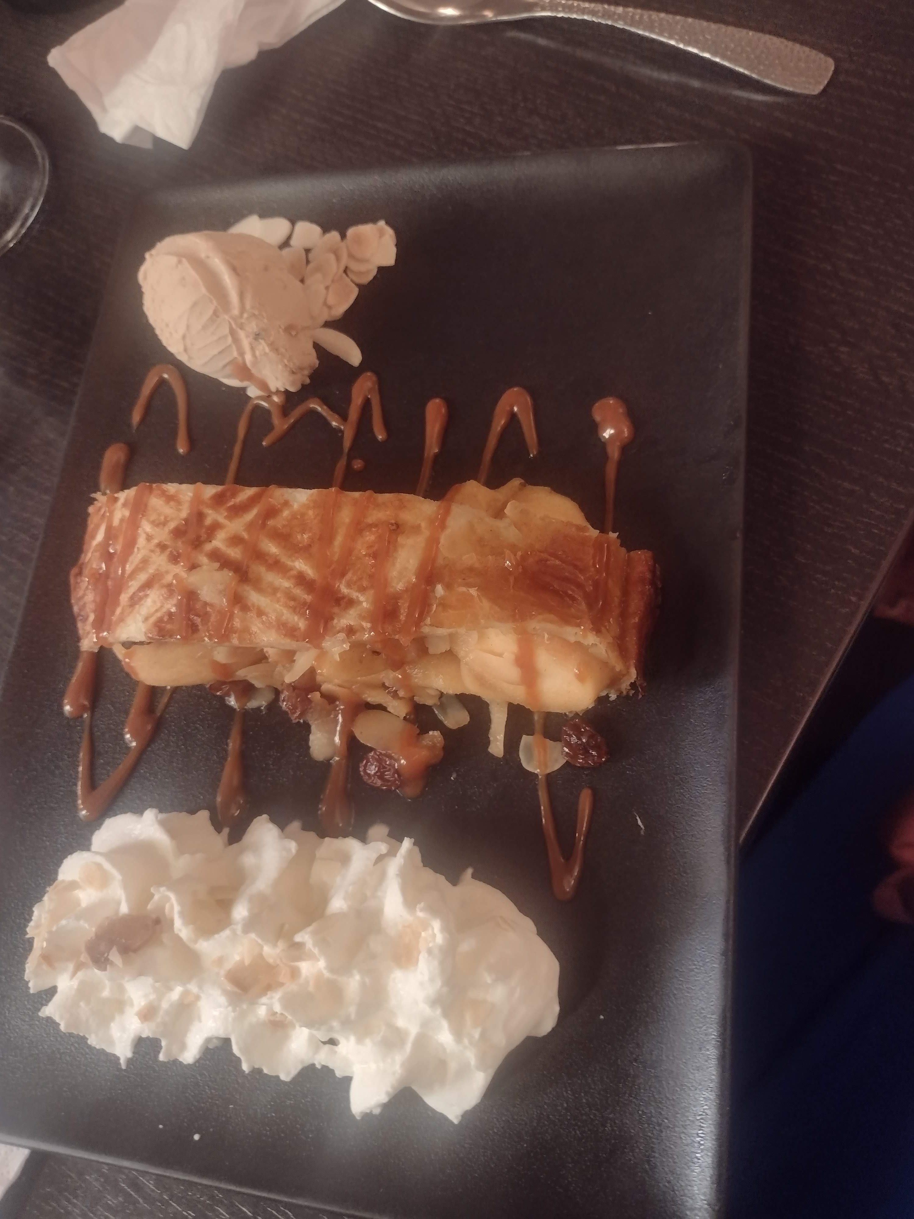 Super soirée ! La nourriture était délicieuse. Le service était impeccable, un grand merci à la serveuse pour sa gentillesse. J'attribue 4 étoiles car nous avions demandé à prendre l'apéritif tranquillement avant le plat, mais celui-ci est arrivé bien trop rapidement, sans nous laisser le temps de l'apprécier. Malgré cela, l'expérience était vraiment agréable !