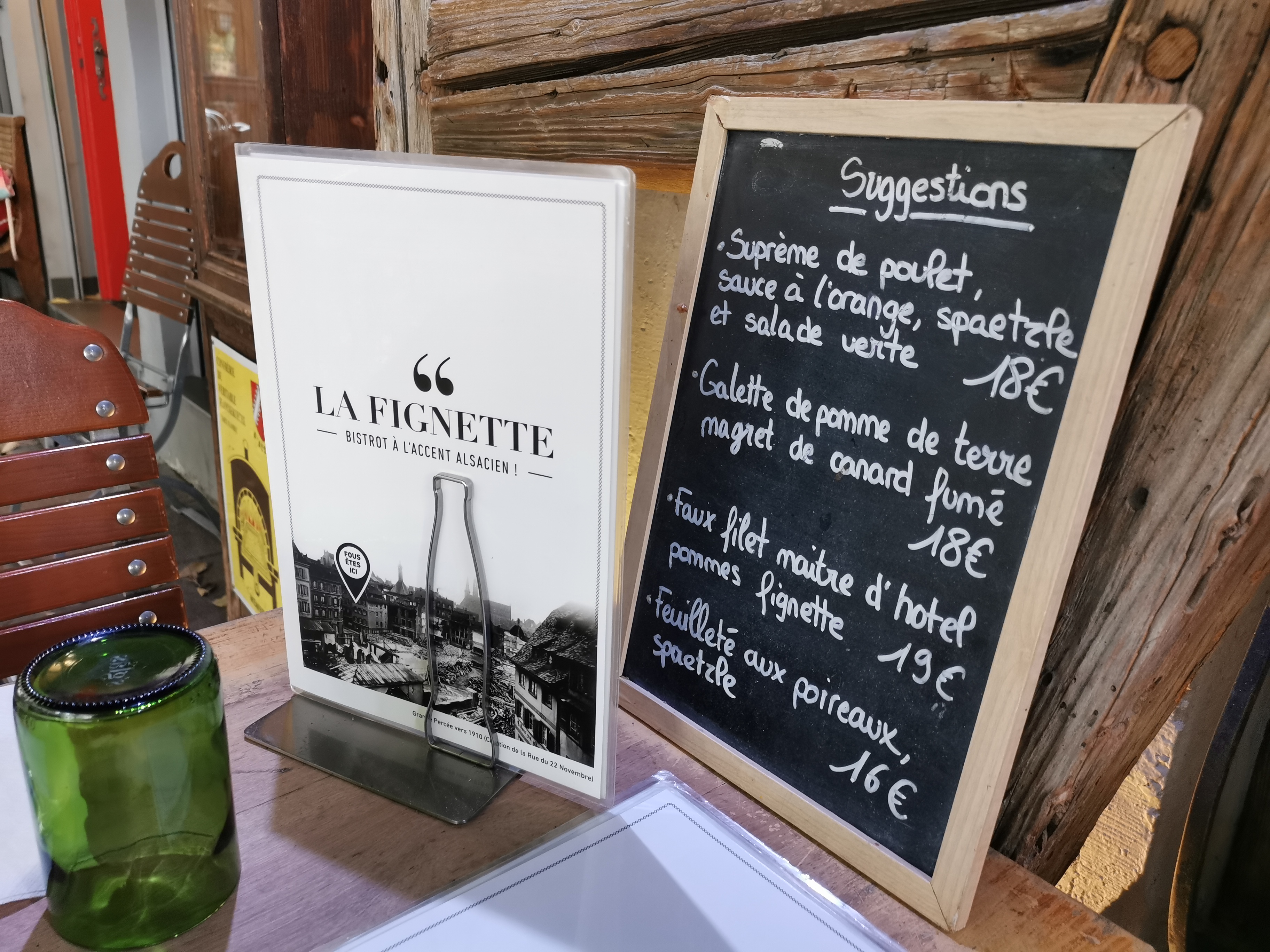 Bistrot pittoresque à la petite France, un détour à La Fignette s'impose à chaque passage à Strasbourg. Cuisine au top, accueil chaleureux, personnel souriant et super sympathique. Petite carte, la qualité des produits sont au RDV. Les plats sont goûteux et niveau quantité, il y a juste ce qu'il faut. Et les tartes flambée, que nous partageons à l'apéro, sont juste extra. Lors de notre dernière visite, malgré le rush des marchés de Noël et le temps d'attente, l'équipe a tout fait pour que notre repas soit agréable, le tout avec le sourire. Ange, notre serveur du jour, a été génial avec nous. Je recomande ce restaurant les yeux fermés.