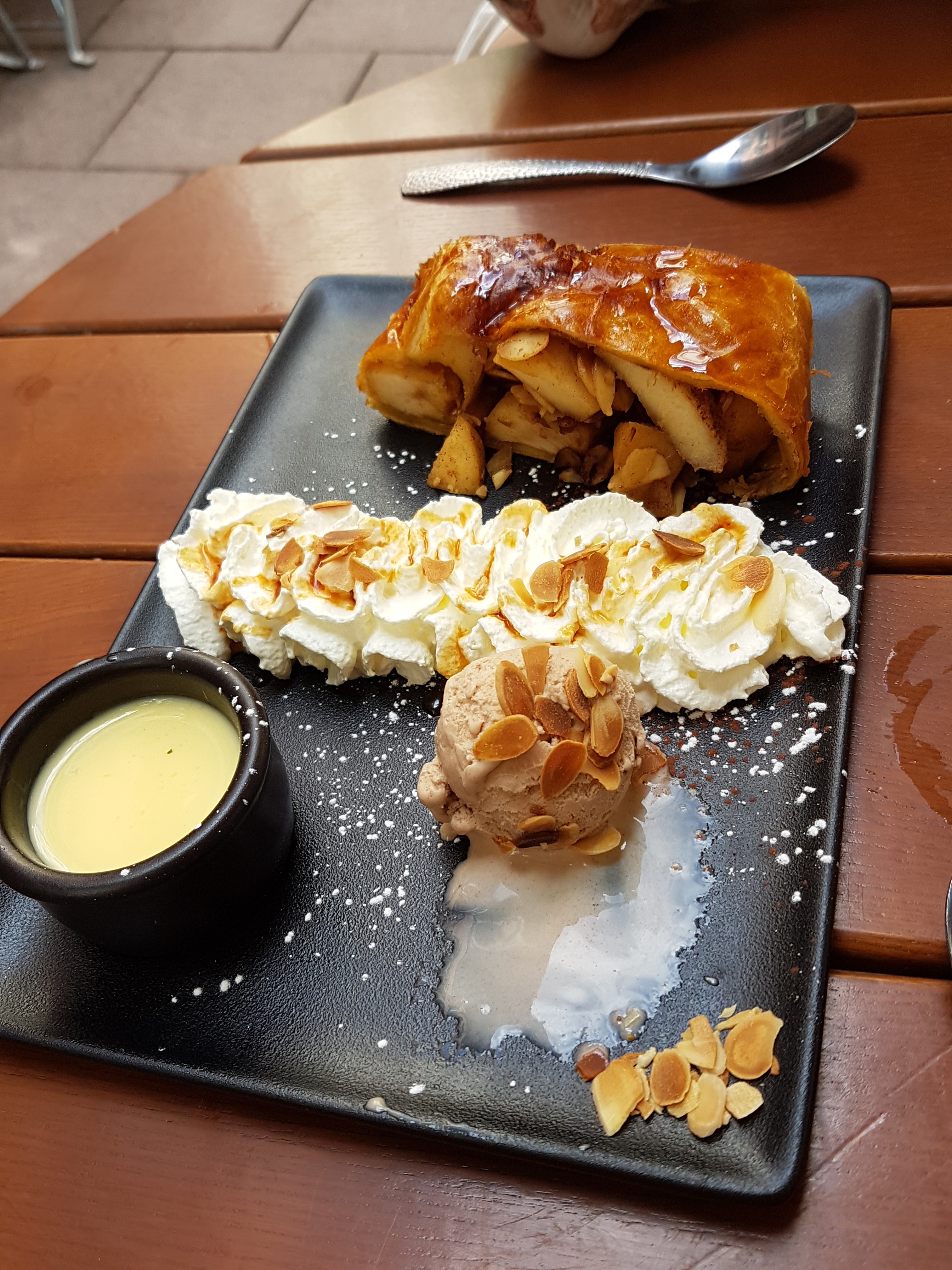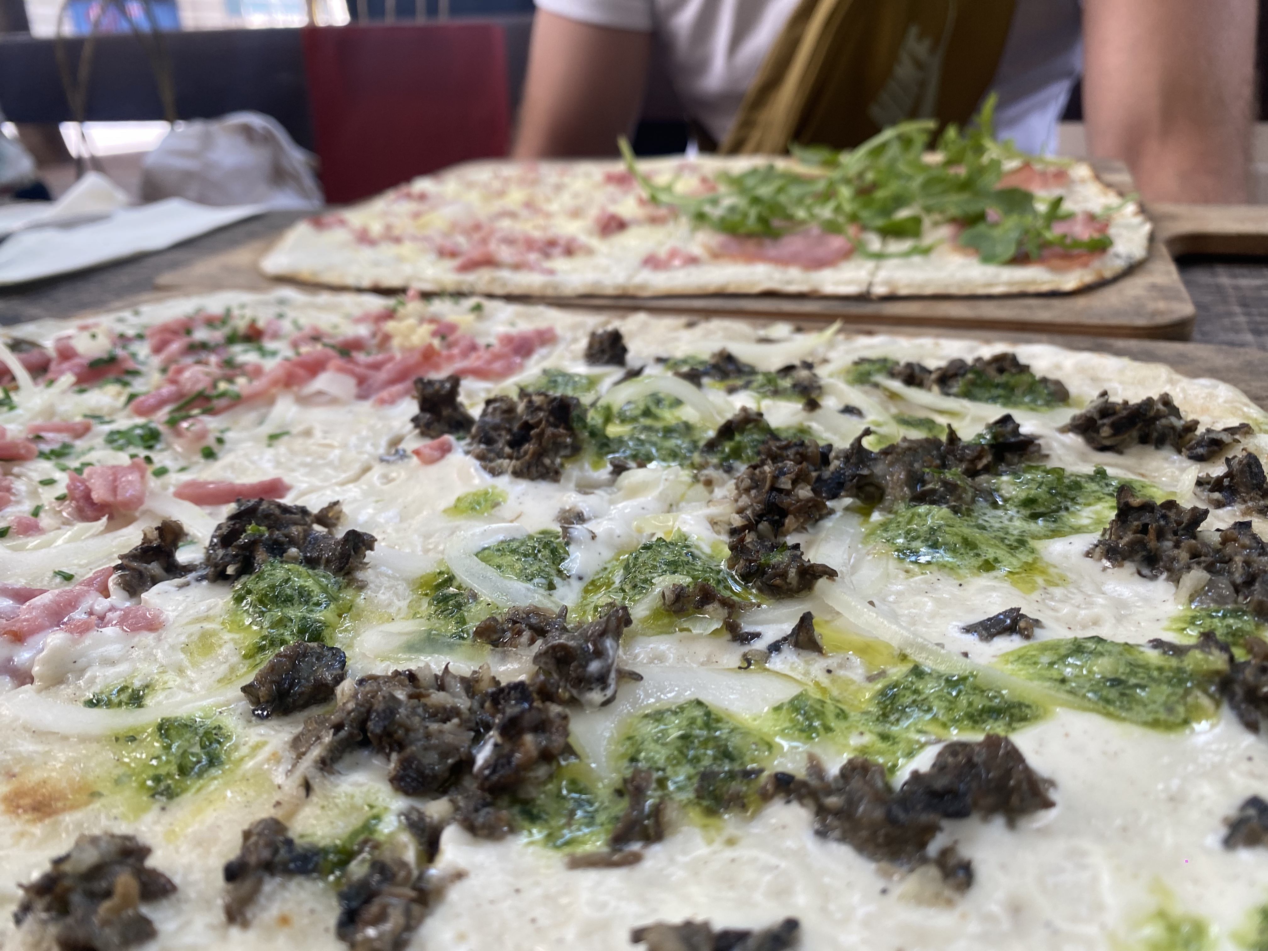 Il ya toujours une file d’attente assez longue mais le service est très rapide et efficace. Le personnel est sympathique et surtout réagit très vite ! Nos tartes flambées sont arrivés en moins de 10min ! La pâte est très fine et légère. J’ai pris celle aux escargots pour changer, elle était bonne mais pas très bien garnie.. Sinon, ils ont une grande terrasse très sympathique, parfait pour l’été. Je reviendrai avec plaisir pour goûter les autres plats qui ont l’air gourmands aussi !