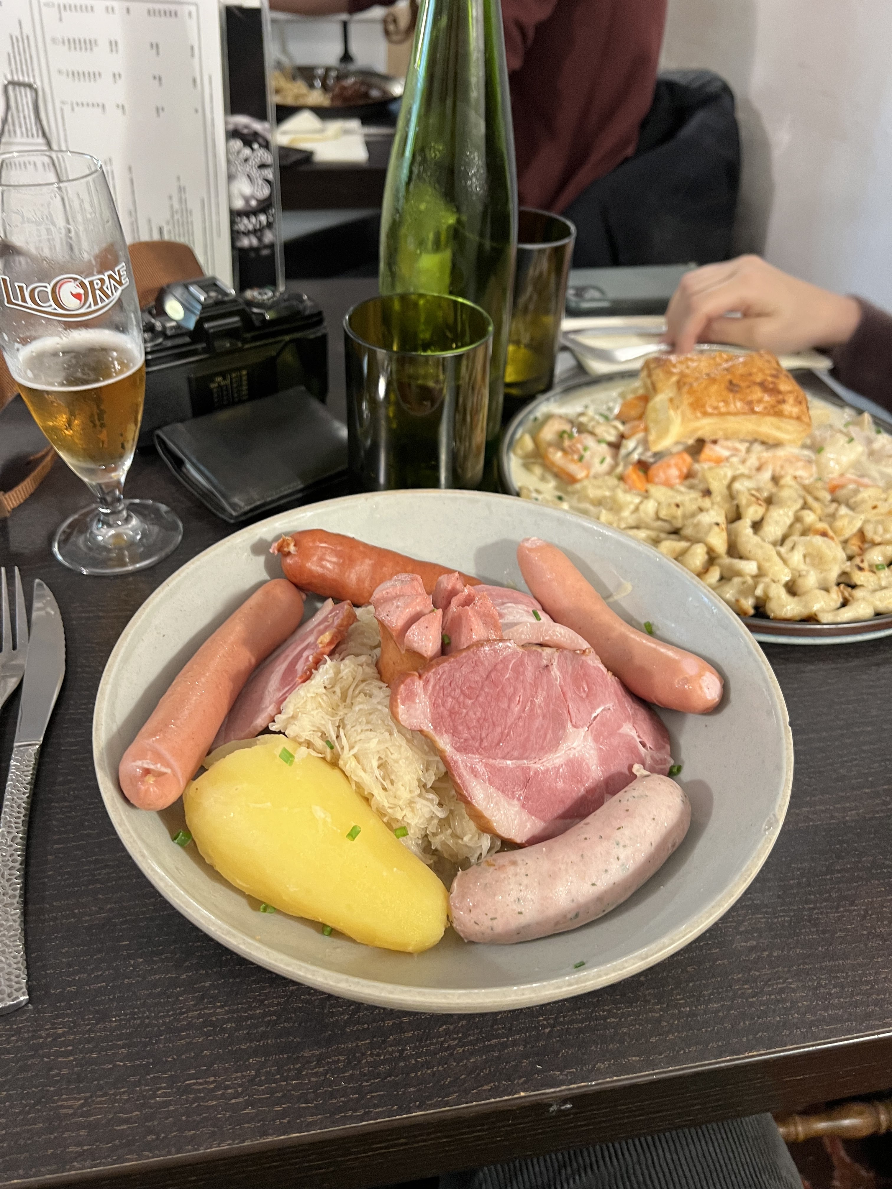 Ce restaurant, très prisé pendant les marchés de Noël, a tenu toutes ses promesses une fois à l’intérieur ! Réputé pour ses délicieuses tartes flambées traditionnelles, il offre une expérience gourmande unique. J’ai, pour ma part, craqué pour des spaetzles : un plat savoureux et (très) copieux qui vaut le détour ! Mention spéciale au personnel, et un grand bravo à la team jaune, notamment à Ange, qui a su illuminer notre repas avec sa bonne humeur.