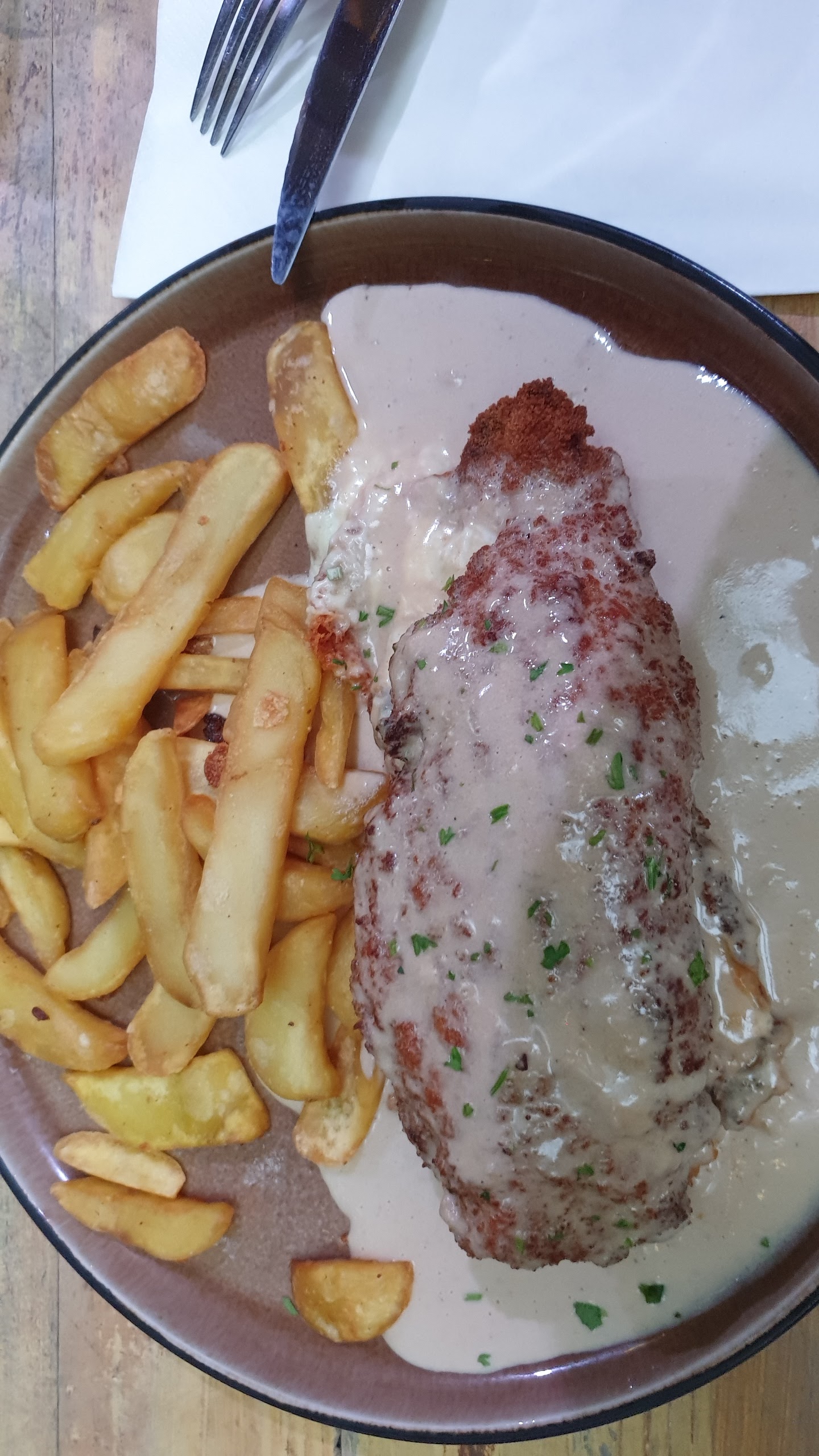 Très bonnes Flamkuche. Ma fille s est regalee avec son cordon bleu copieusement servis de pommes de terre soufflées .Service souriant et serviable dans un cadre très agréable. On y reviendra avec plaisir.