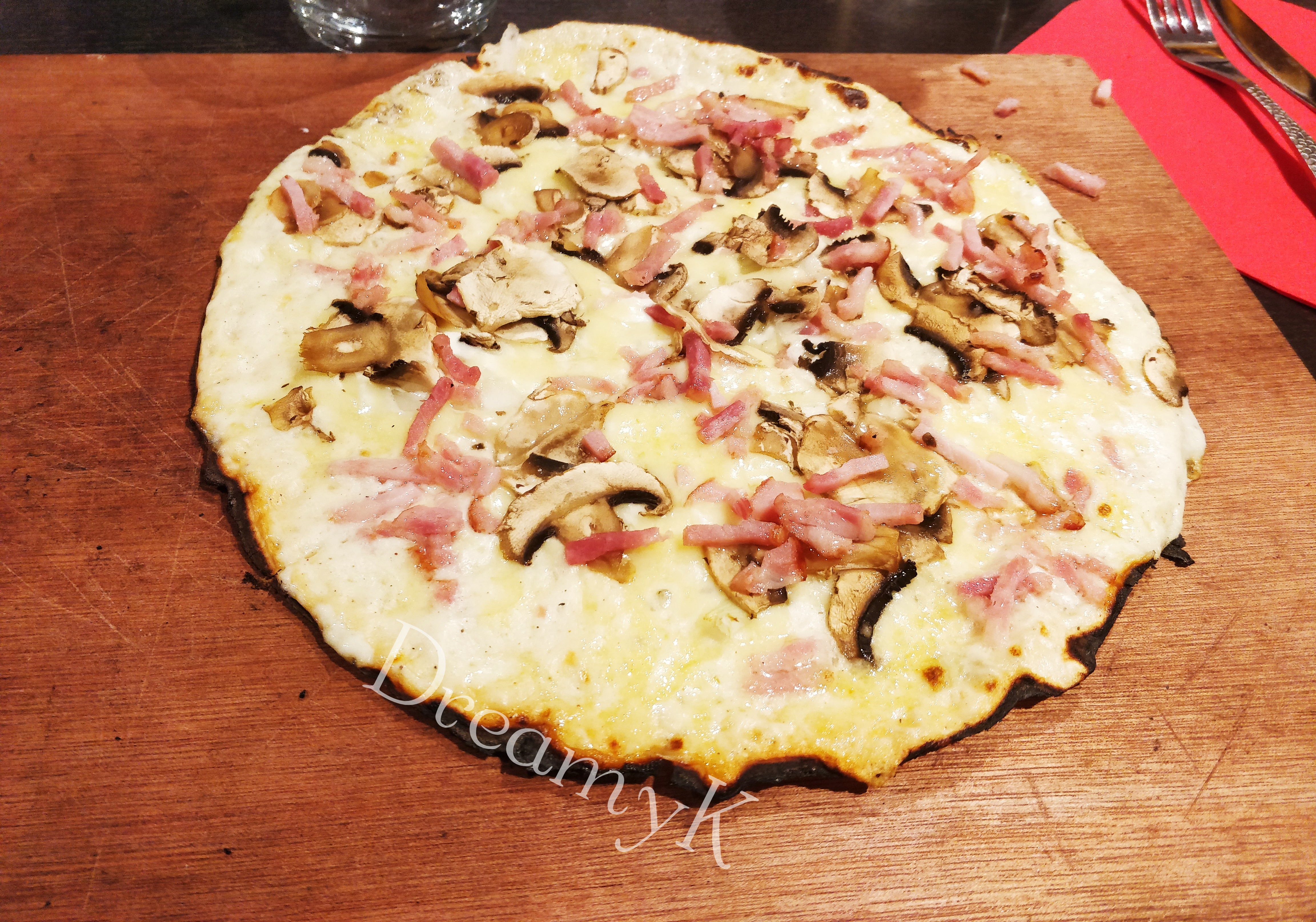 Tres bon acceuil avec le sourire Tarte flambée très bonne salée et sucrée On reviendra