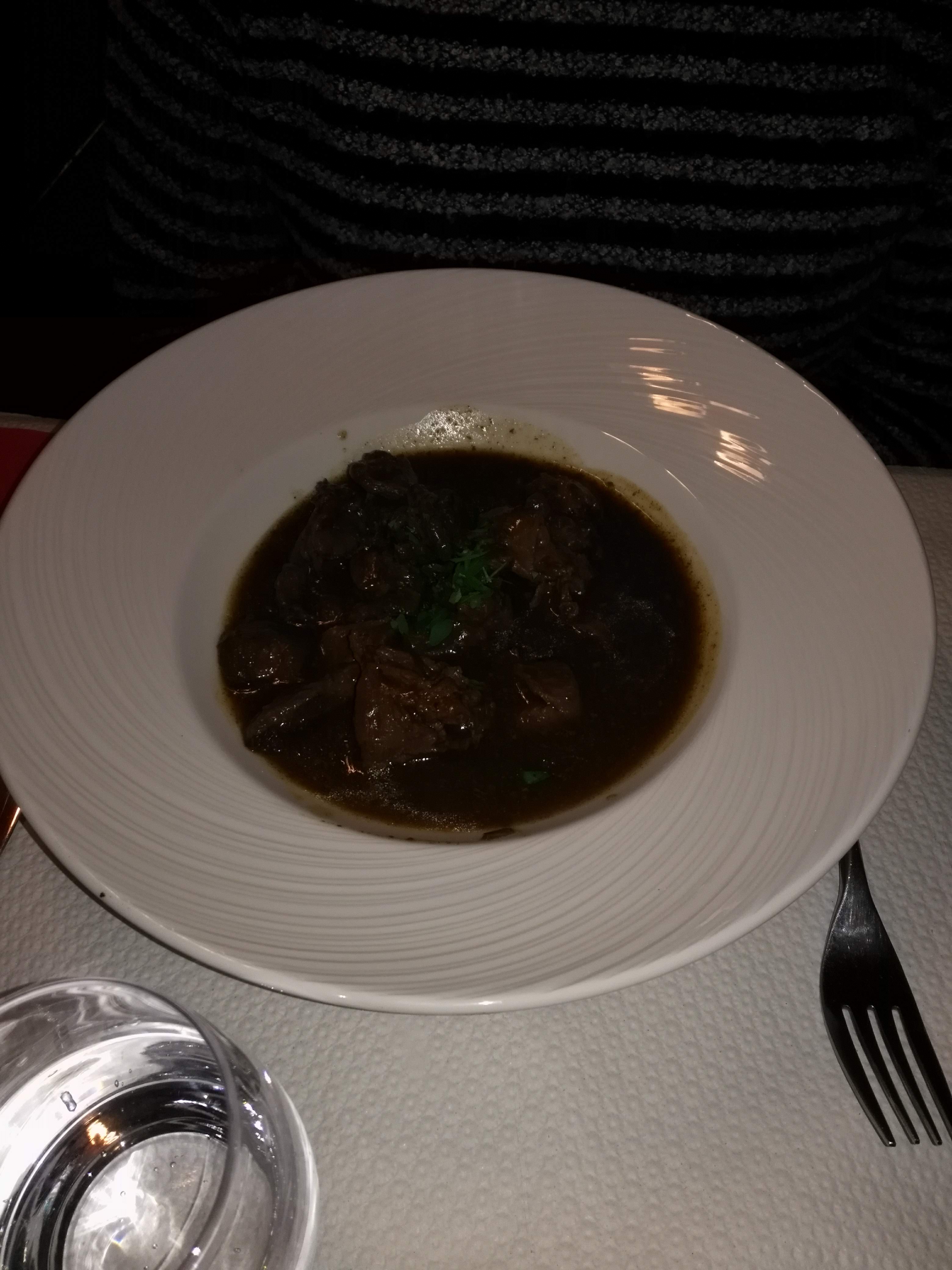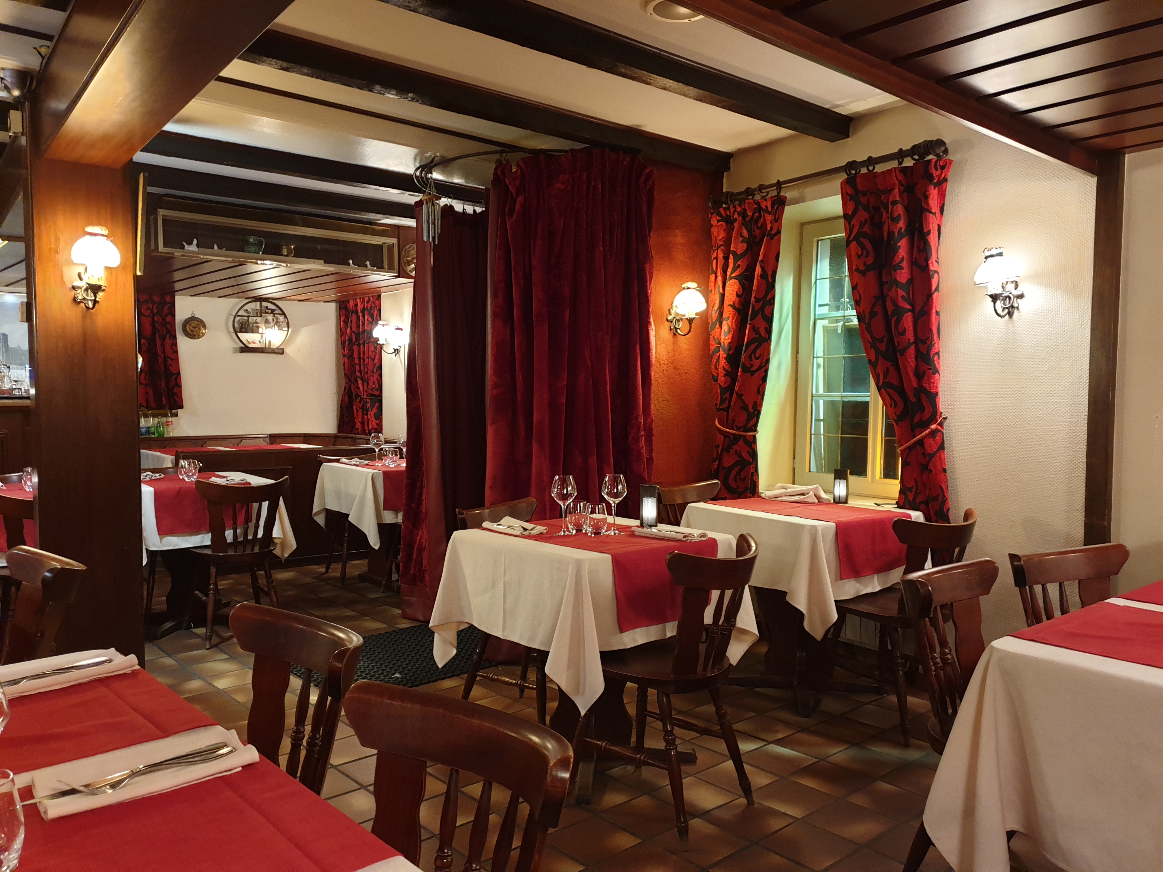 Bien vu le trompe l'oeil ! Nourriture très correcte, généreuse, assez copieuse, la subtilité étant par conséquence légère. Ce n'est pas nécessairement un défaut ni une qualité. Je fus très surpris de l'intérieur qui est plus sobre que la sobriété elle-même. Ce qui dénote de la devanture. Rien de particulier à noter cependant.