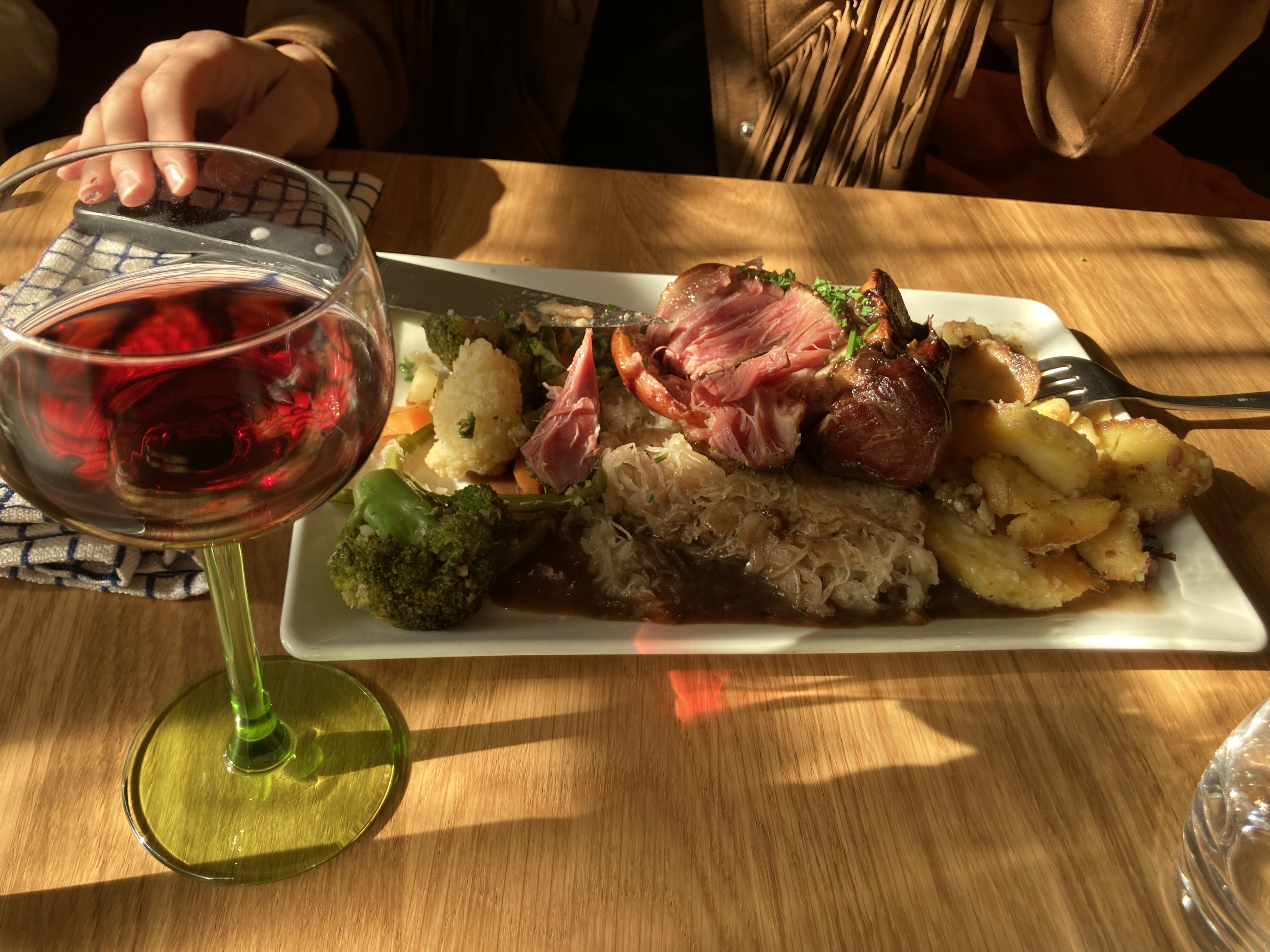 Attention, pas un endroit pour petits mangeurs… portions bien servies. Agréable en terme de place, pas super serré comme certains Winstub. Service très sympa. À recommander