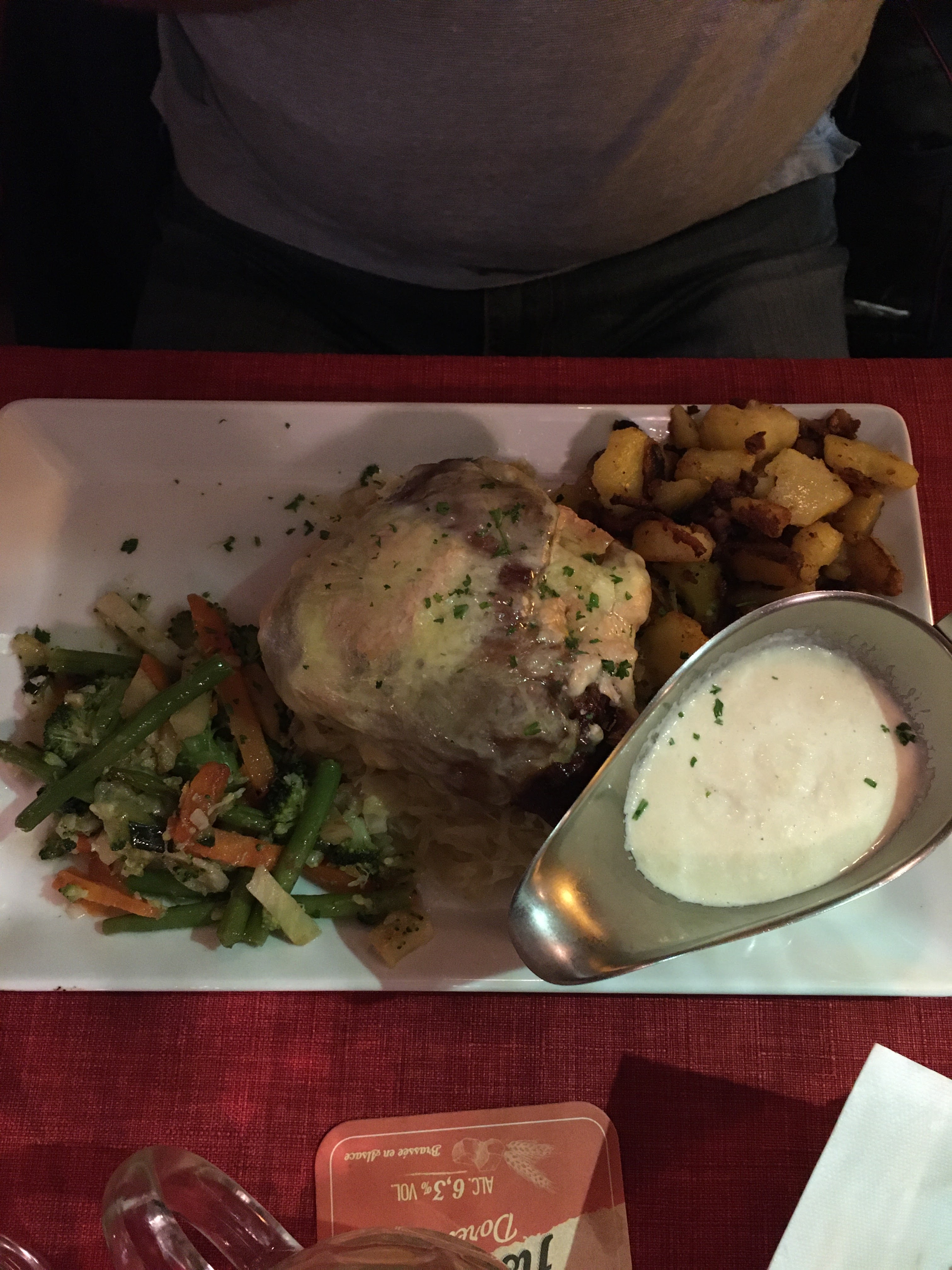 Ambiance calme, service de grande qualité, j'ai dégusté un copieux Cordon Bleu de Veau. Les légumes étaient cuit à la vapeur et très bon. Le café est assez bon également. Une très bonne adresse pour passer un bon moment.