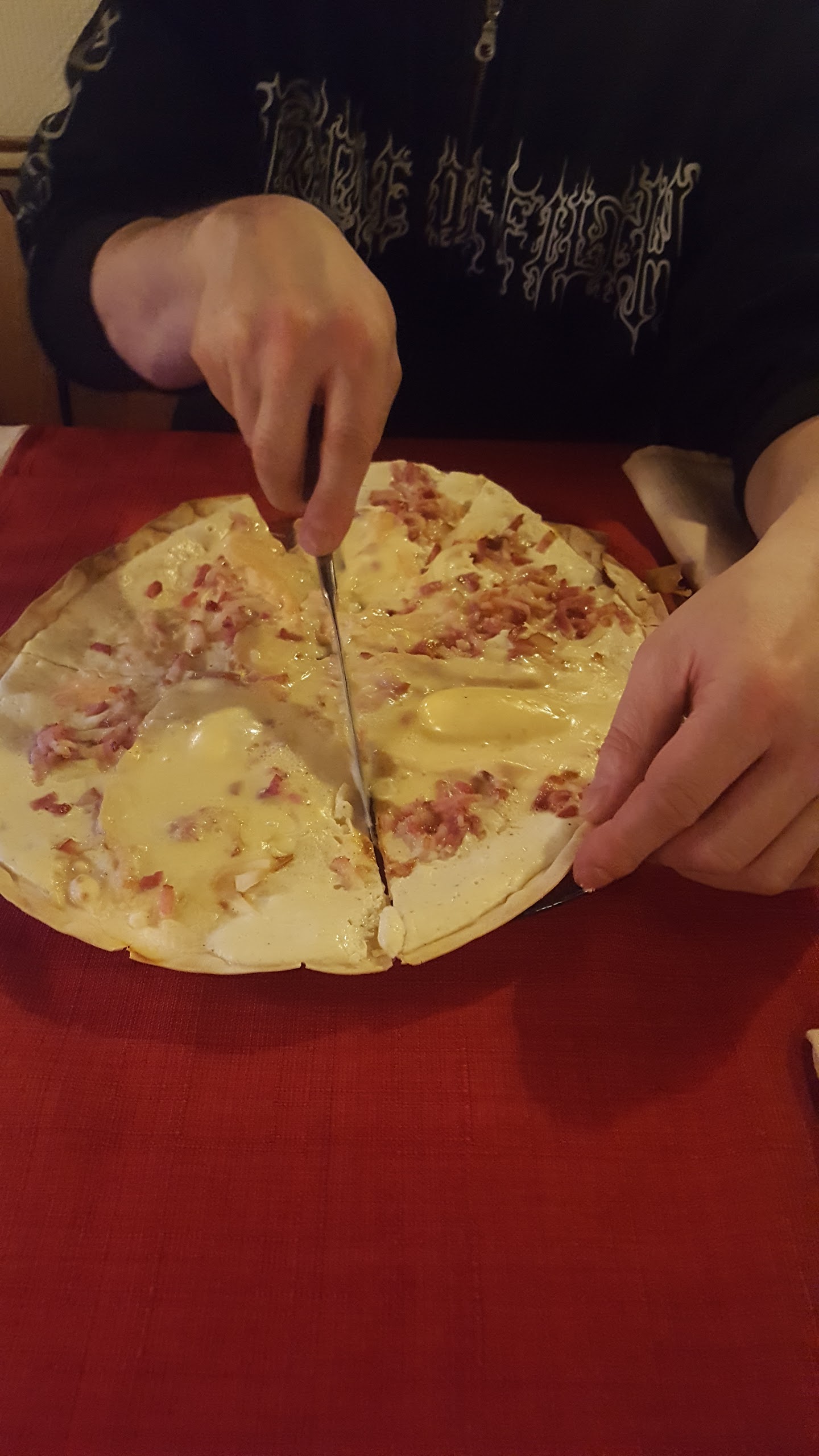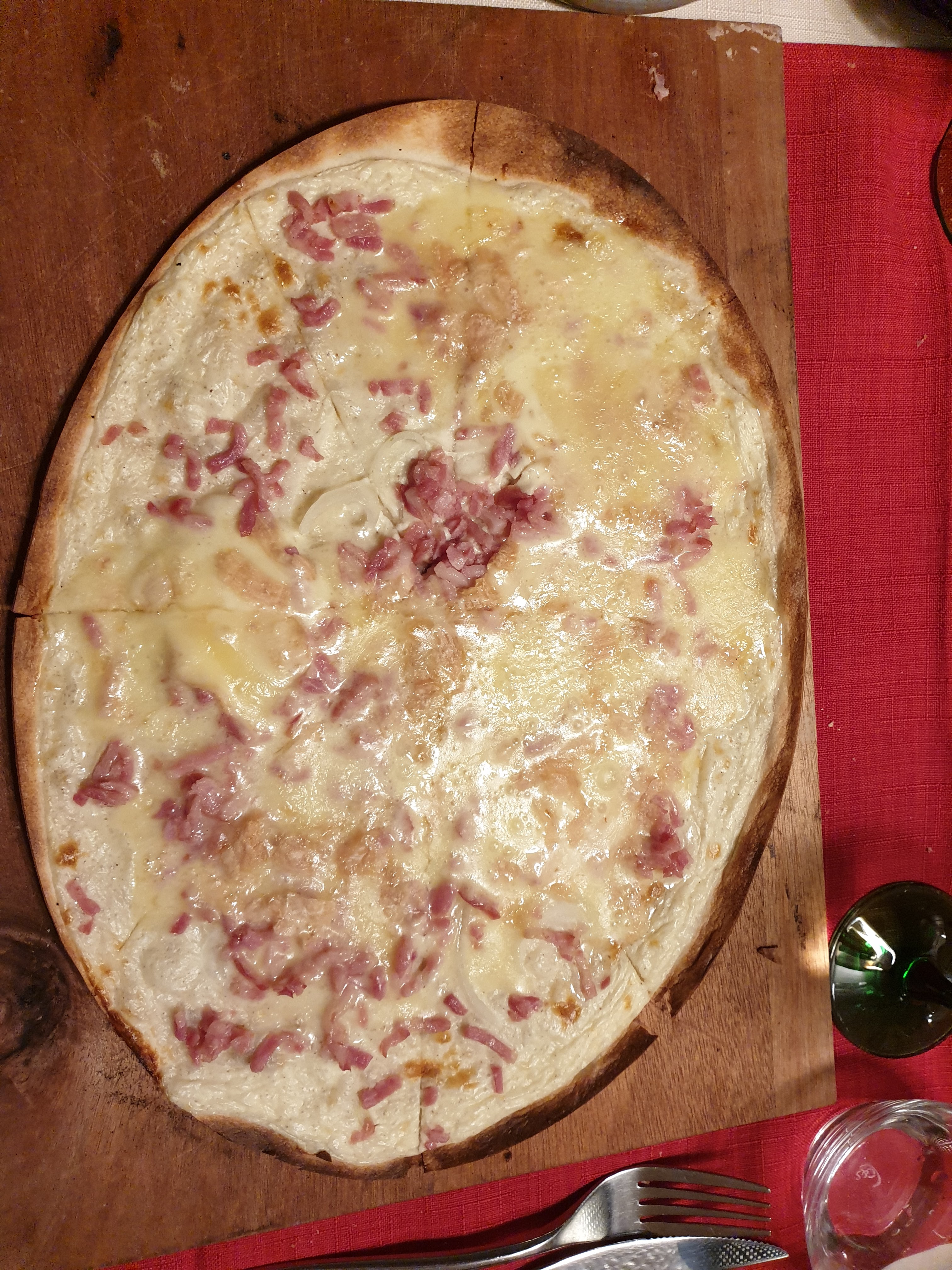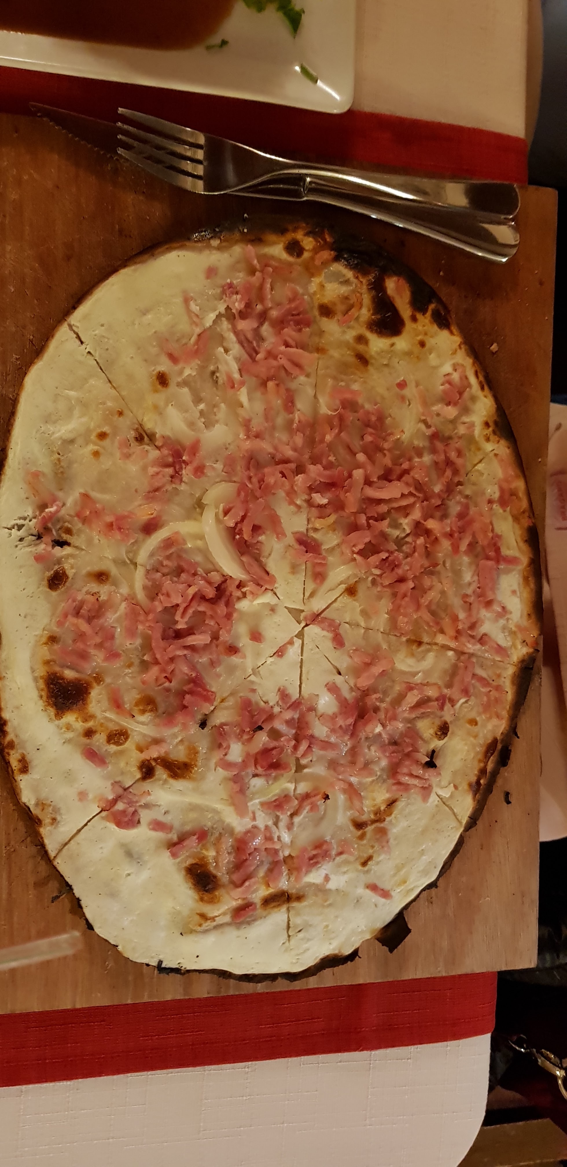Si vous voulez être reçu comme un chien dans un jeux de quille , la tarte flambée est mauvaise . Le patron désagréable . Fuyez et aller dépenser votre argent ailleurs .