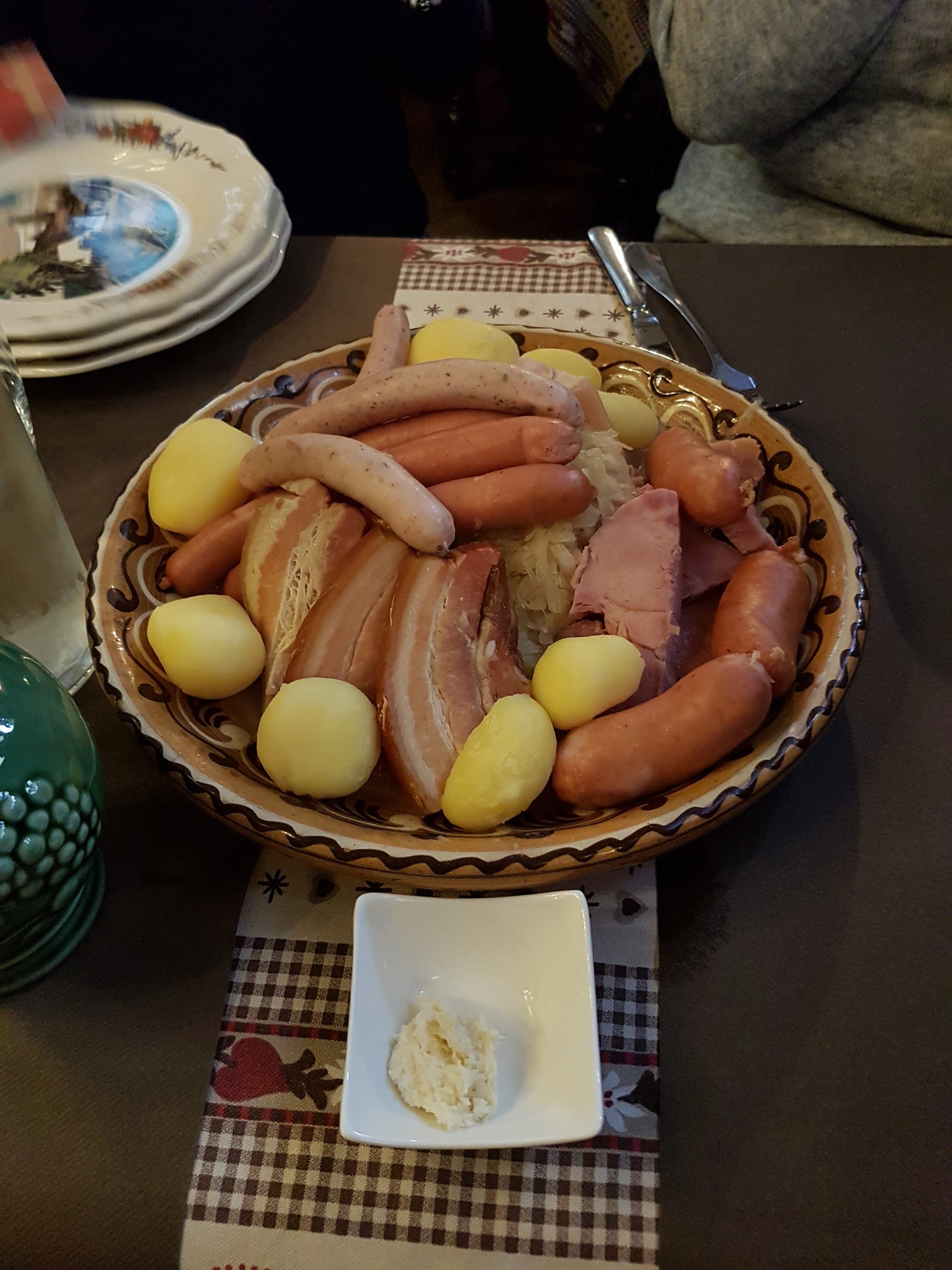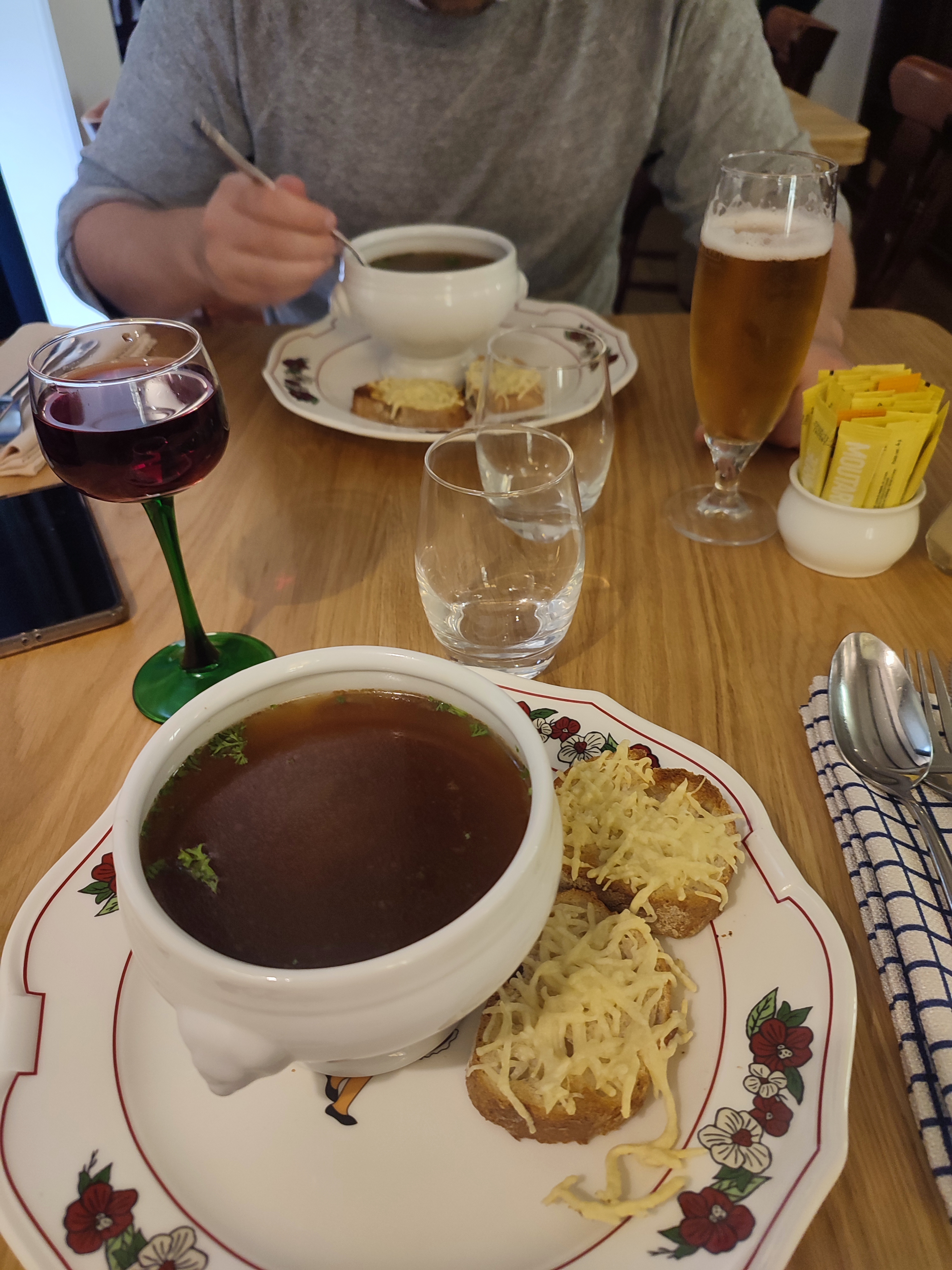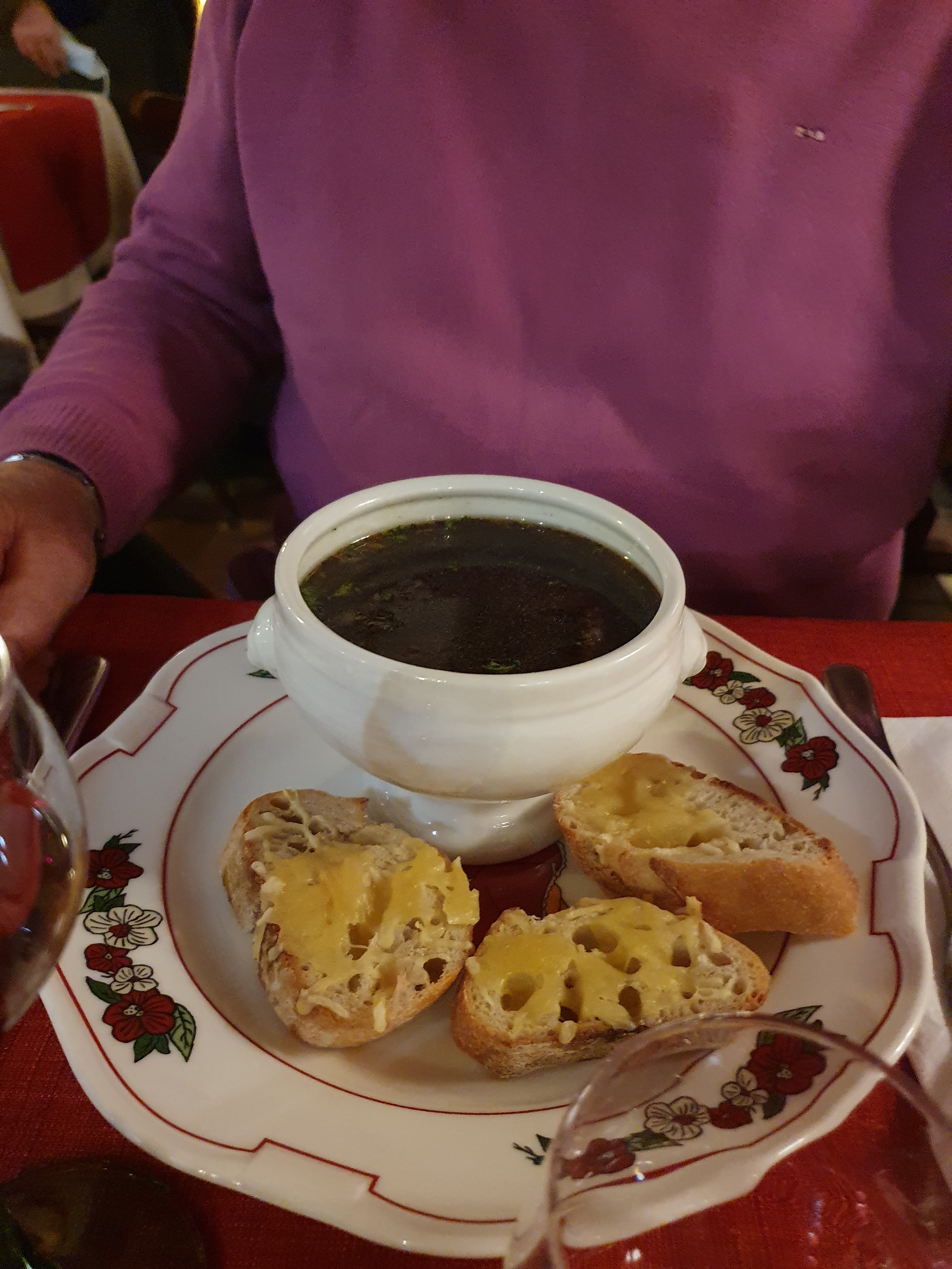 L'ambiance générale est sympathique, très conviviale. La soupe à l'oignon est cependant un peu trop salée, la choucroute est plutôt bonne et très généreuse et le dessert délicieux.