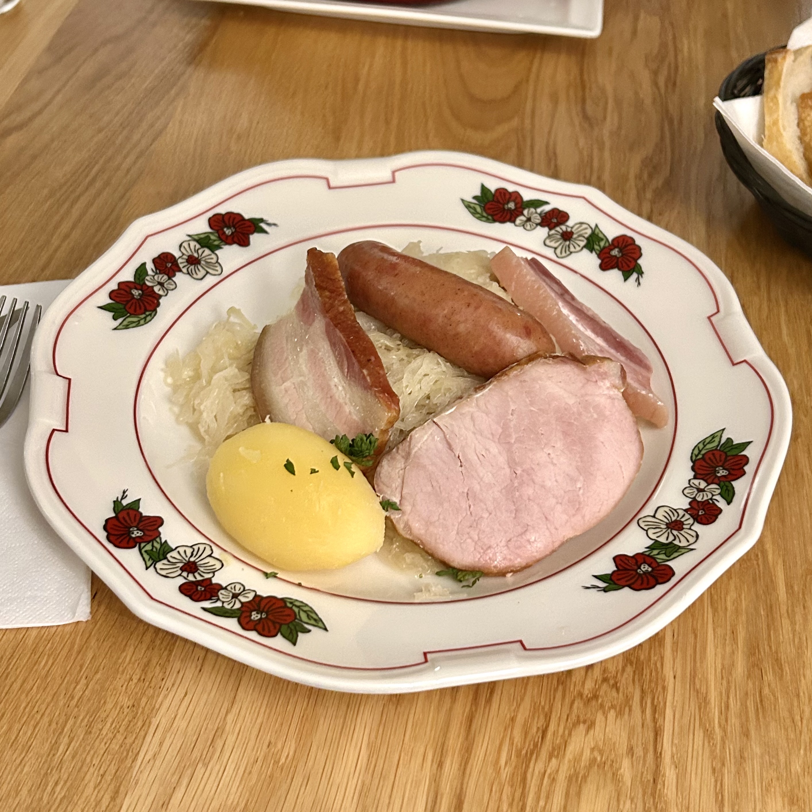 Je m’attendais à beaucoup mieux. Choucroute très moyenne chou pas assez cuit voire croquant et garniture de qualité moyenne. Je suis d’origine Lorraine et la choucroute je connais.... bien dommage pour un restaurant situé dans le berceau du chou.