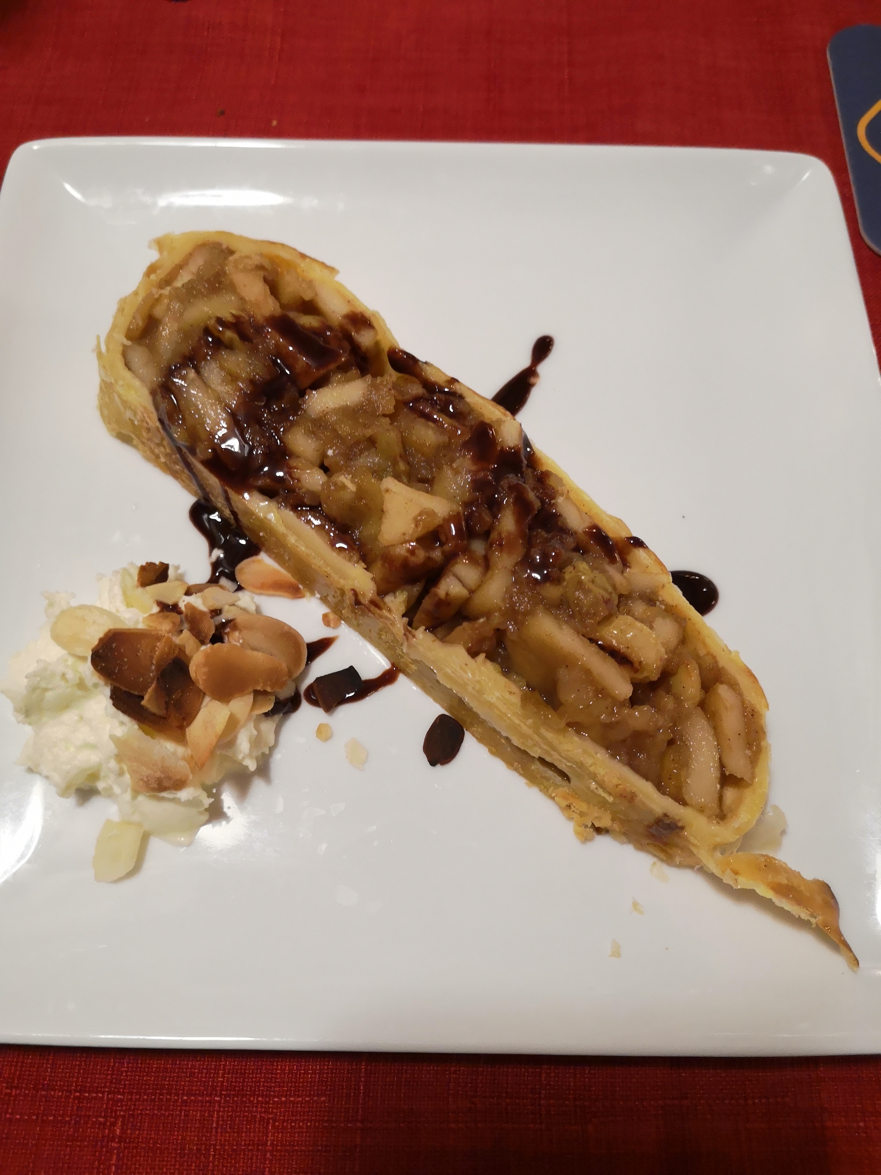 Nous avons pris le foie gras en entrée, pas mauvais mais pas exceptionnel. La tartes flambée n’est pas exceptionnelle non plus et on trouve bien meilleur ailleurs. Le plat, le magret de canard, honnêtement ne le prenez pas, nous l’avons renvoyé en cuisine car trop cuit. A son retour, un autre magret tout aussi cuit avec beaucoup plus de gras que de viande… bref passez votre chemin et allez voir ailleurs. A ce prix on trop beaucoup mieux ailleurs. Beaucoup trop chère pour des sauces en poudres, de la viande qui n’est pas de la qualité et des produits que l’on trouve en fait dans n’importe quel commerce du coin. Ce n’est vraiment pas digne d’un restaurant.