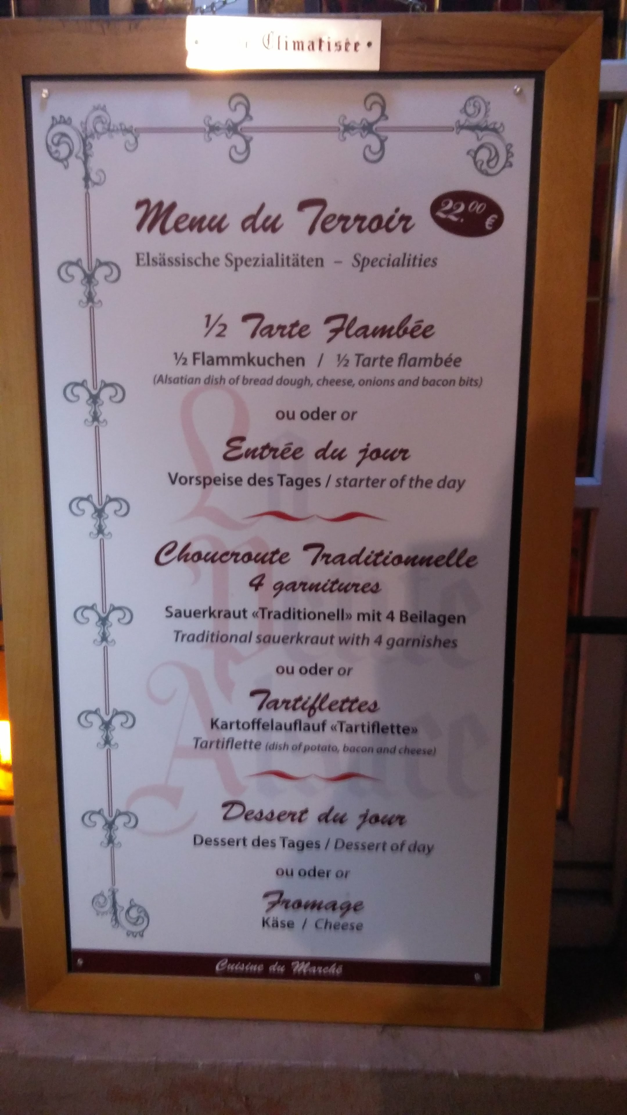 Pas de réservation. Ce sont des plats traditionnels alsaciens, mais un peu industriel.