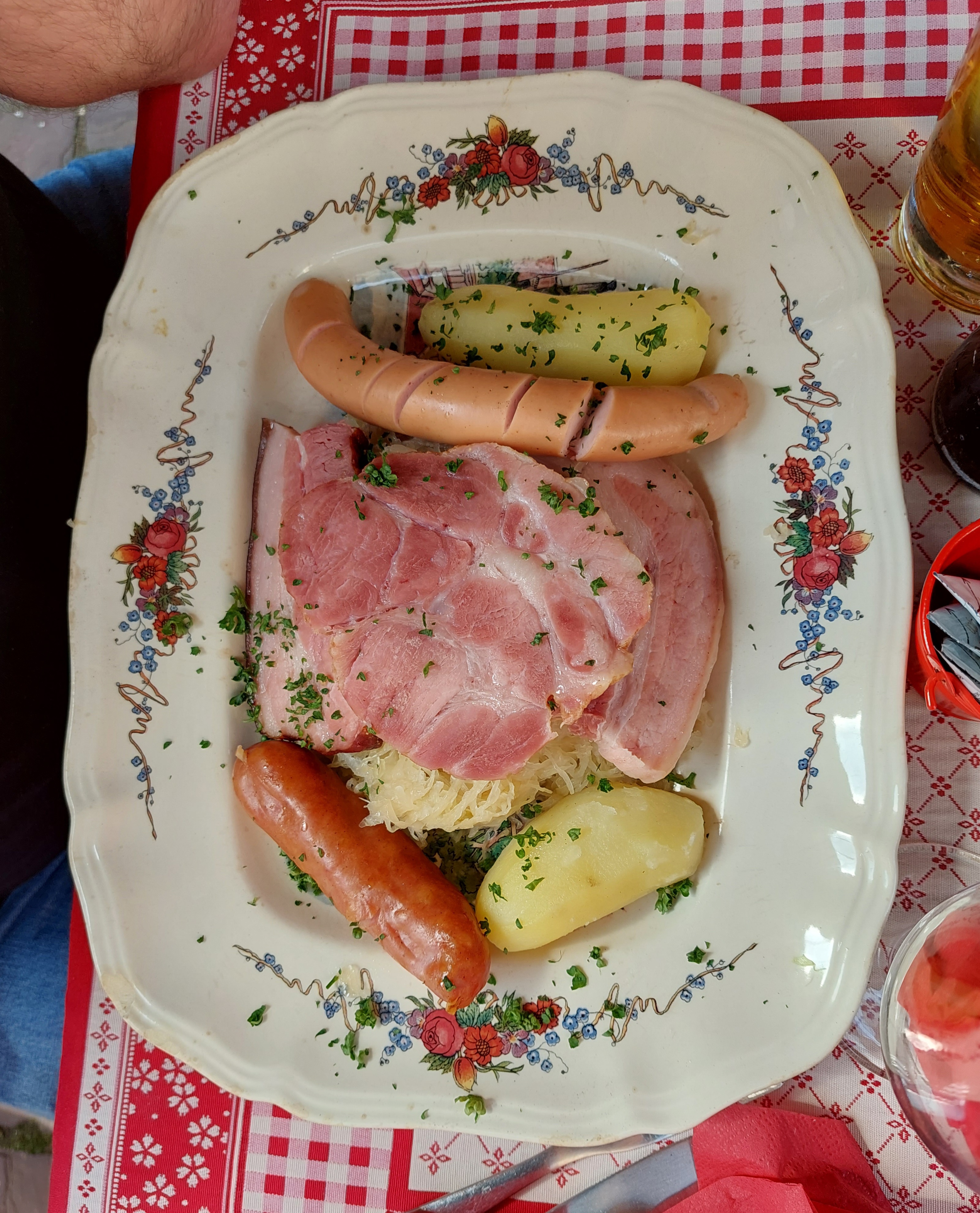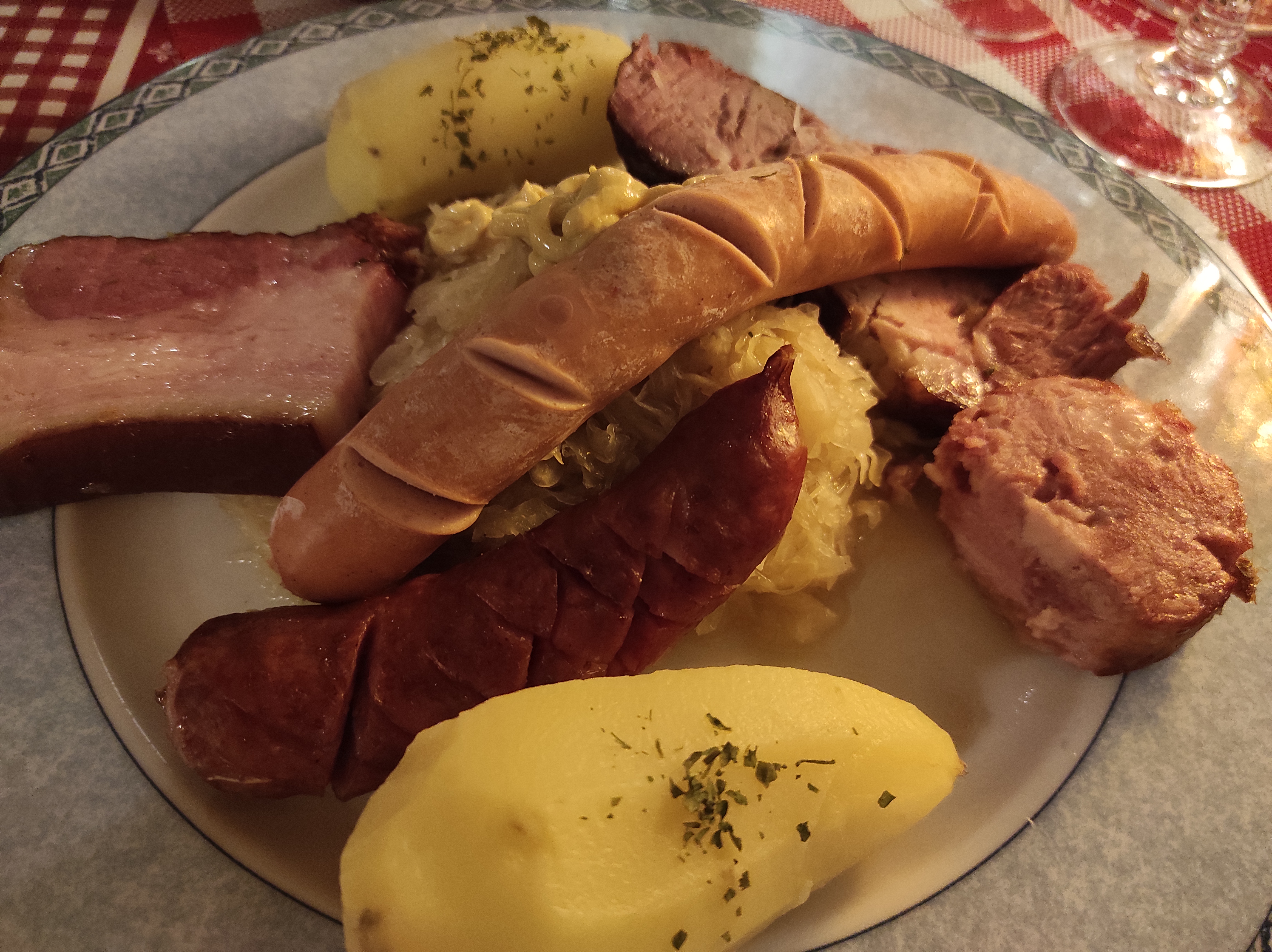 La choucroute était excellente ! Servi dans une très belle assiette d’obernai Bravo Rolland