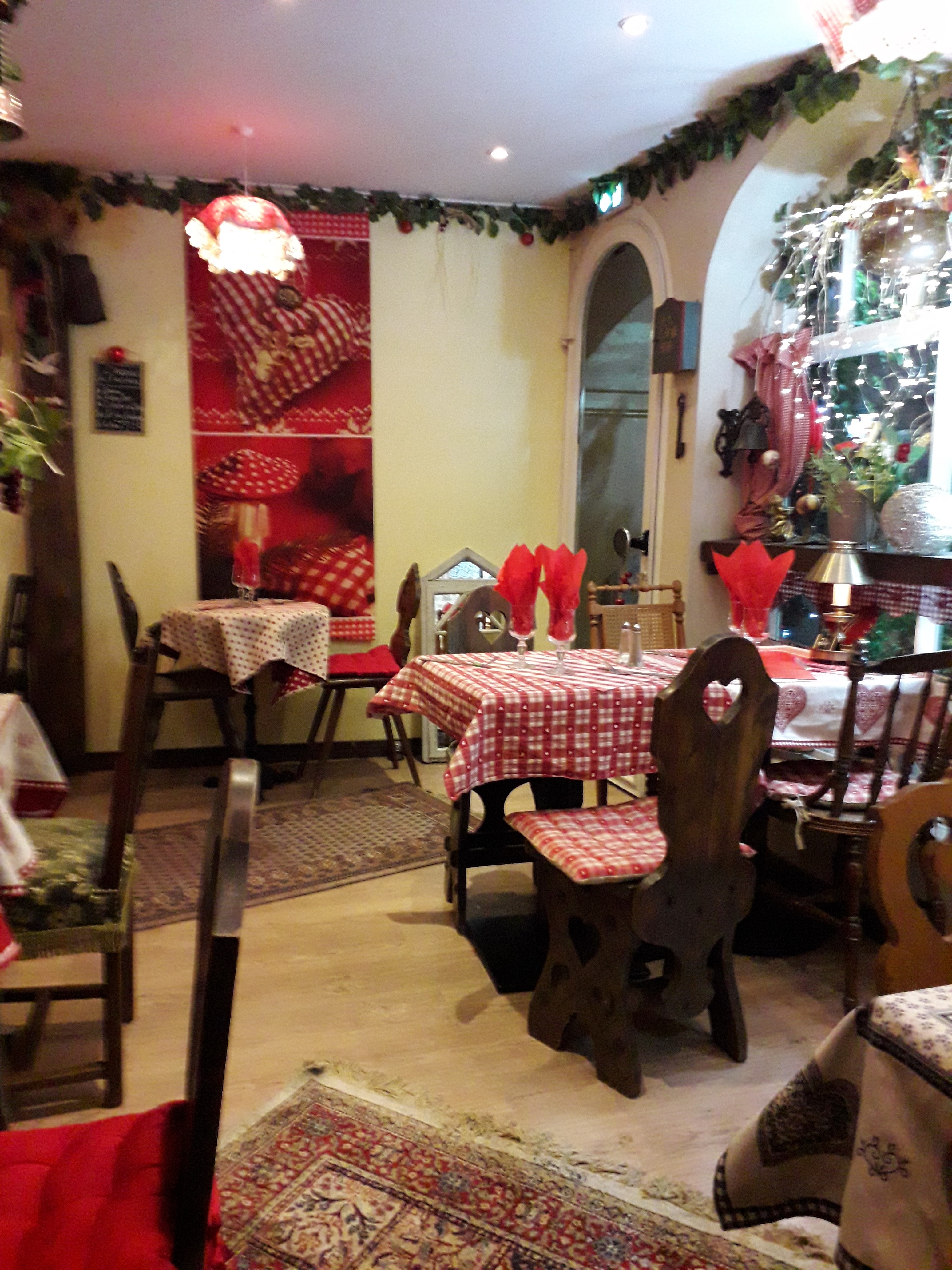 Nous cherchions un endroit loin de la foule du marché de Noël pour déjeuner… sans rien en connaître nous avons trouvé un petit resto typique et sympa… décoration diversifiée et chaleureuse…la patronne nous a bien accueilli… plat traditionnel et suffisant… mention spéciale à la tarte citron superbement meringuée… Une très bonne adresse .