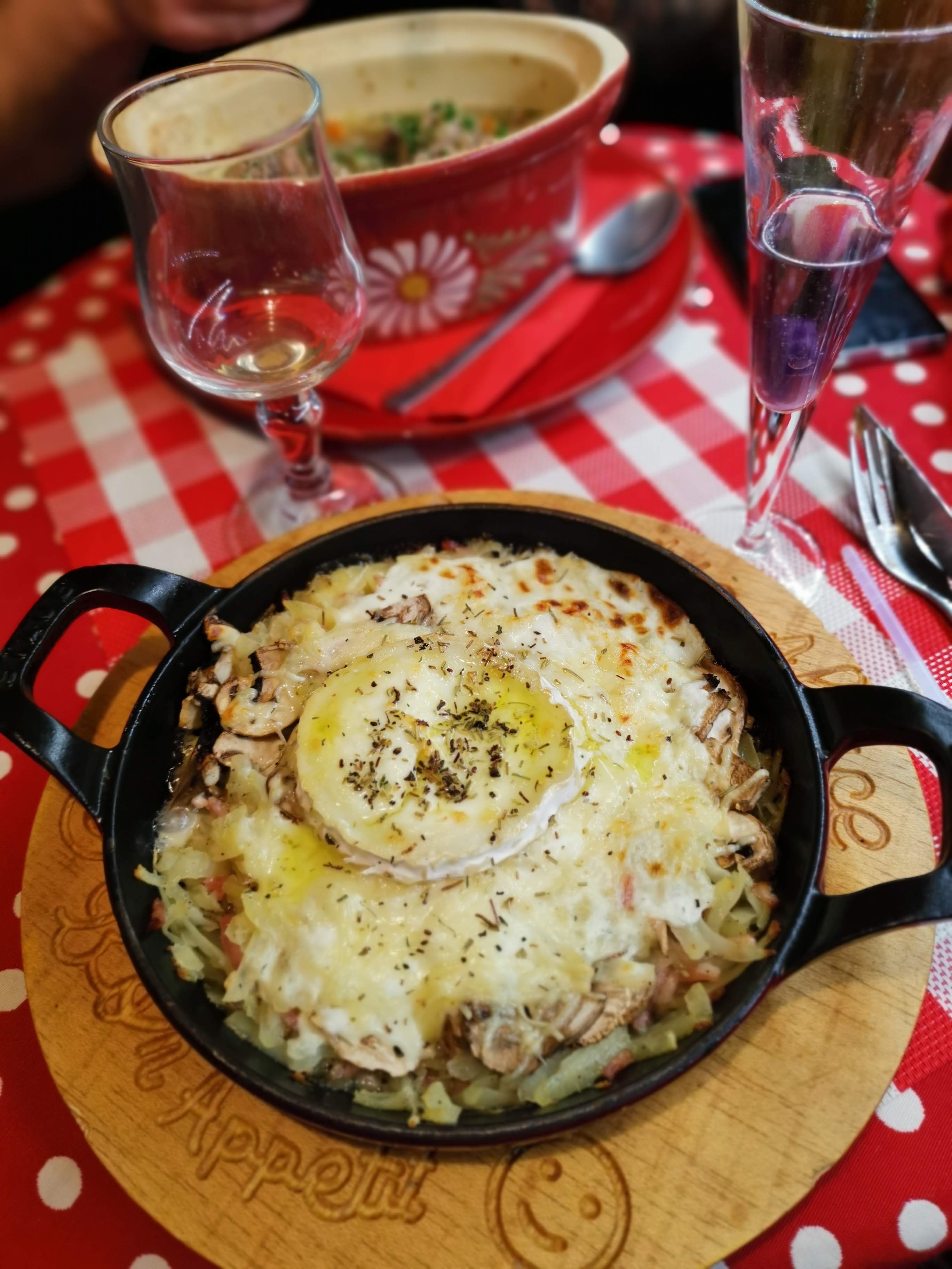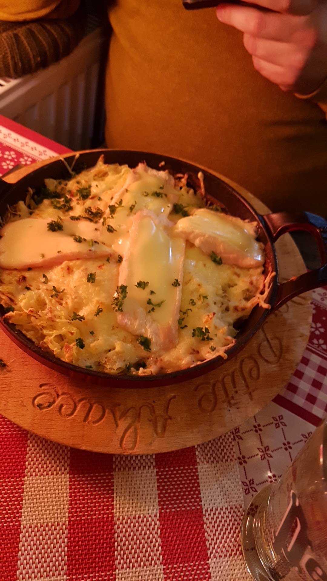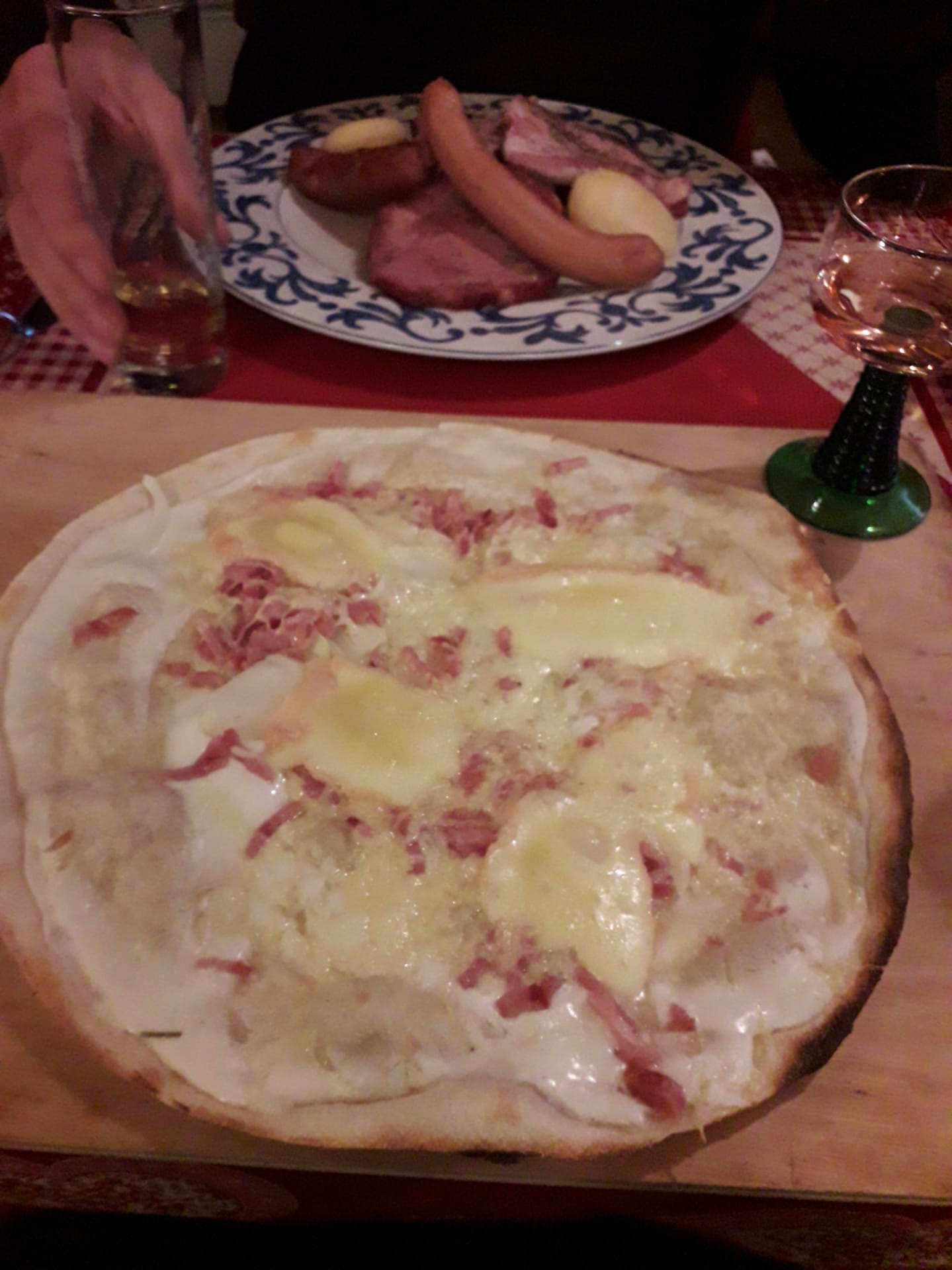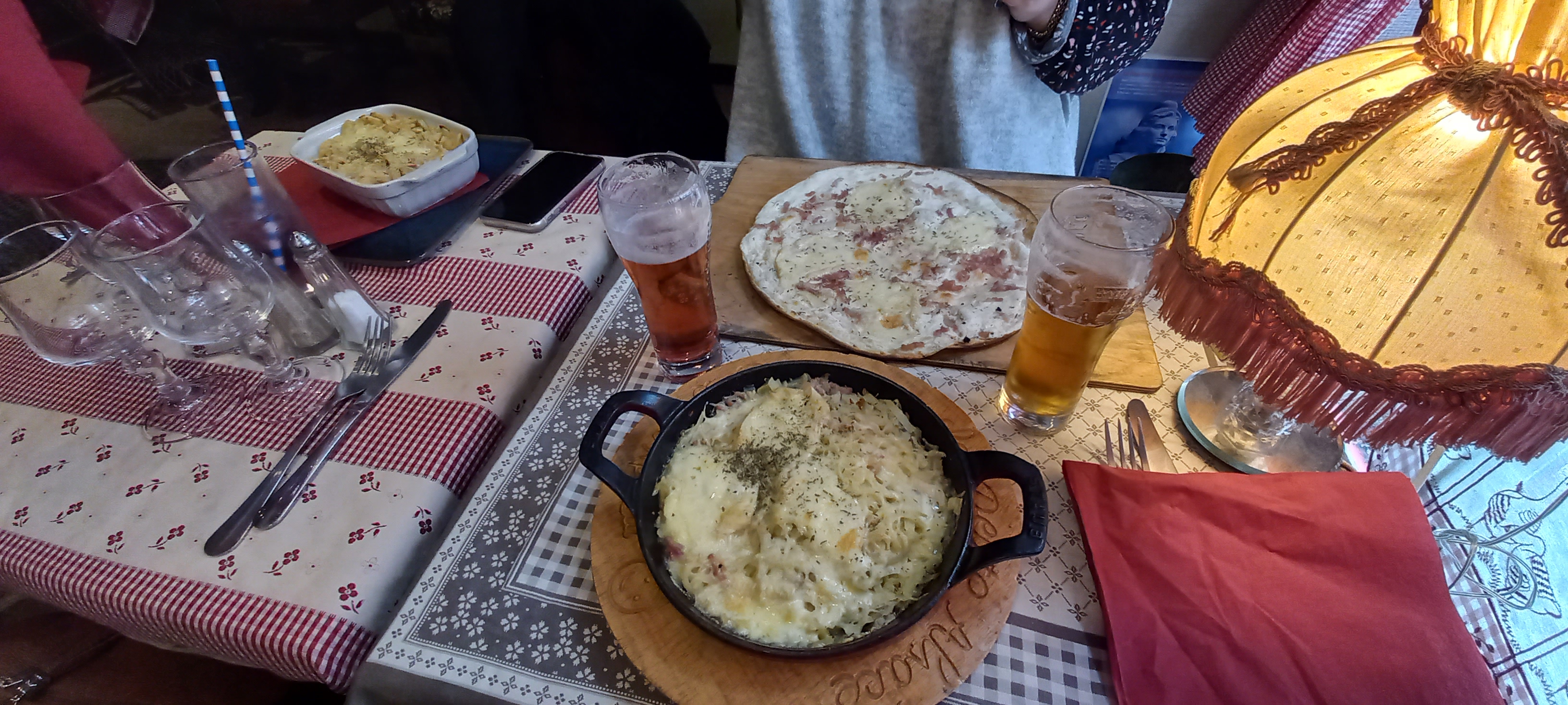 À la recherche de plats typiques nous avons aimés la flammekueche faites maison, le baeckeffe est un plat préparé mais bon, nous avons attendu 1 h avant de manger ce qui nous a permis de faire connaissance avec nos voisins de table. N hésitez pas à réclamer plusieurs fois si on vous oublie !