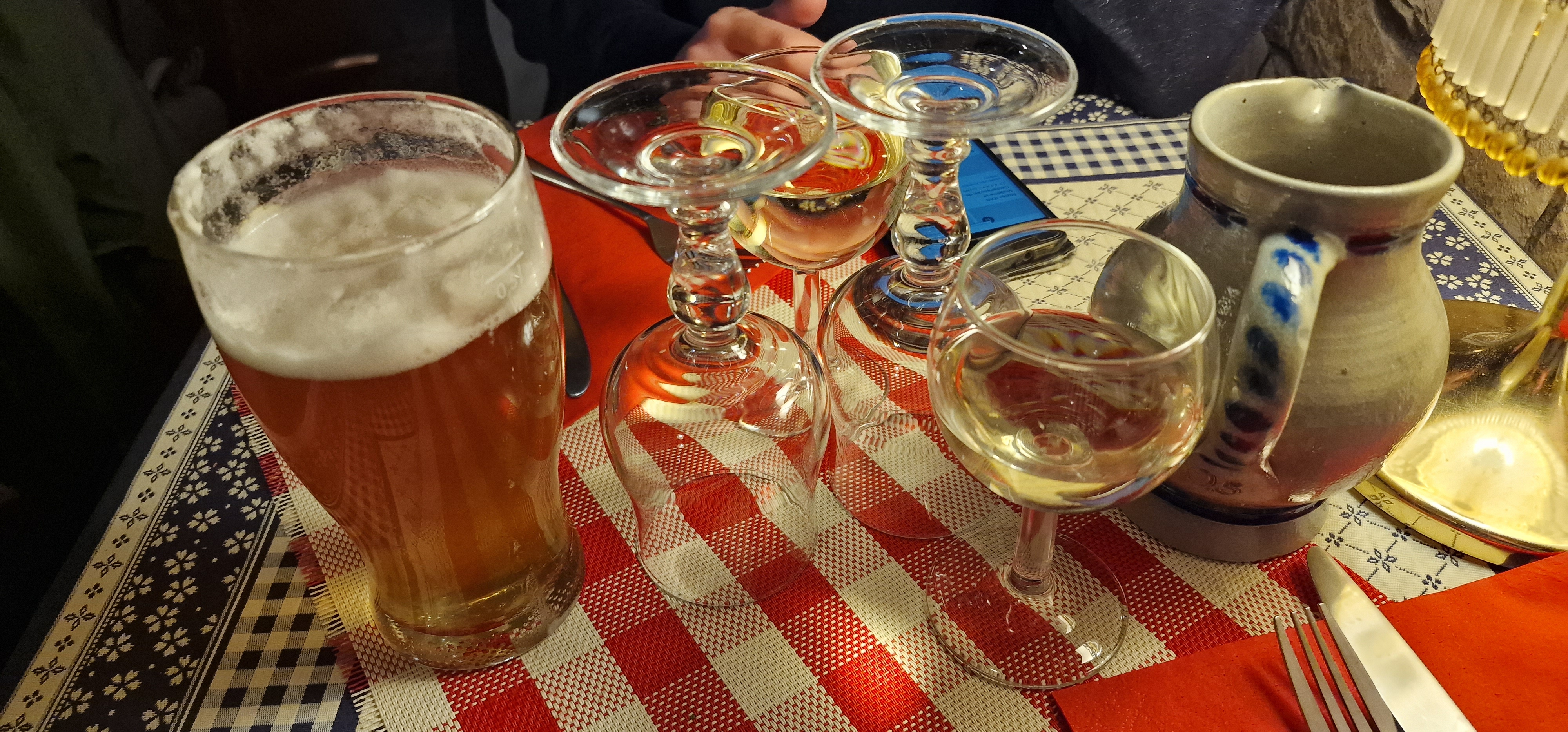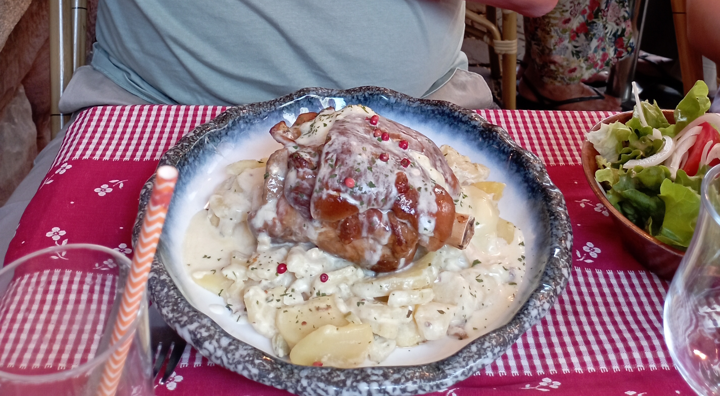 Il y a pas mal de points négatifs, dans l’ordre chronologique, nous arrivons, peinons à se faire recevoir puis on commande une « tarte flambée à partager » qui n’est autre qu’une petite tarte ronde équivalente à une demie vraie tarte flambée, mais elle était qualitative. Pour les plats, le rösti au munster n’était pas un rösti (c’était des pommes de terres râpées, bouillies puis aplaties dans une assiette) et le munster était très peu présent. Le jambonneau était assez savoureux et fondant malgré un manque de température à cœur (froid). Pas de proposition accords mets/vins, le service est à revoir au vu des prix affichés malgré la gentillesse de la patronne. Ne prend pas les tickets restau.