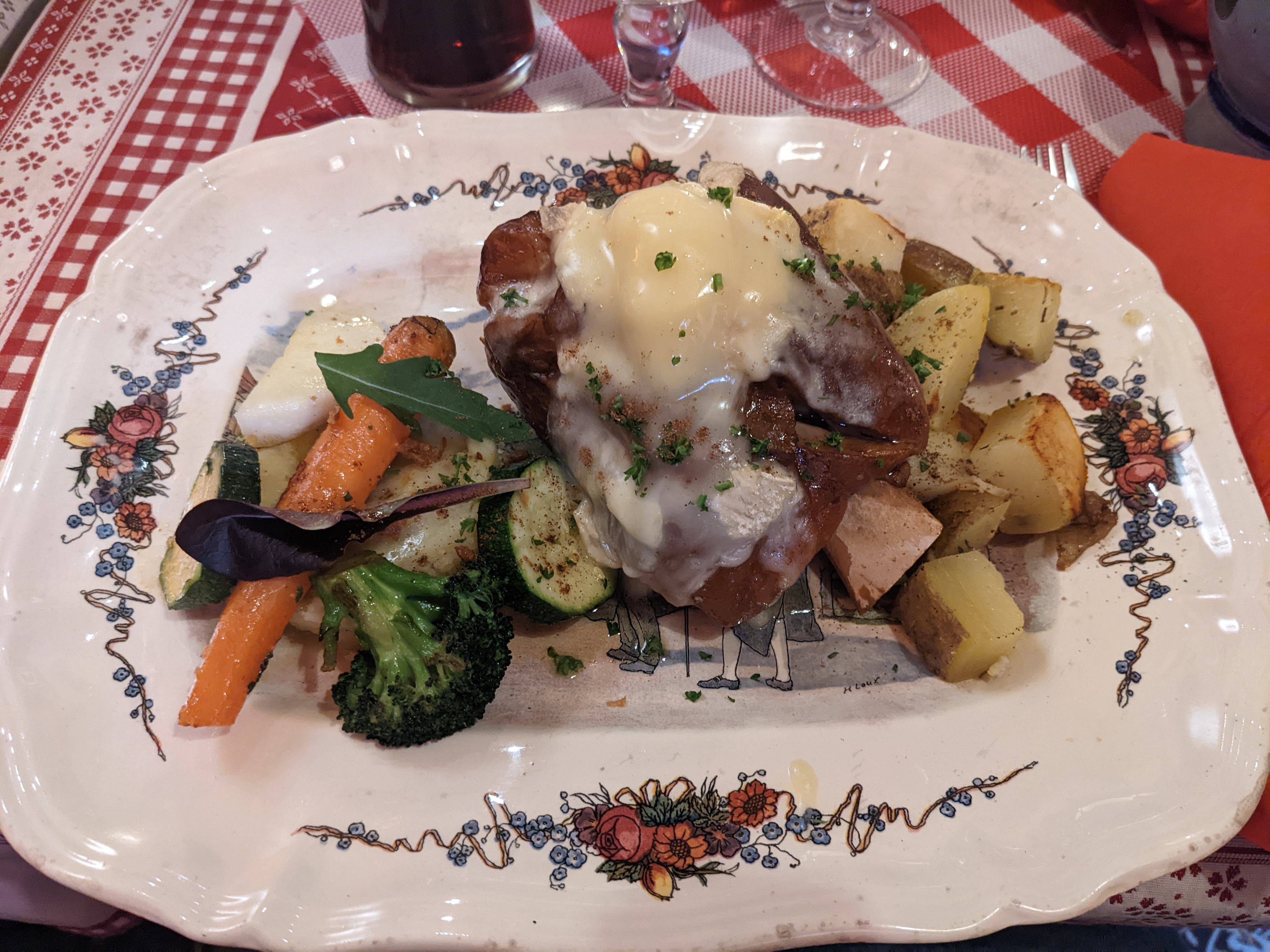 Étions en famille, à 8. Un accueil chaleureux, des prix abordables bien qu'un peu élevés (je ne connais pas les prix de la région). L'attente un petit peu longue, mais les plats très bons. Je conseilles les roesters, qui étaient une découverte ô combien gustative, pour les amateurs de fromage.