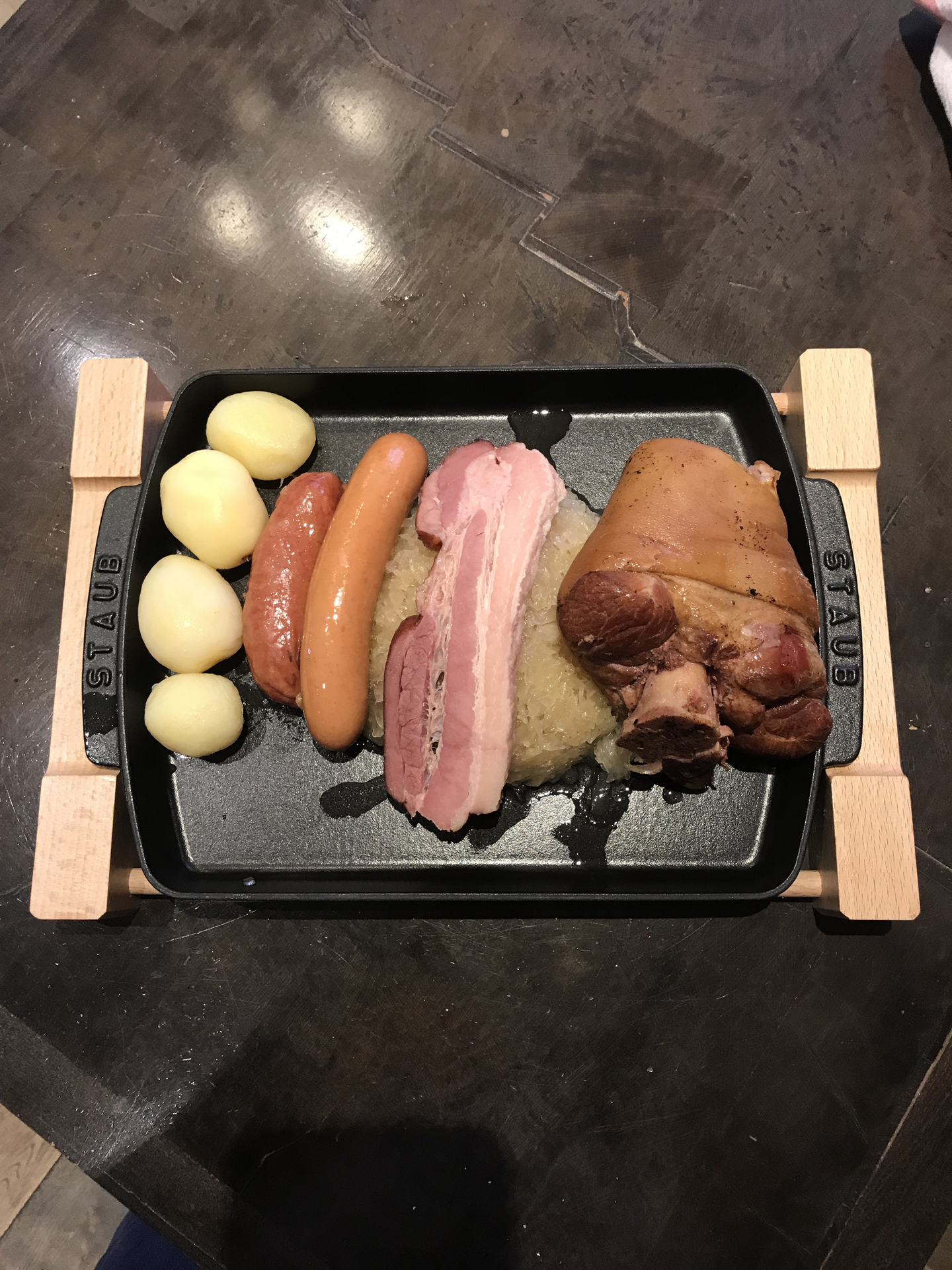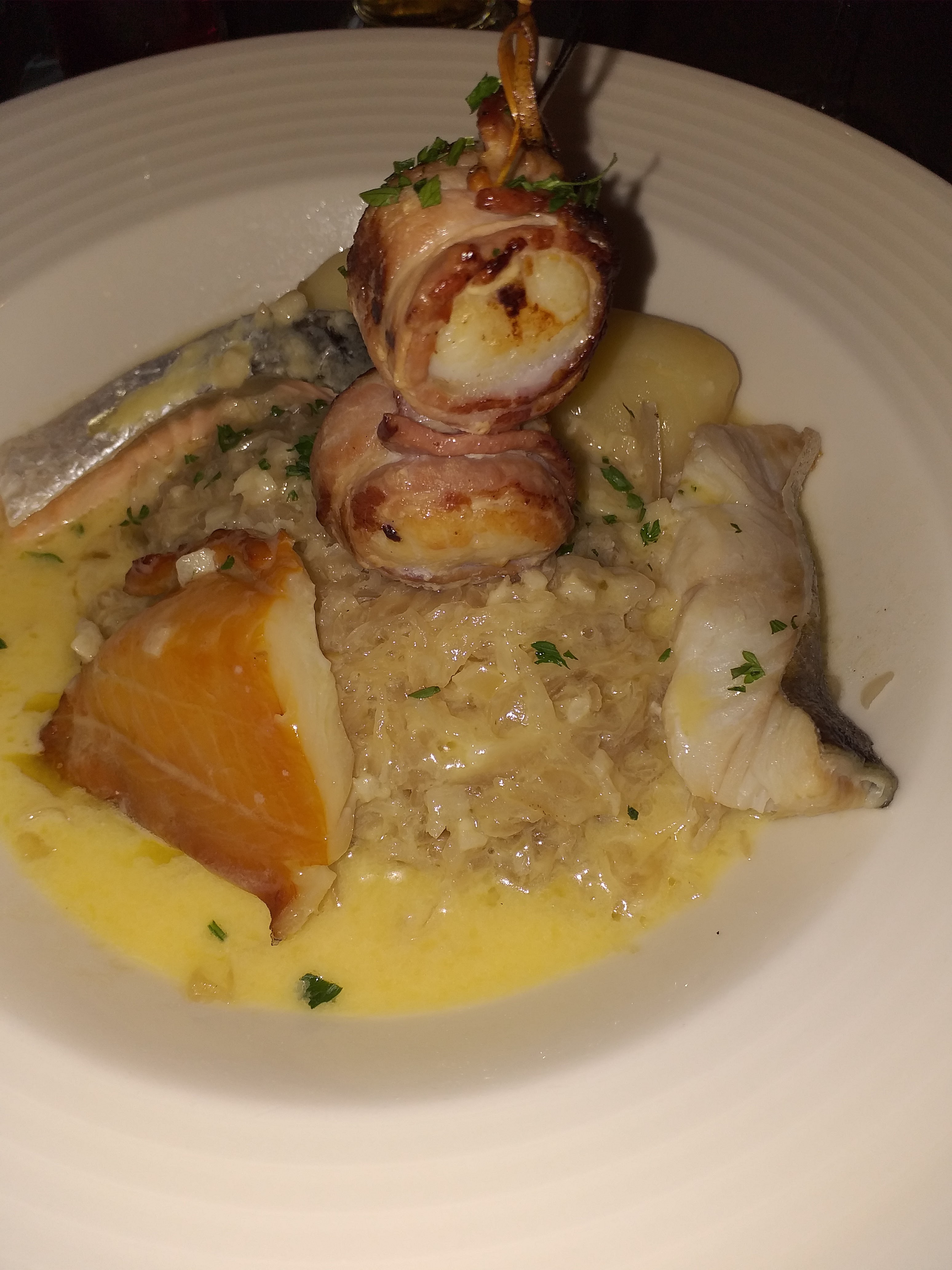 Choucroute rechauffee du midi. Nous l Avons signalé aux Deux serveurs et n ont meme Pas eu l amabilité de nous offrir un café. C est l usine.