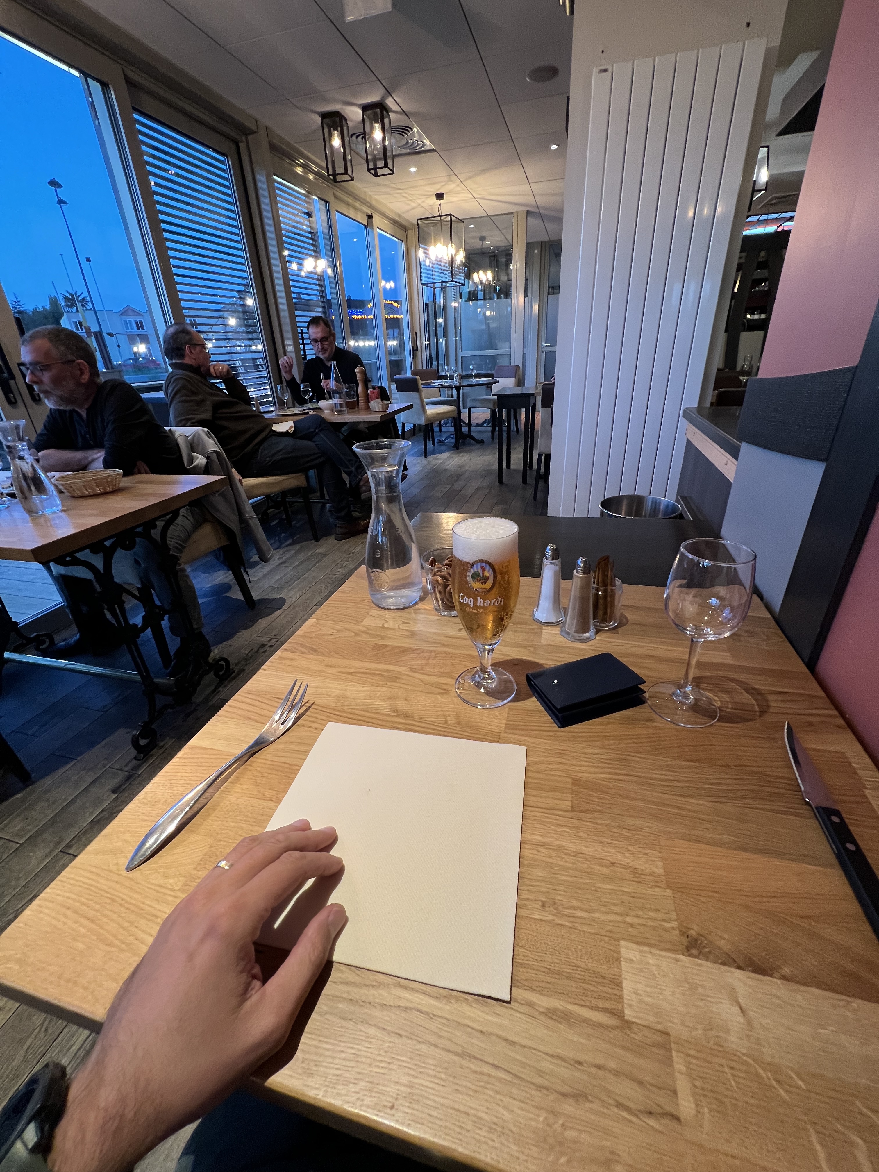 Très bon restaurant. les cuissons sont parfaites, c'est très bon et le large choix de la carte nous a permis de tous prendre des assiettes très différentes en fonction de nos envies. le menu enfant n'est pas cher et très copieux . très bon vins et bières. Malgré un restaurant bondé, tous le personnel est très chaleureux du début à la fin. on reviendra. Photos: assiette du pêcheur, entrecôte maturée, burger classique,Petite flammeckuëche (menu enfant)