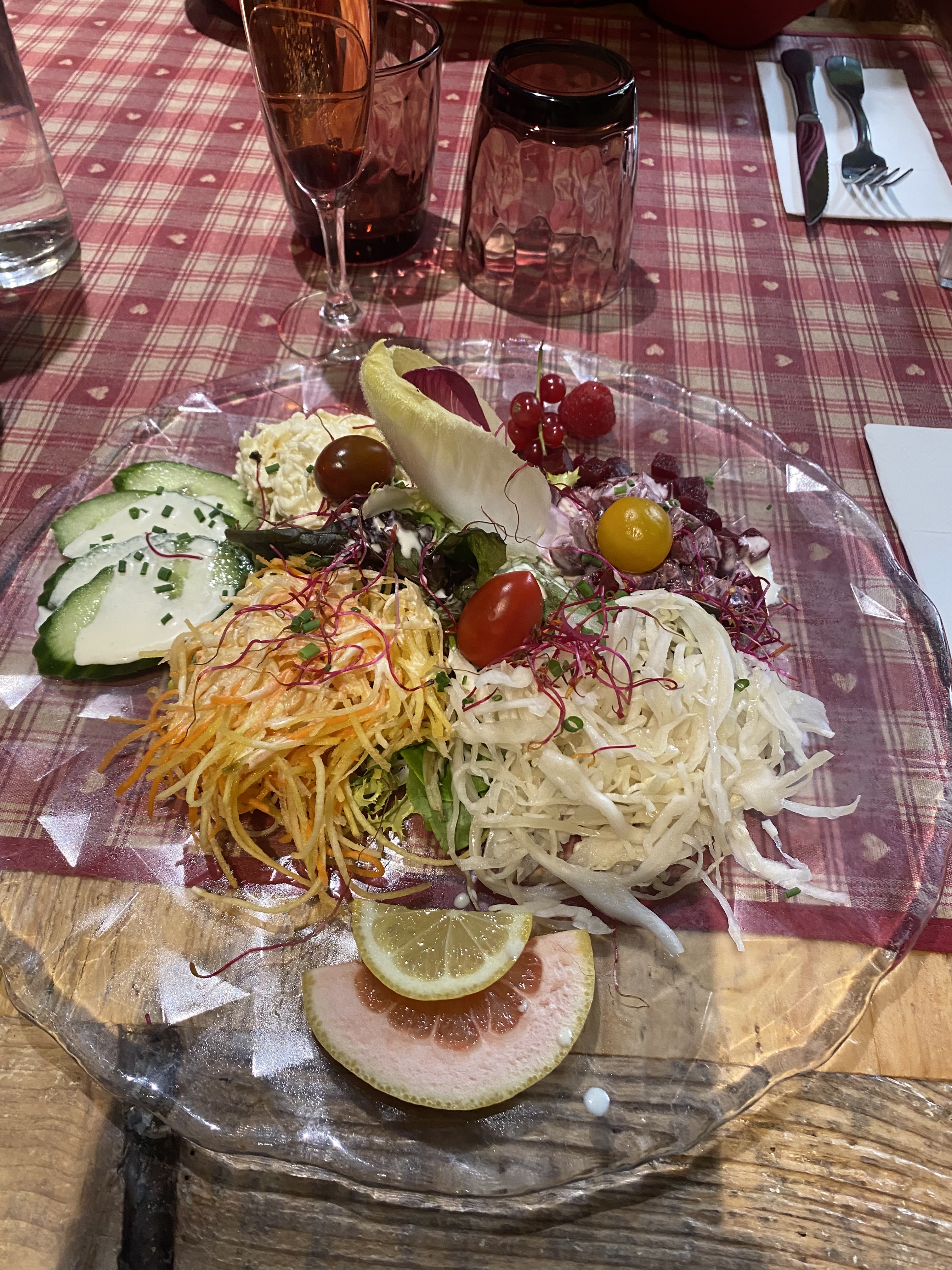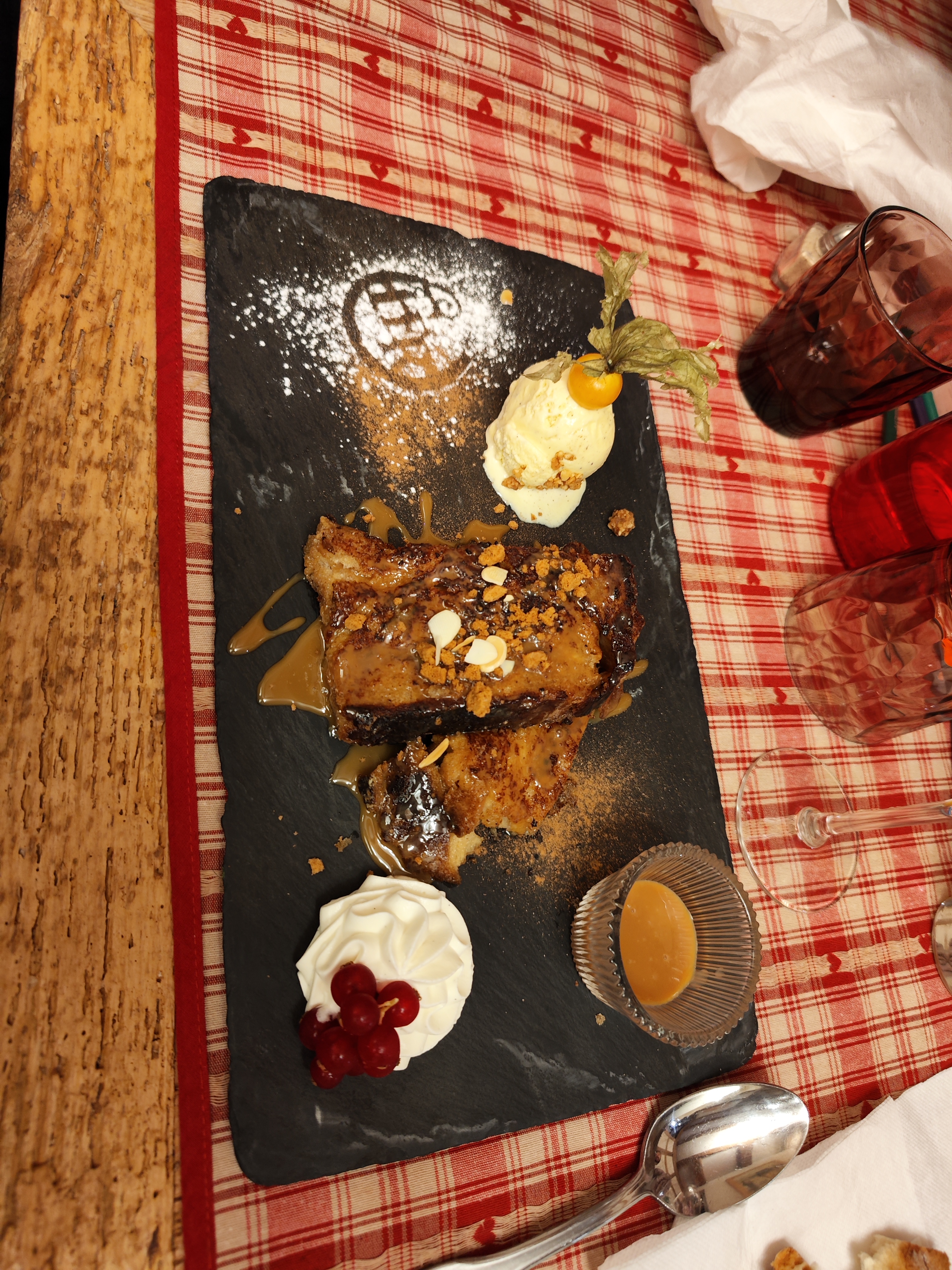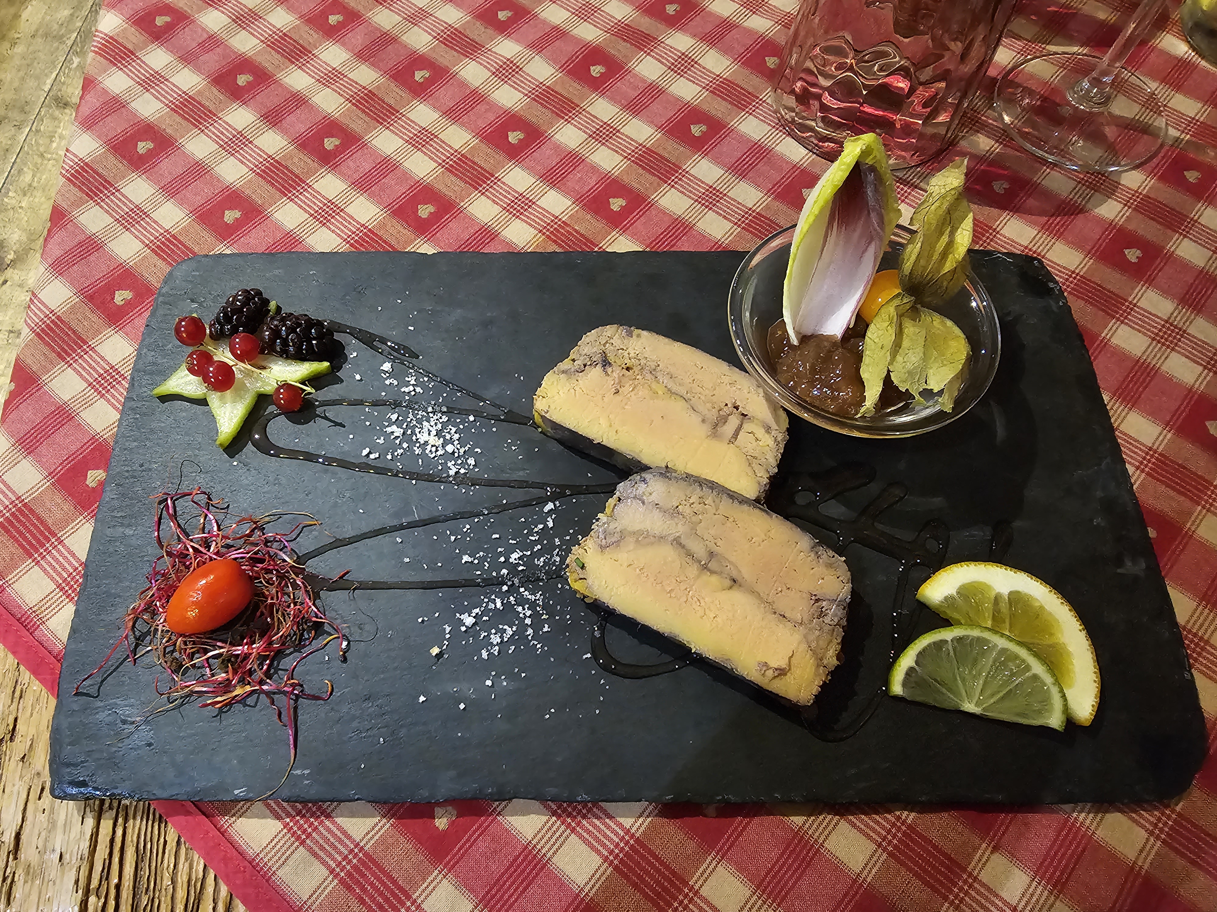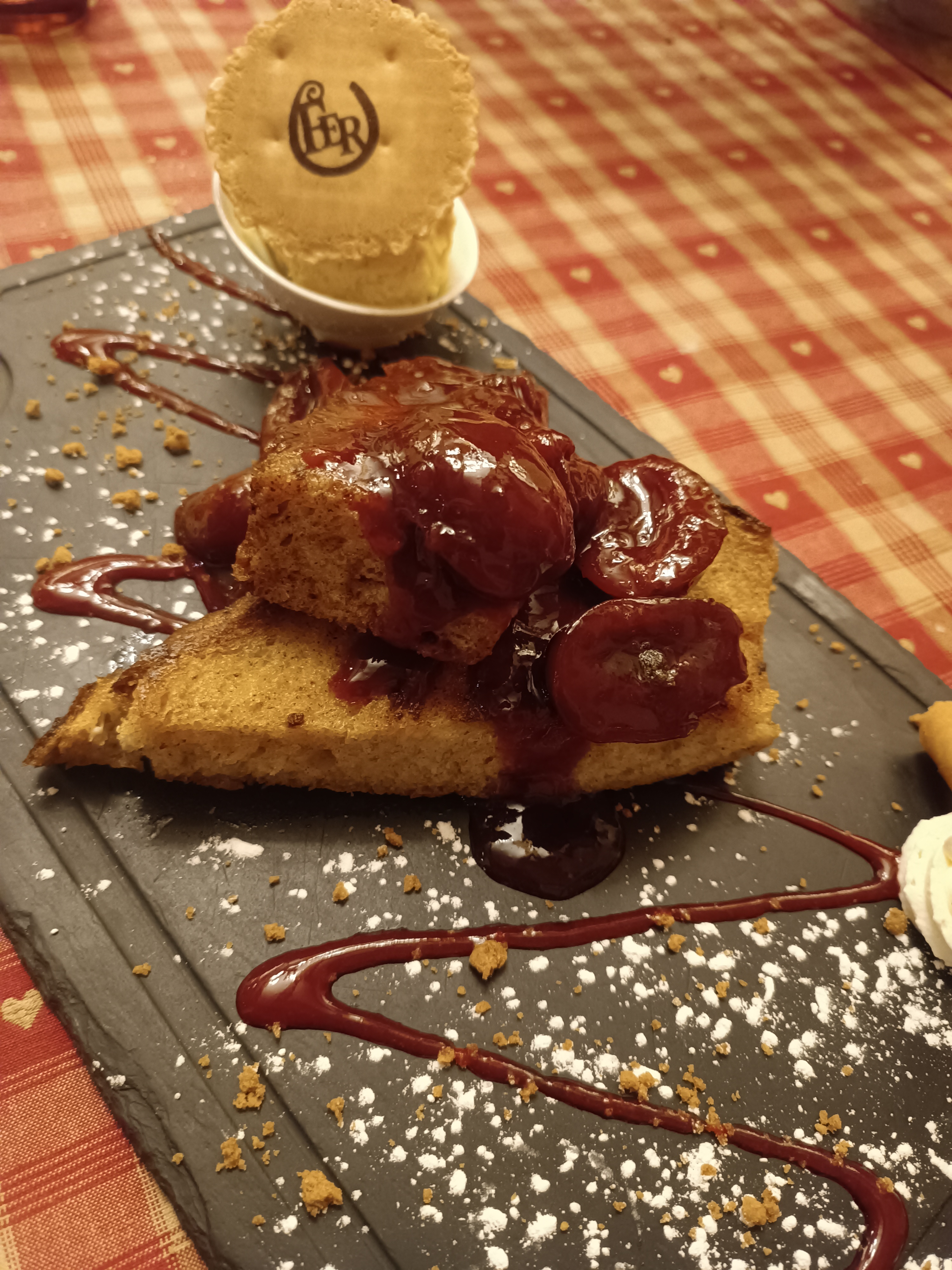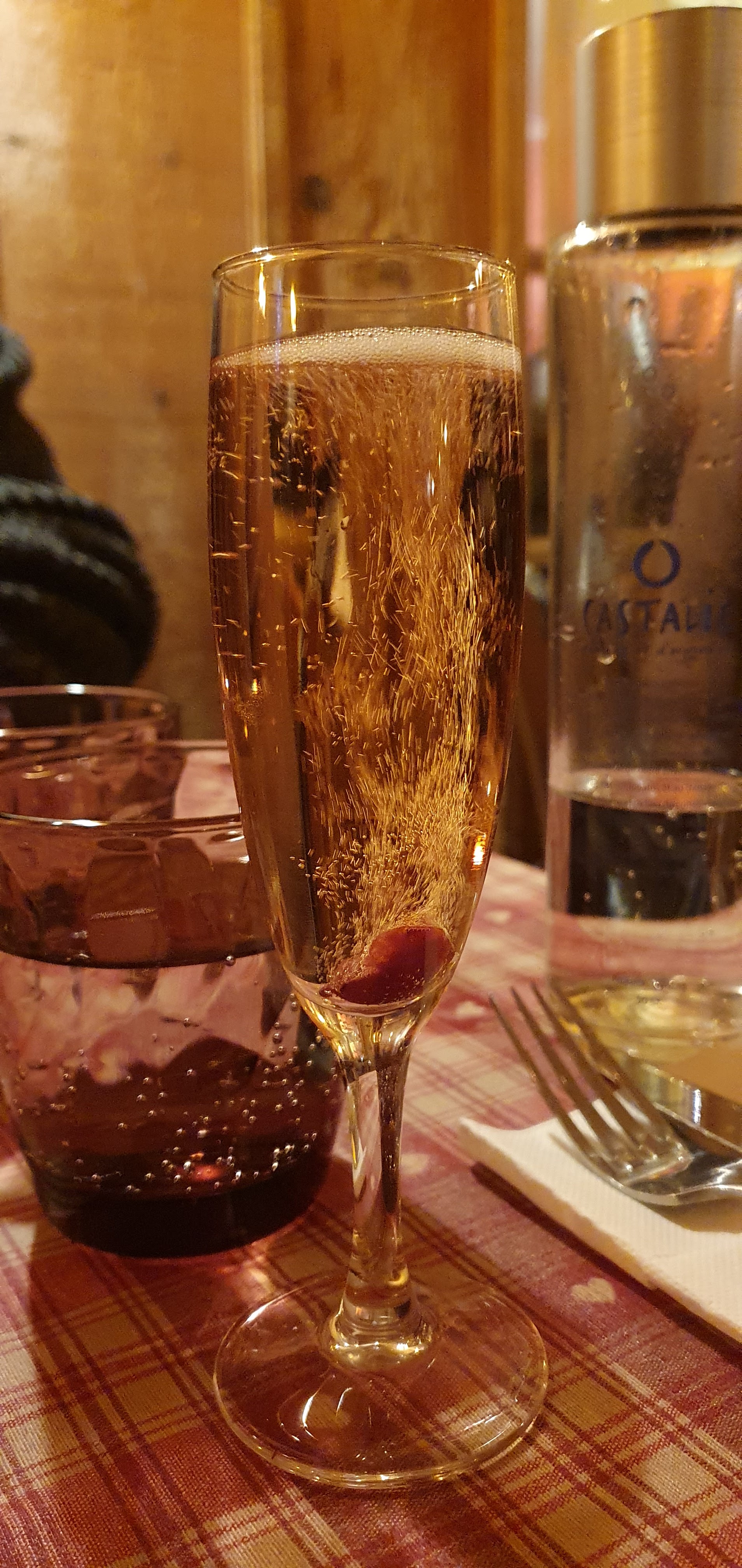 Nous avions une table près de la porte d’entrée, nous avons eu froid car beaucoup de va et vient. Le repas était bon mais pas assez chaud pour le poulet. Très bonne forêt noire mais seulement 2 cerises dans la part de gâteau.