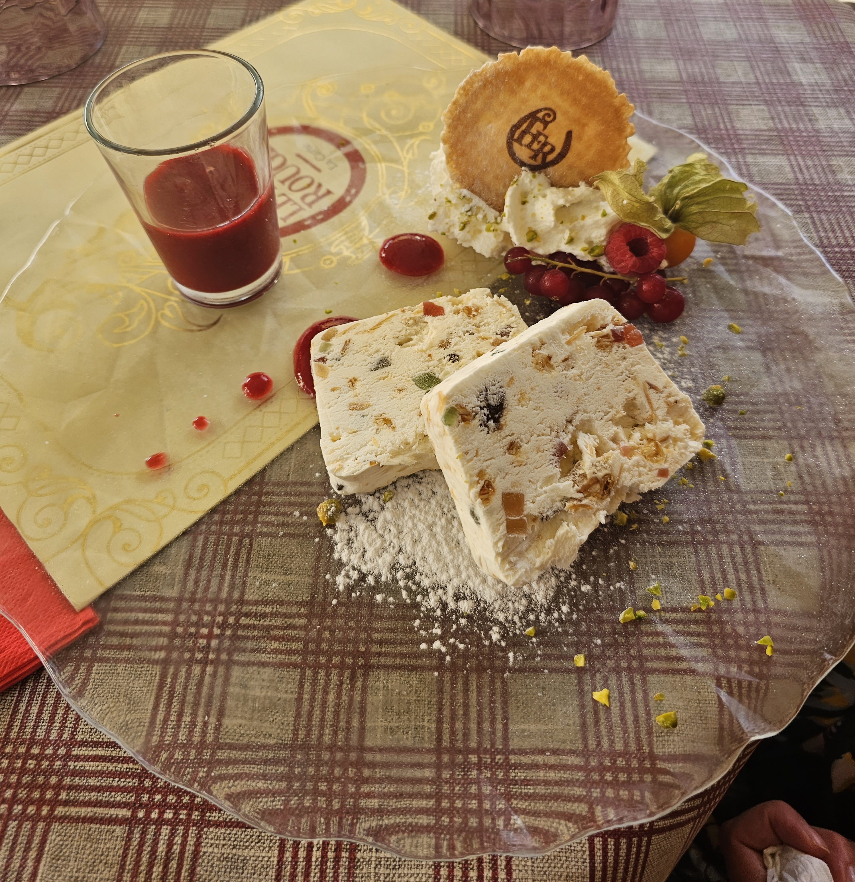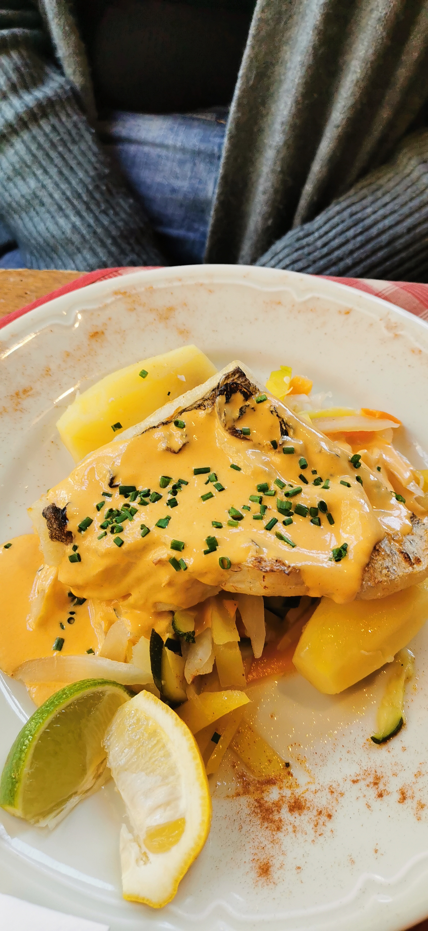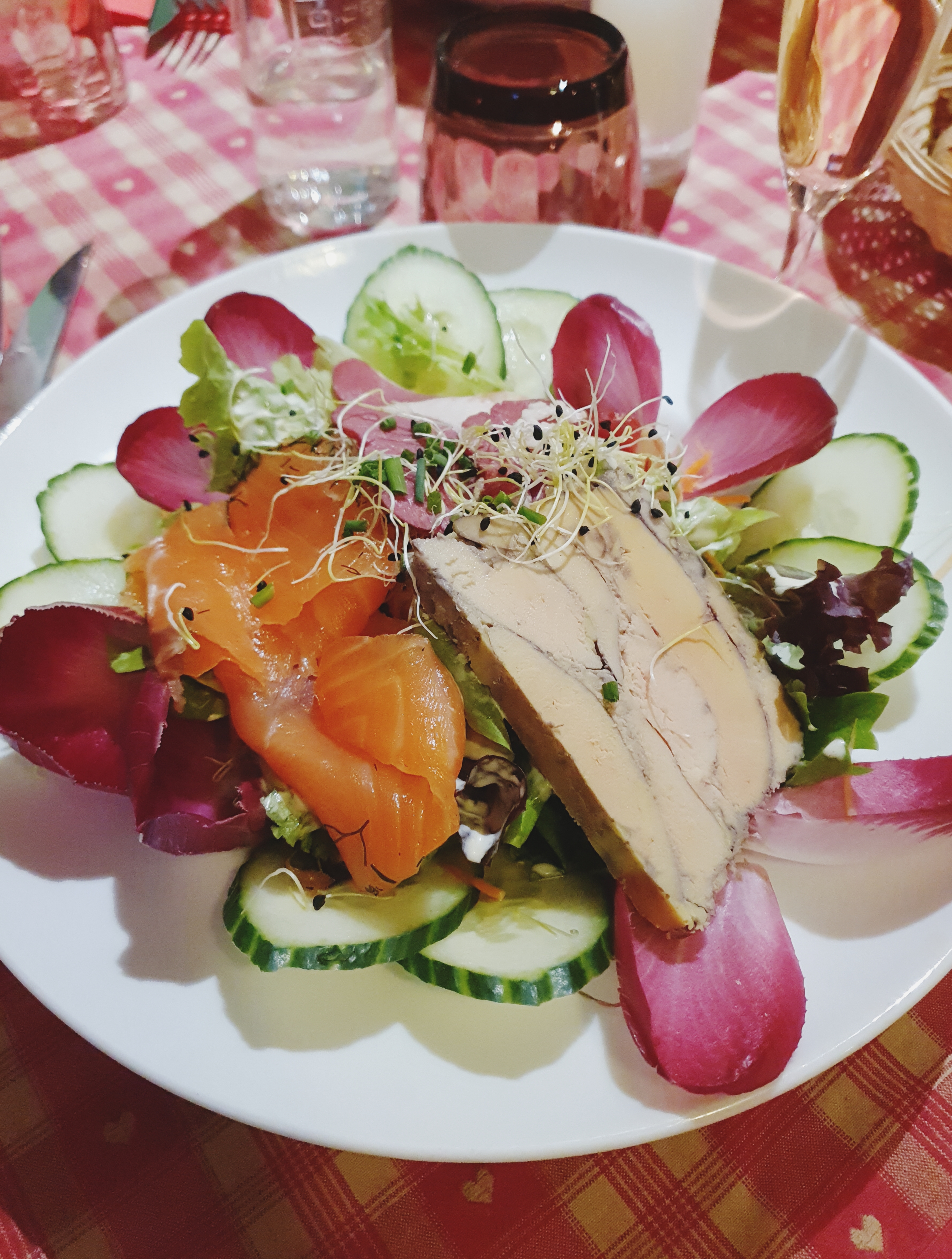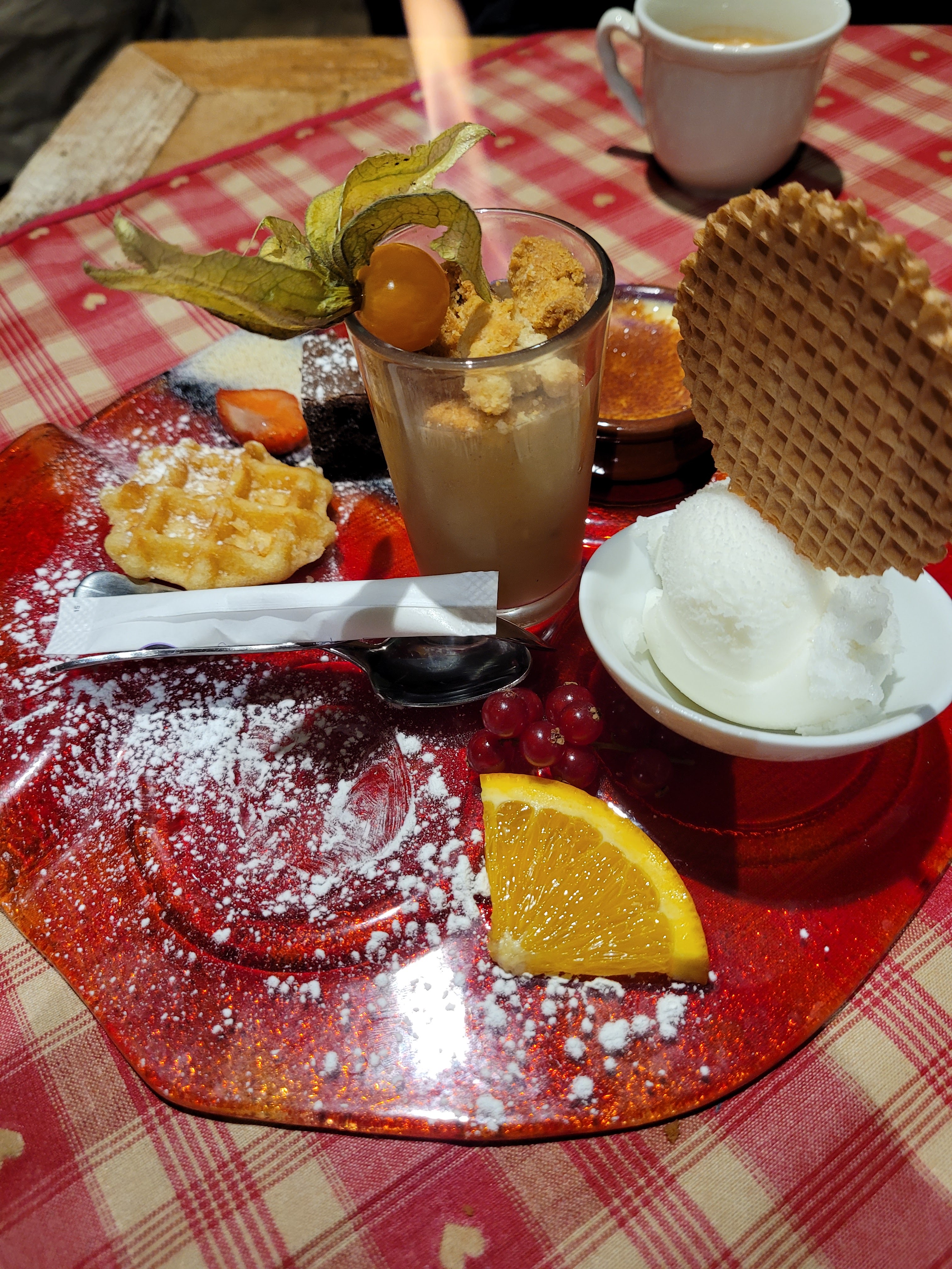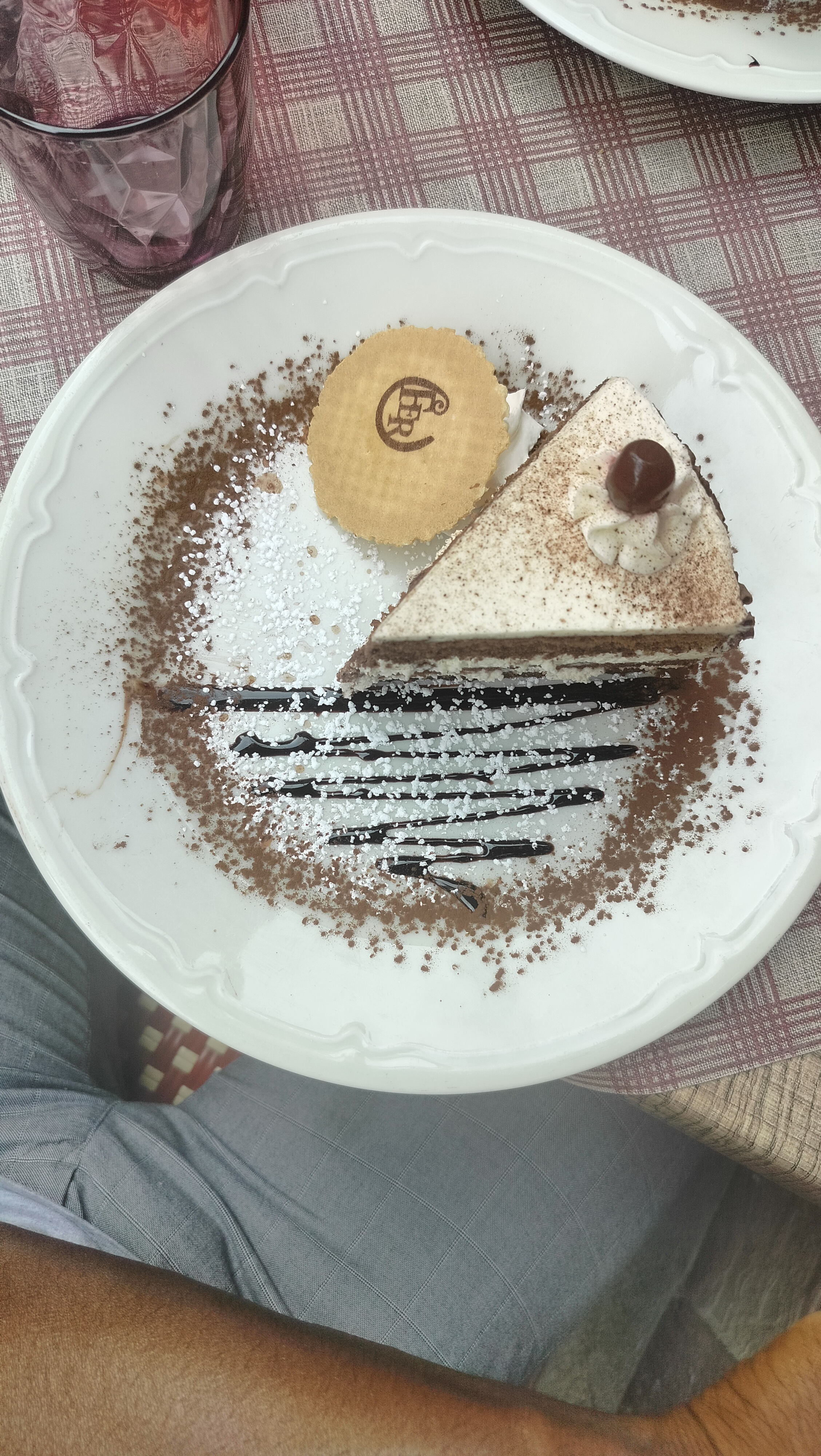 Nous avions une table près de la porte d’entrée, nous avons eu froid car beaucoup de va et vient. Le repas était bon mais pas assez chaud pour le poulet. Très bonne forêt noire mais seulement 2 cerises dans la part de gâteau.