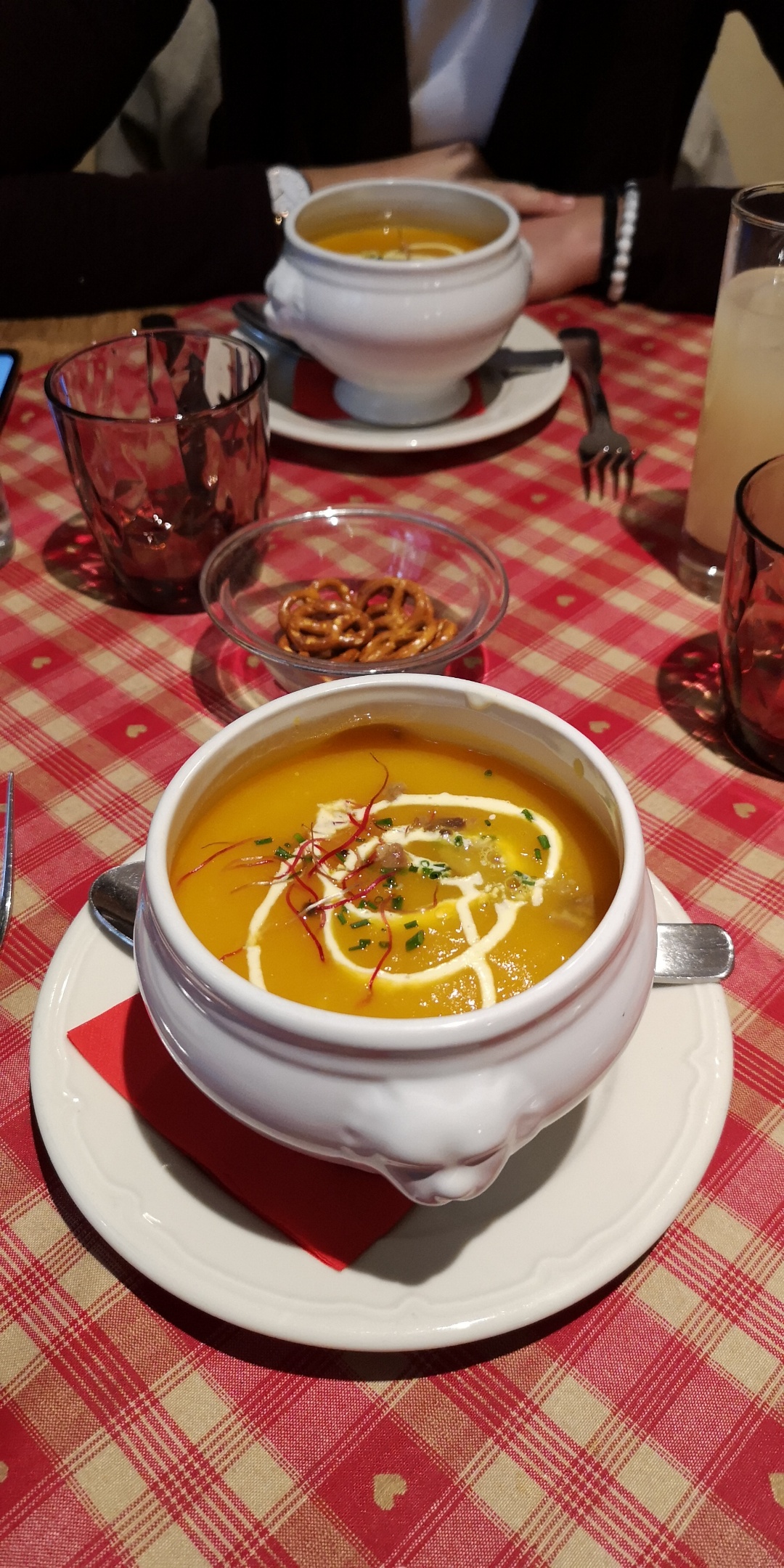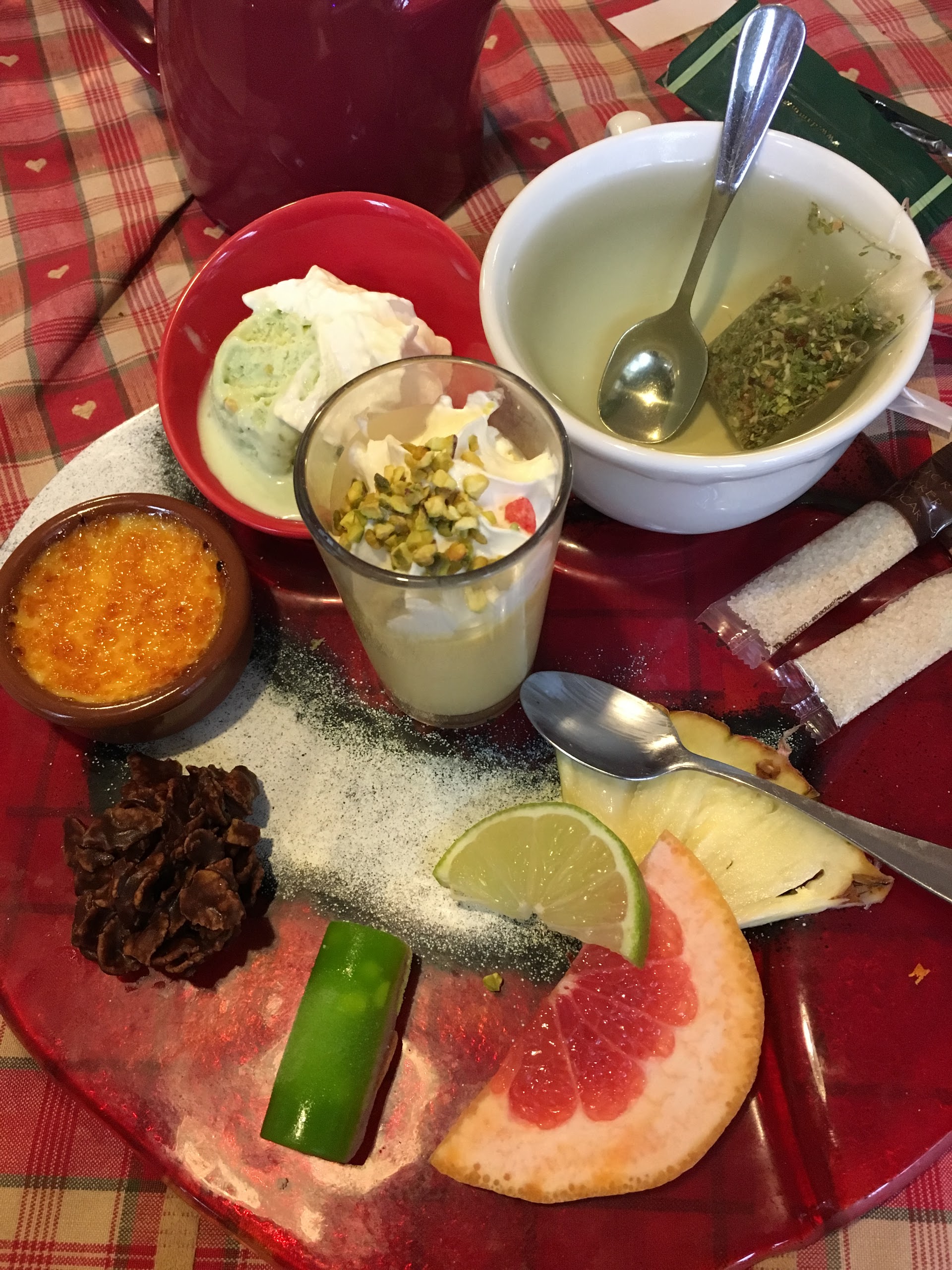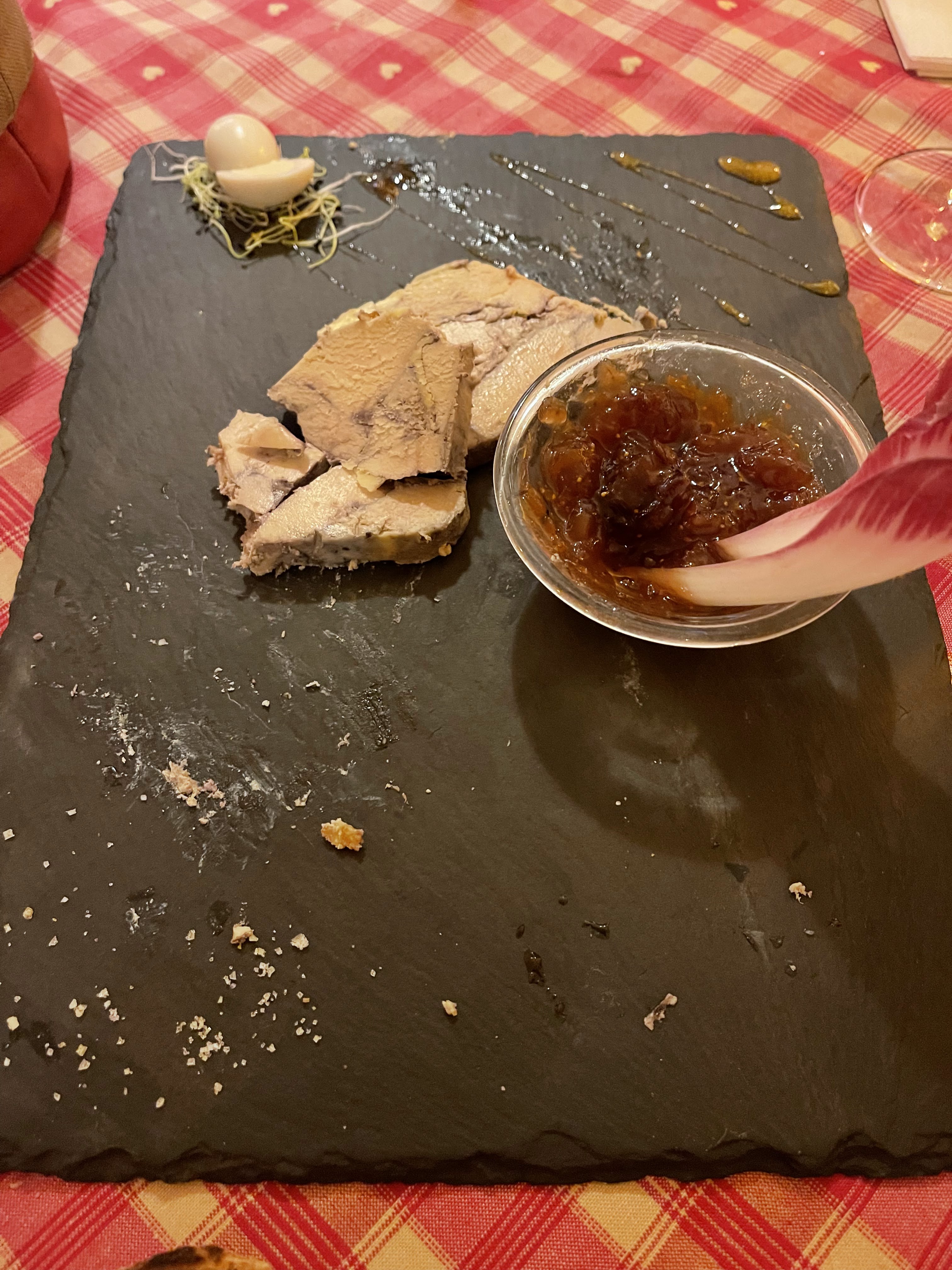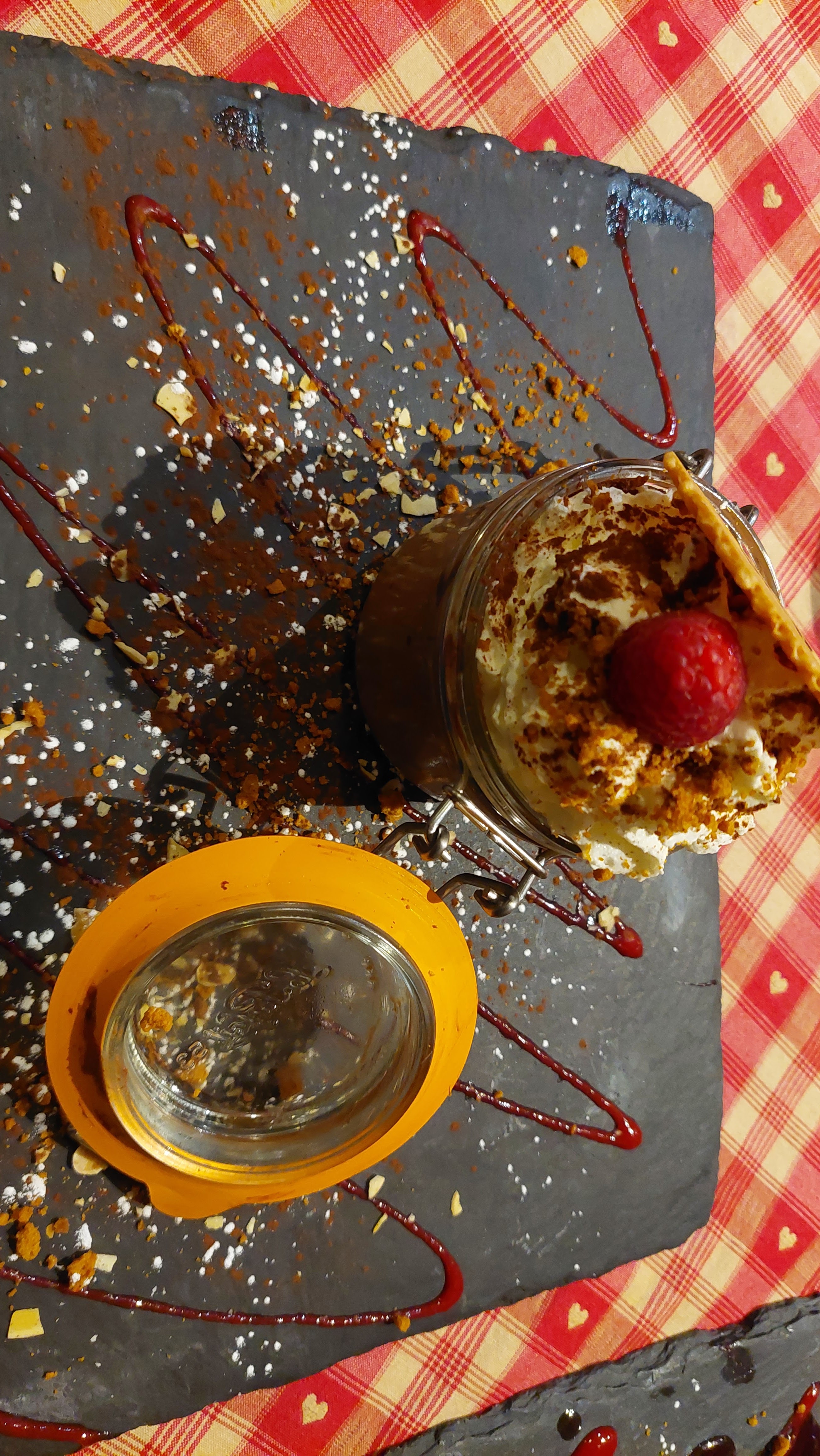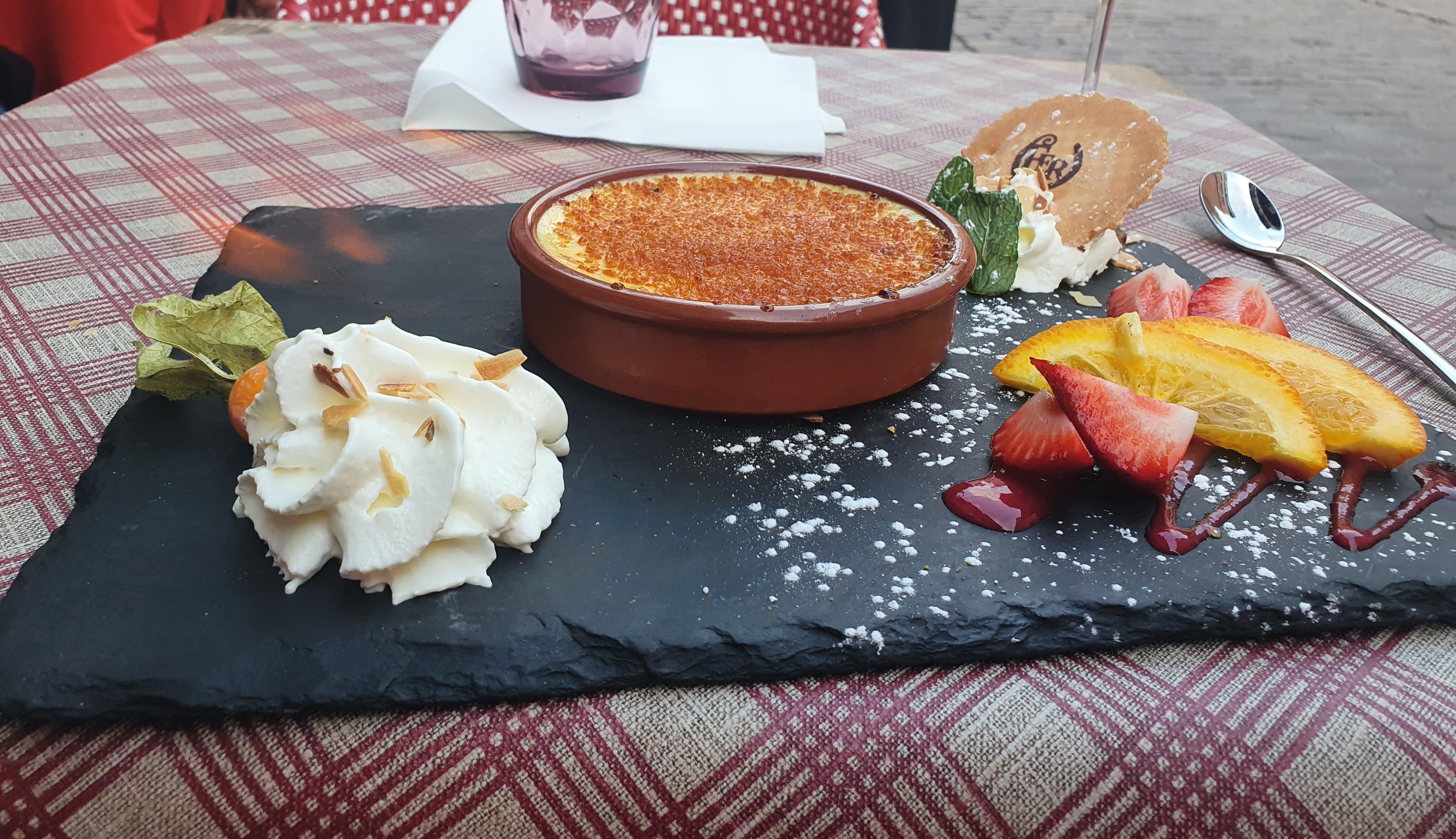 Nous avions une table près de la porte d’entrée, nous avons eu froid car beaucoup de va et vient. Le repas était bon mais pas assez chaud pour le poulet. Très bonne forêt noire mais seulement 2 cerises dans la part de gâteau.