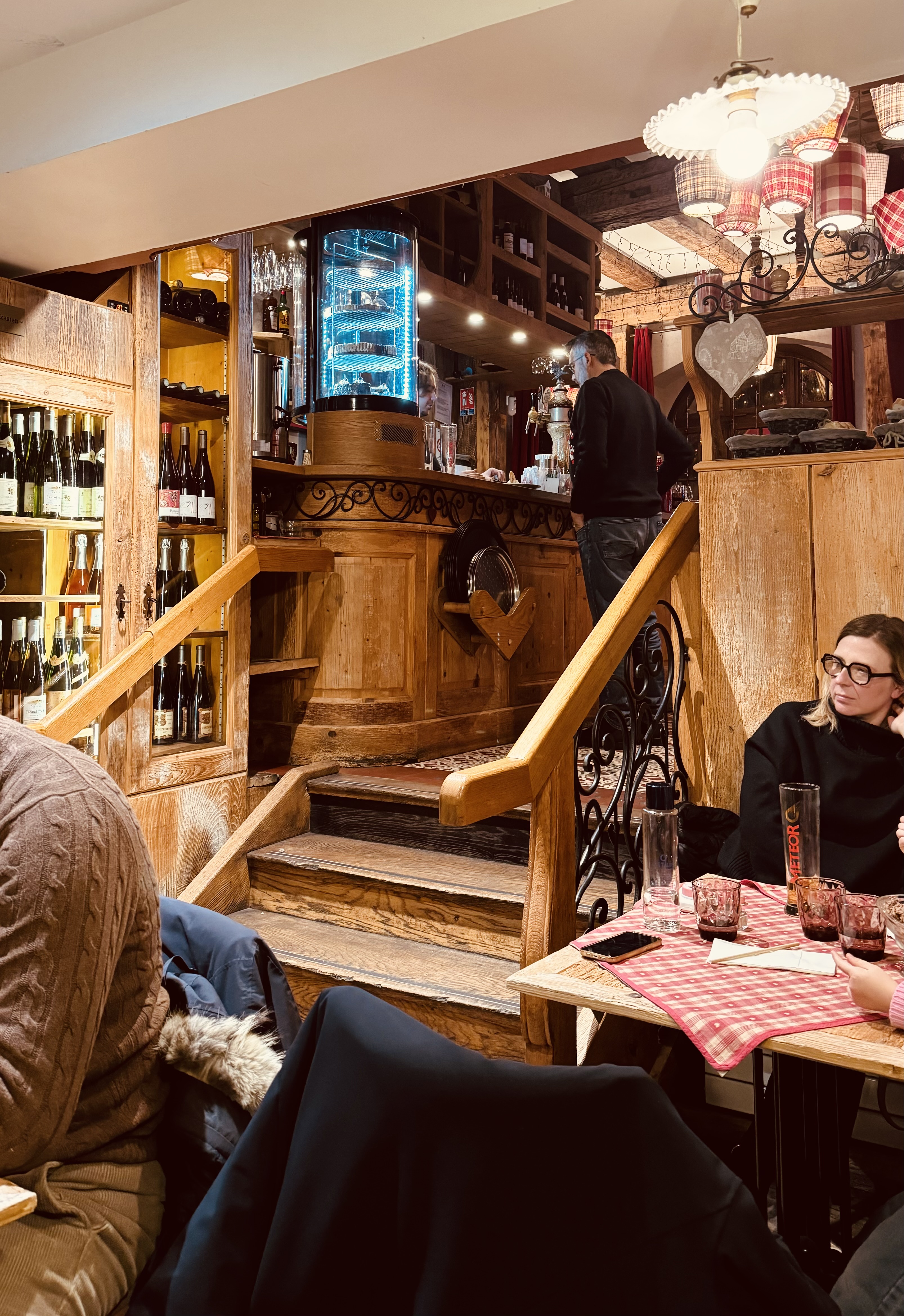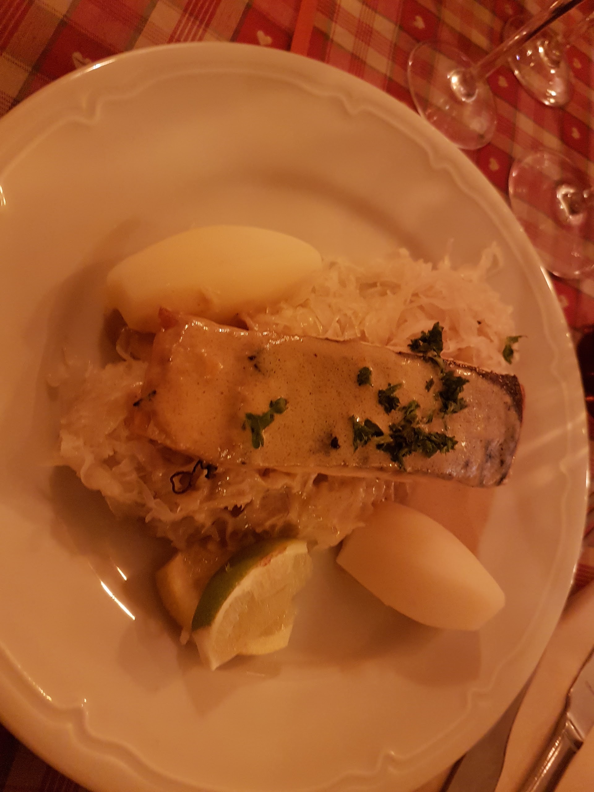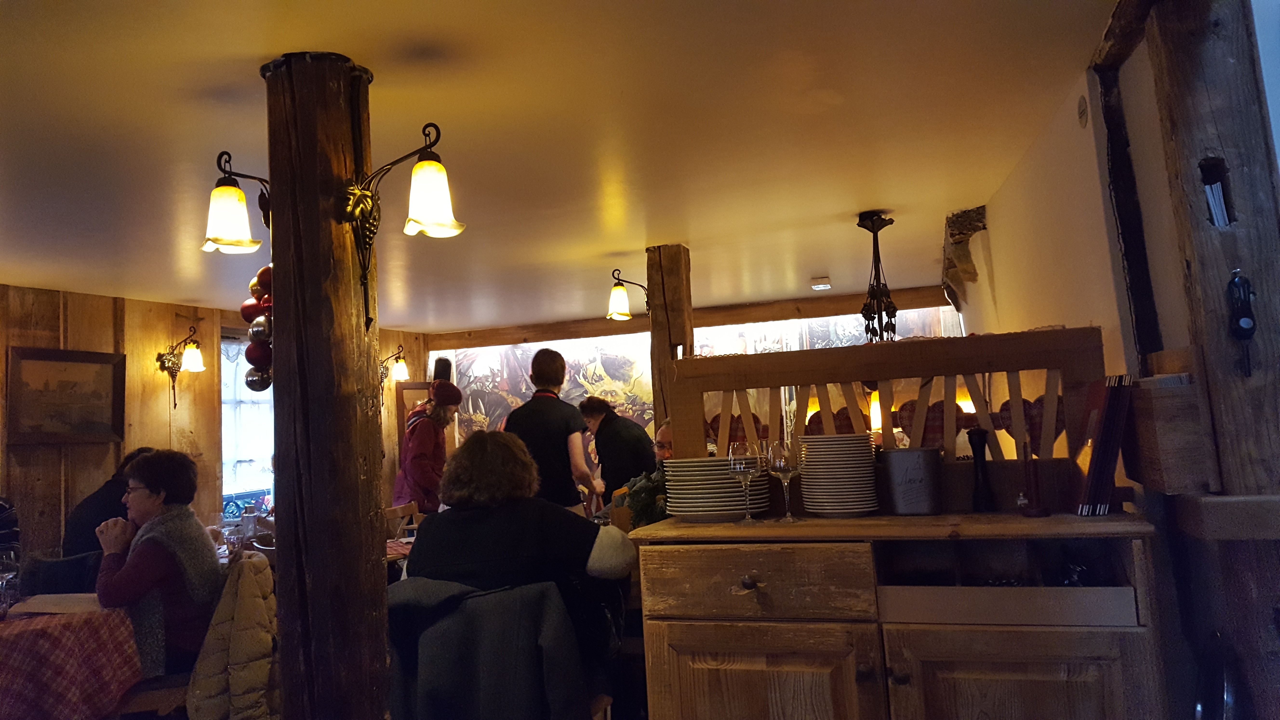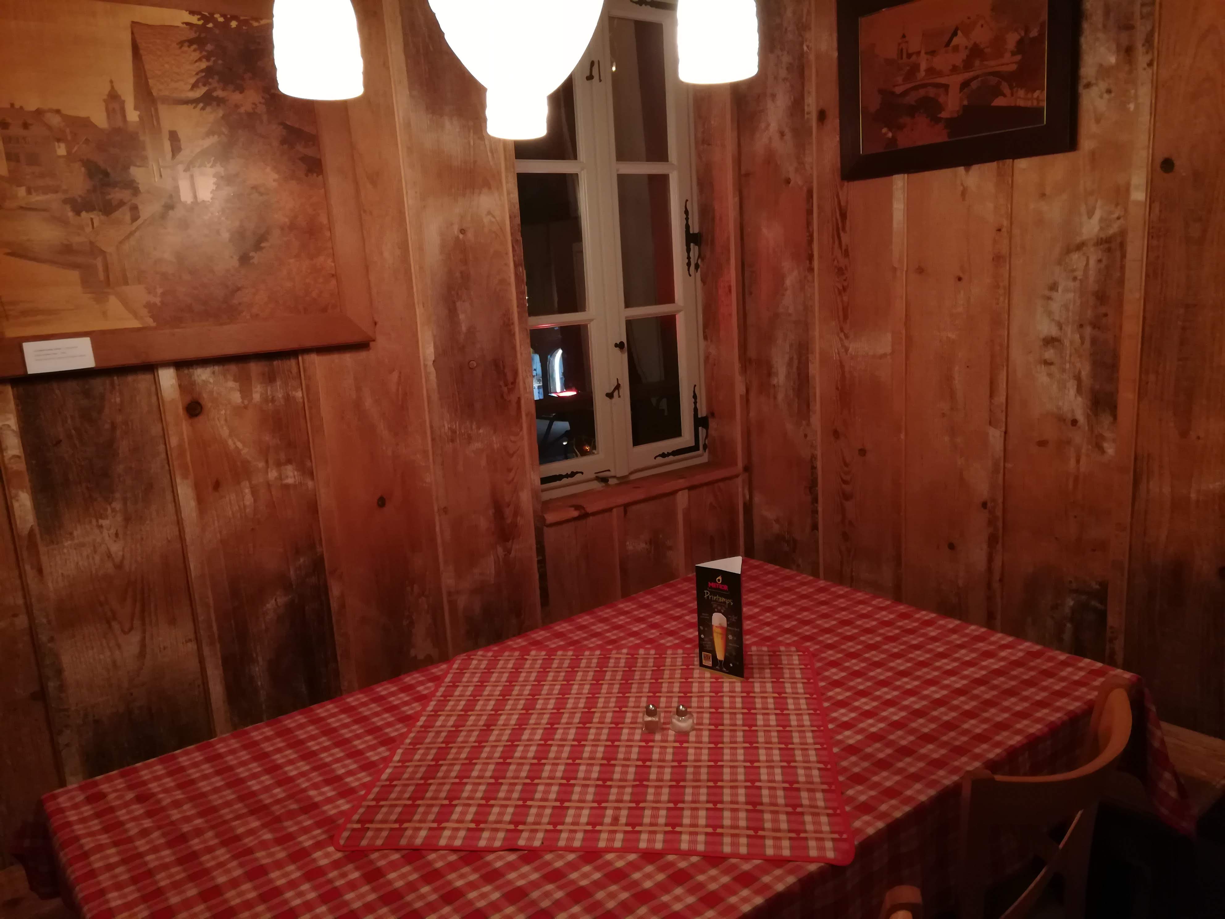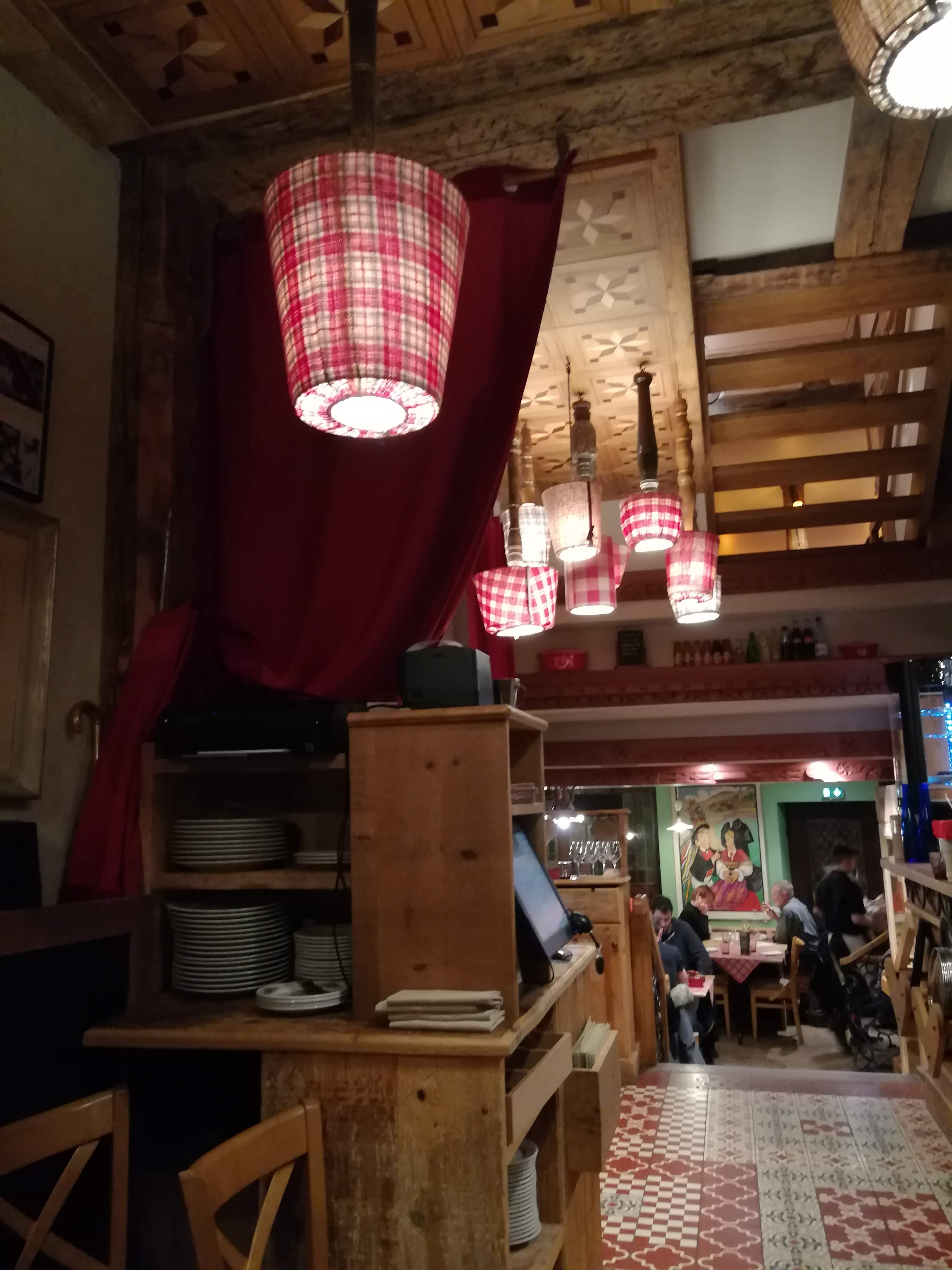 Après 35 minutes d'attente dans le froid, nous avons été placés dans une salle toute de bois décorée. Les spatzle au munster étaient très bons et trèèèèès copieux (équivalent de 2 repas). Une bonne adresse à Colmar !
