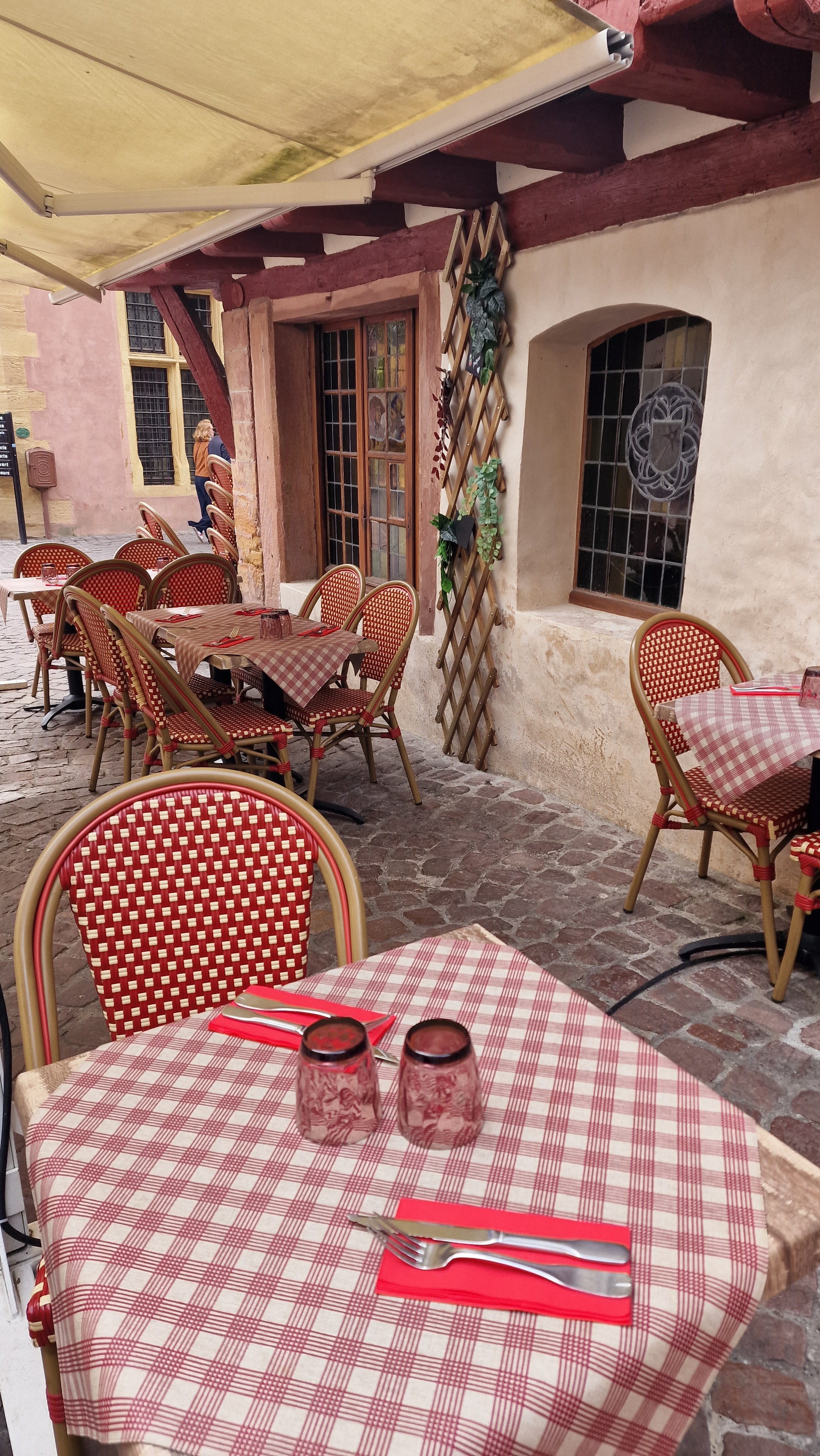 Restaurant parfaitement positionné au sein de la ville de Colmar . Le serveur qui s'est occupé de notre table était poli , sympathique et à l'écoute . Parfait . Pour ce qui est de la cuisine, nous sommes ravis . Nous avons très bien mangé.