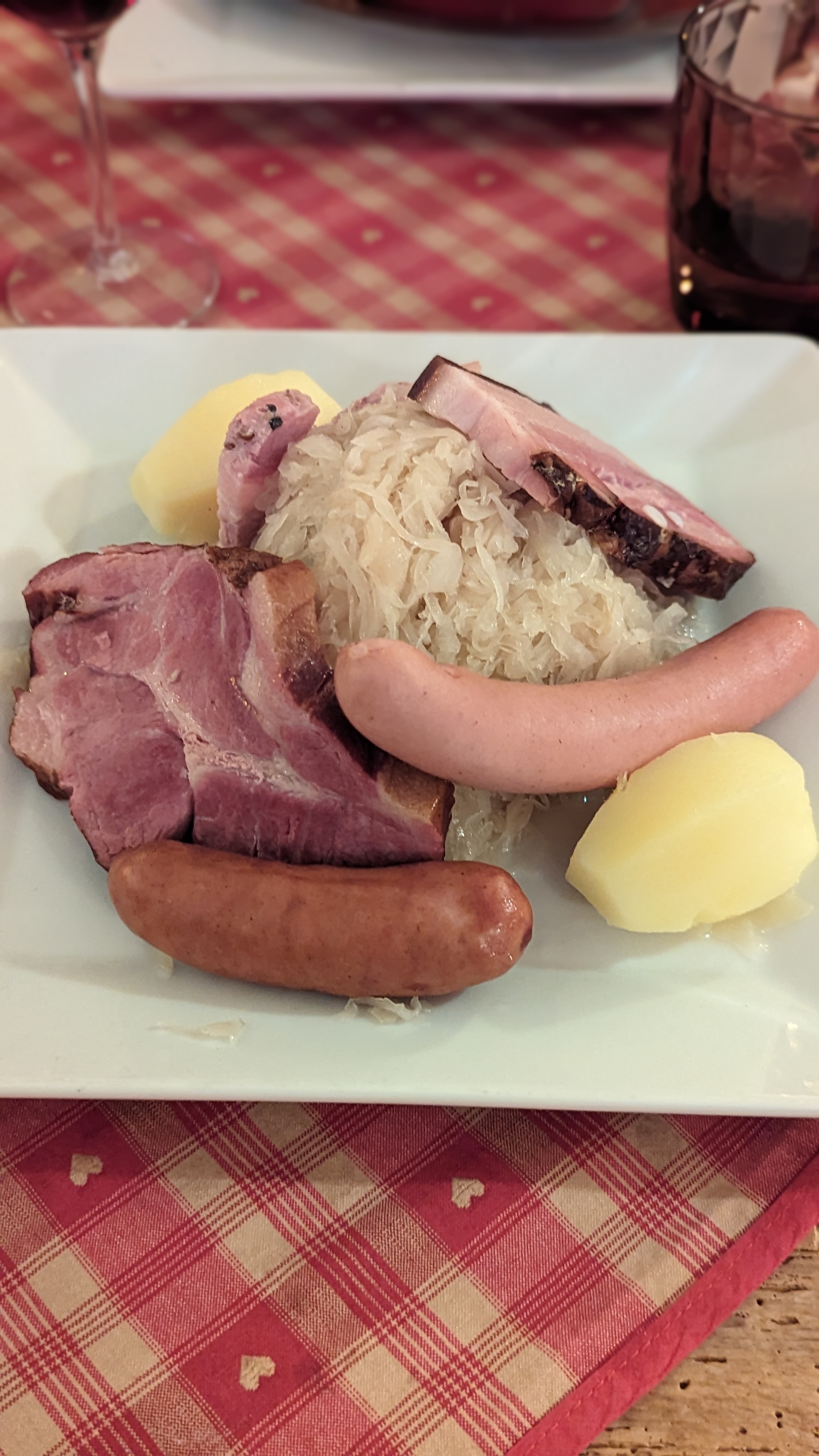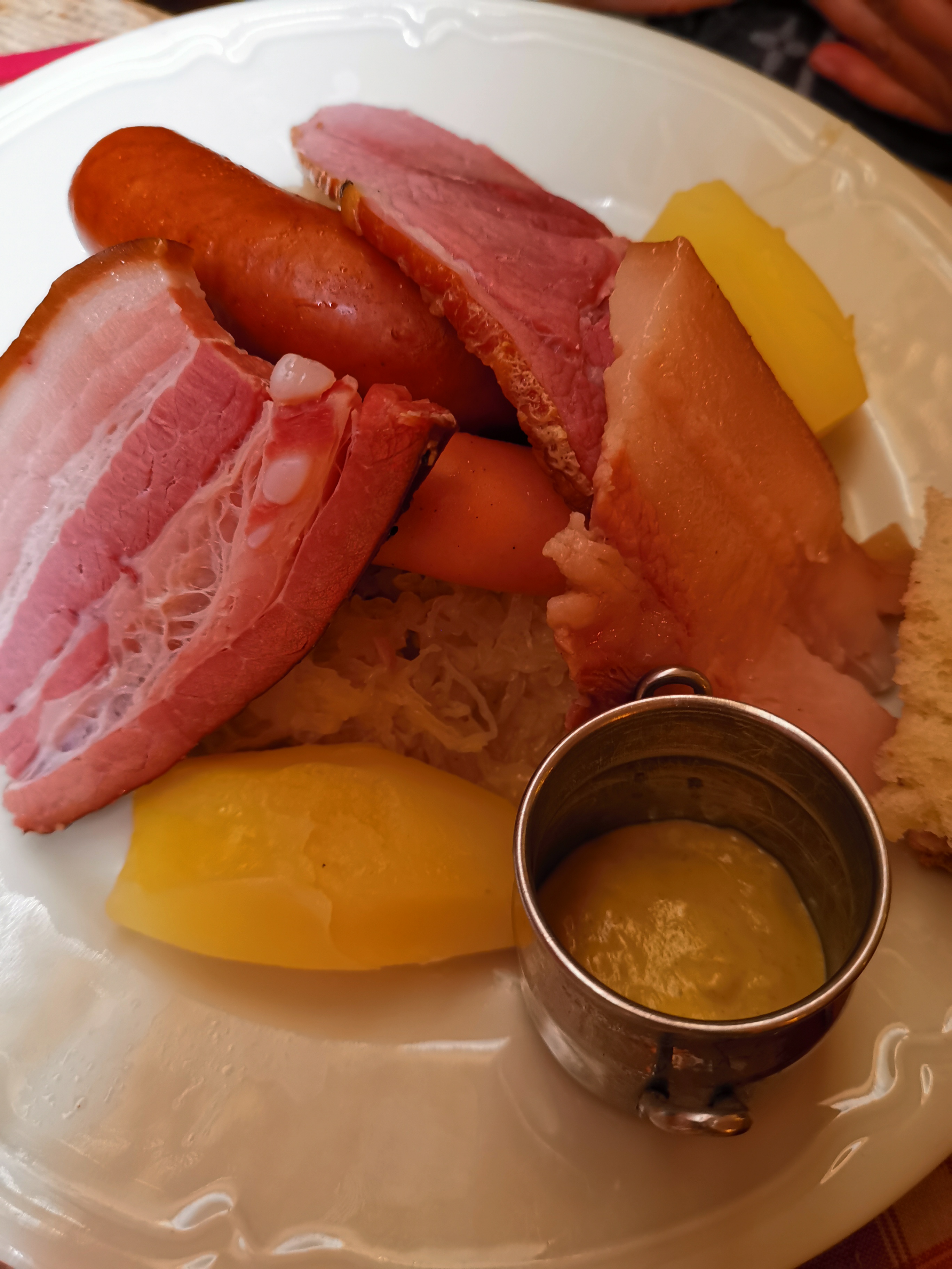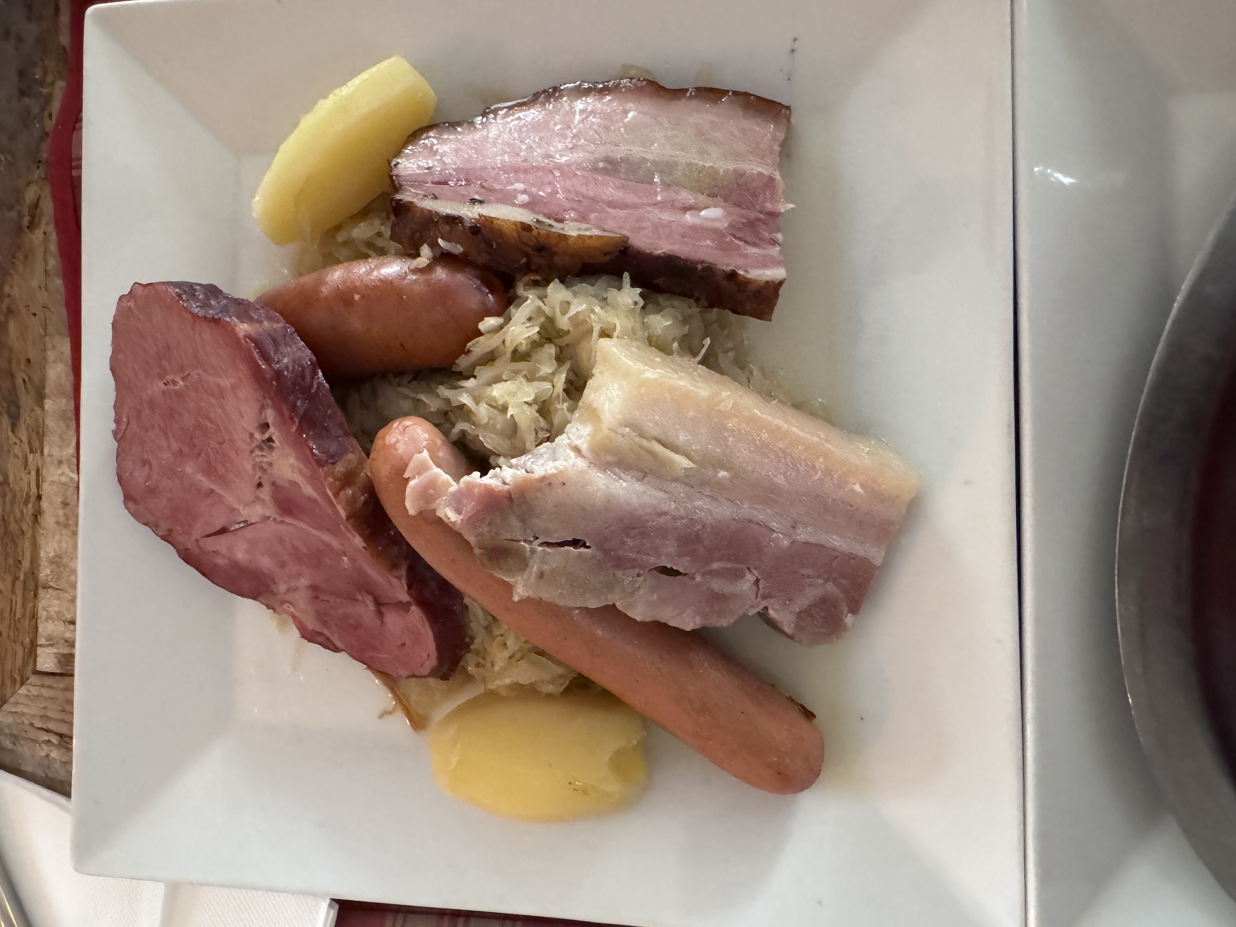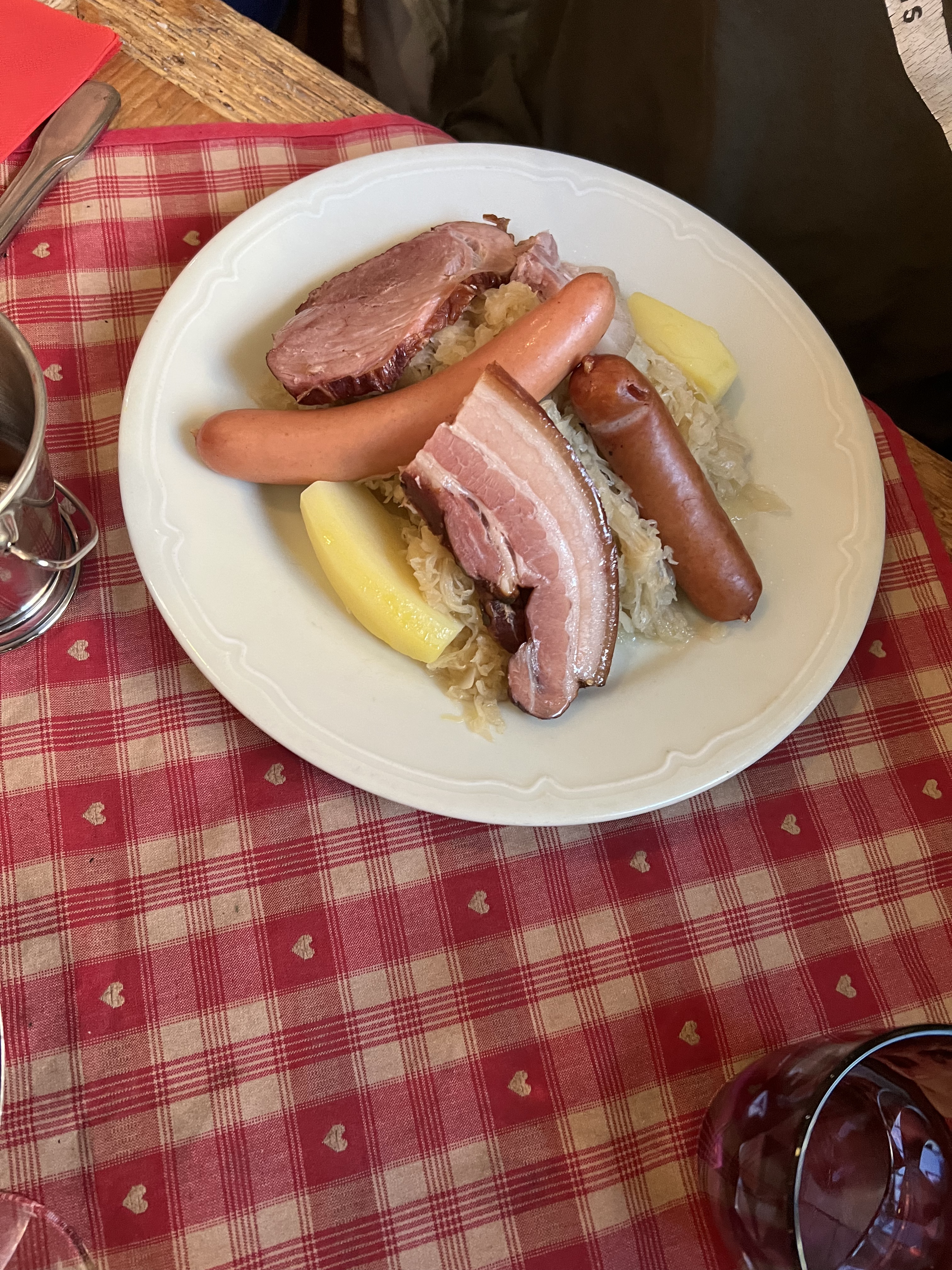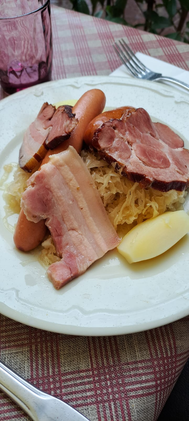 Merveilleux moment! Le baekhofe cuisiné au pinot noir est magnifique et émerveille nos papilles, la choucroute l'est tout autant! Le décor, la gentillesse et le professionnalisme de l'équipe, l'ambiance de ce winstub nous donne envie de revenir y déguster un de leur merveilleux plat lors de notre prochaine visite à Colmar!