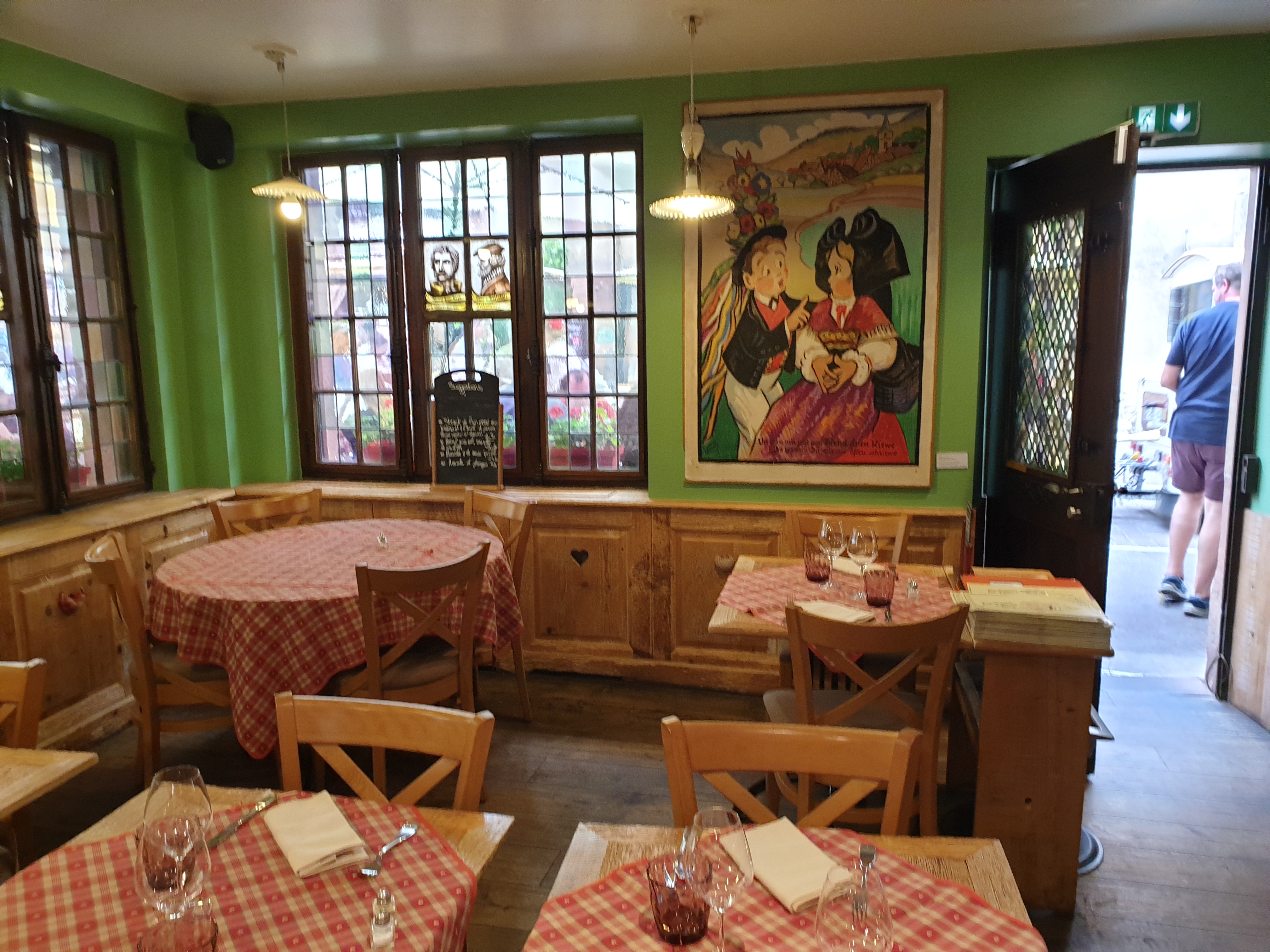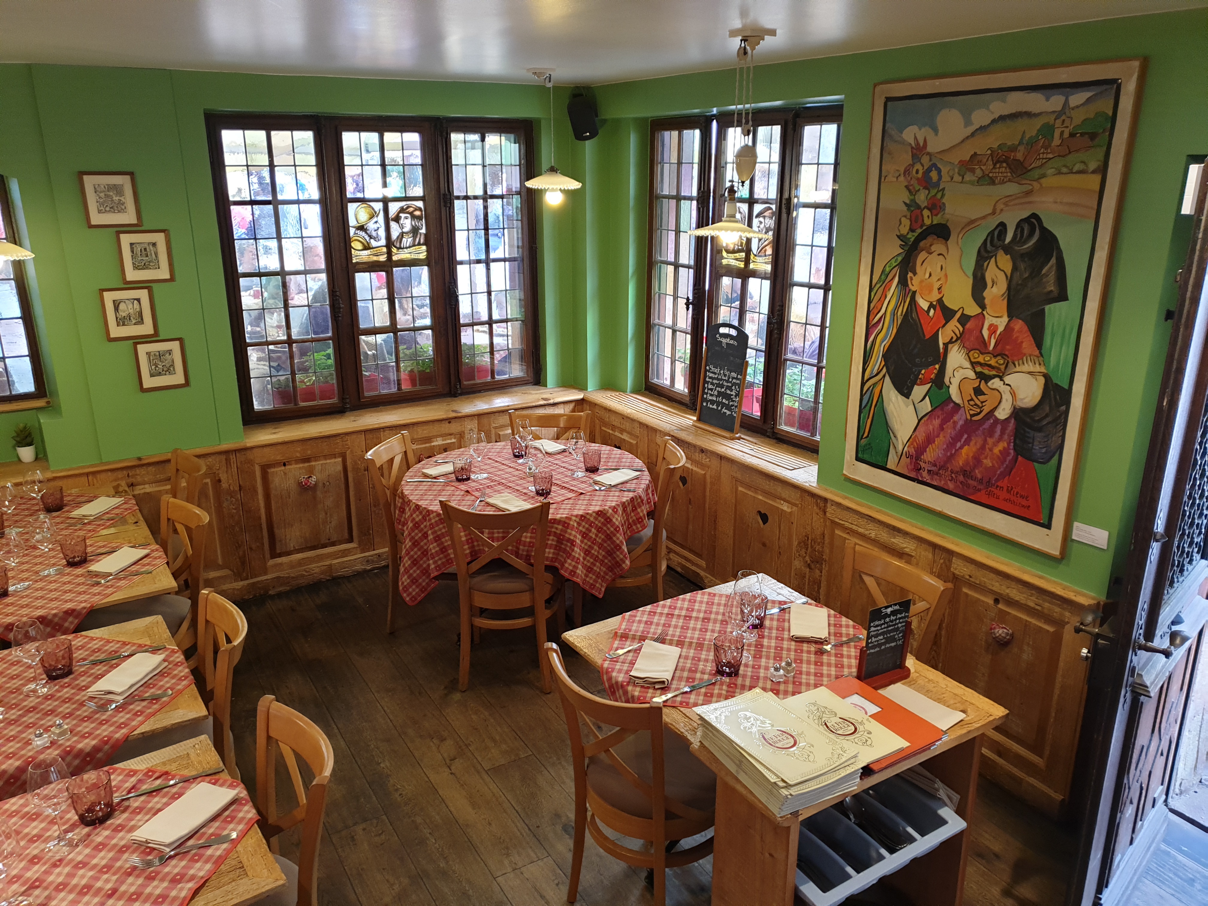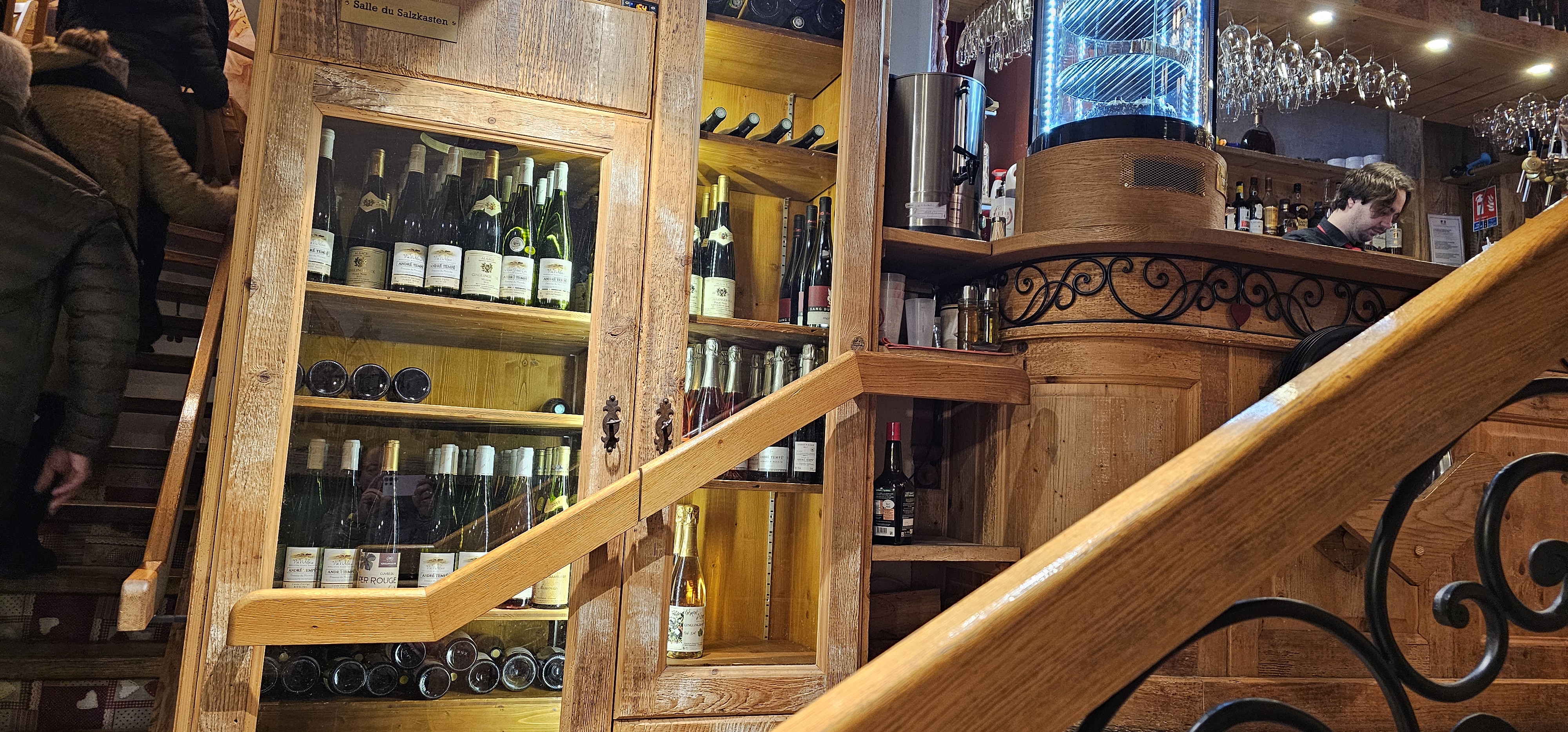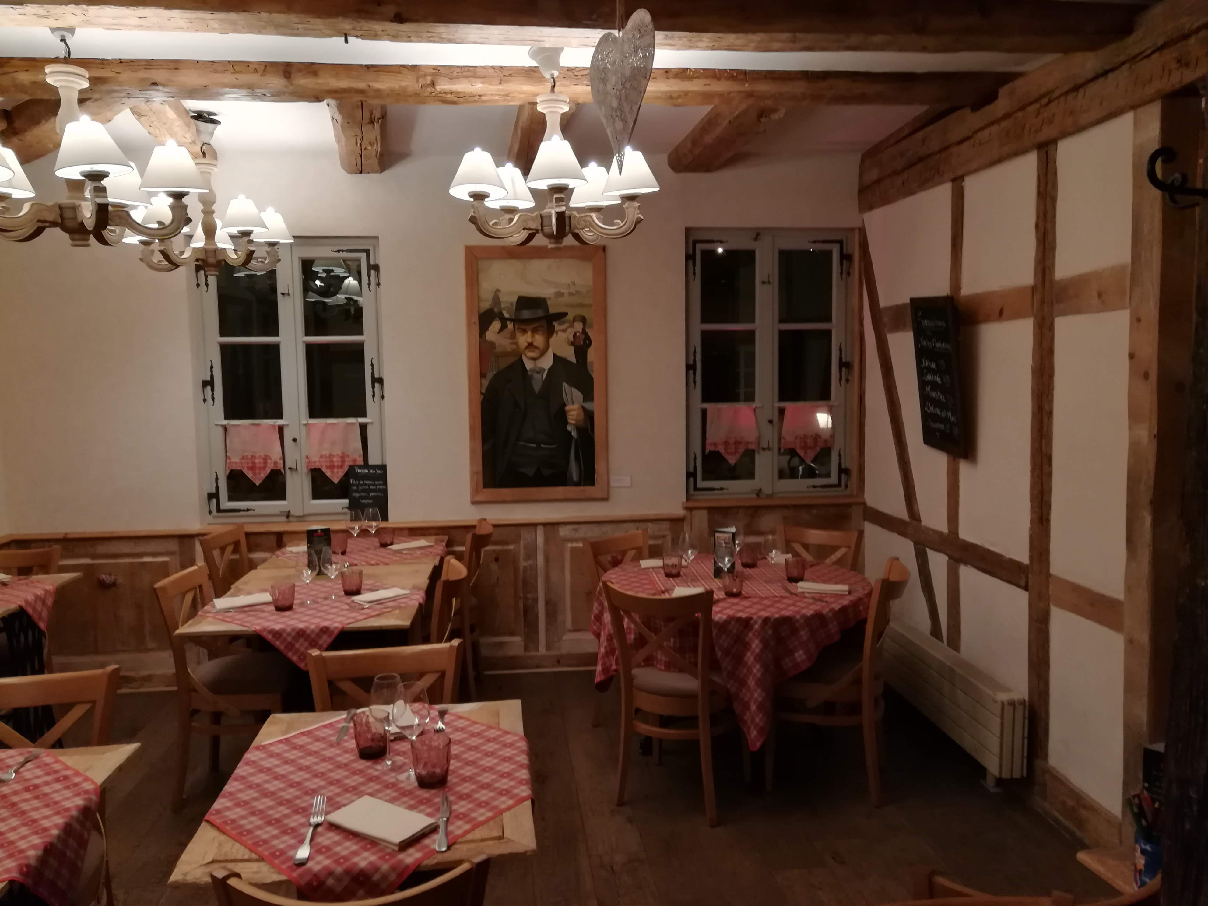 Cadre et décor typique alsacien. Sur 3 niveaux, tout en bois. Accueil agréable. Bonne cuisine à prix raisonnables. Situé en centre ville dans une vieille demeure. Jambonneau copieux. Backeoff savoureux. Irish coffee excellent.