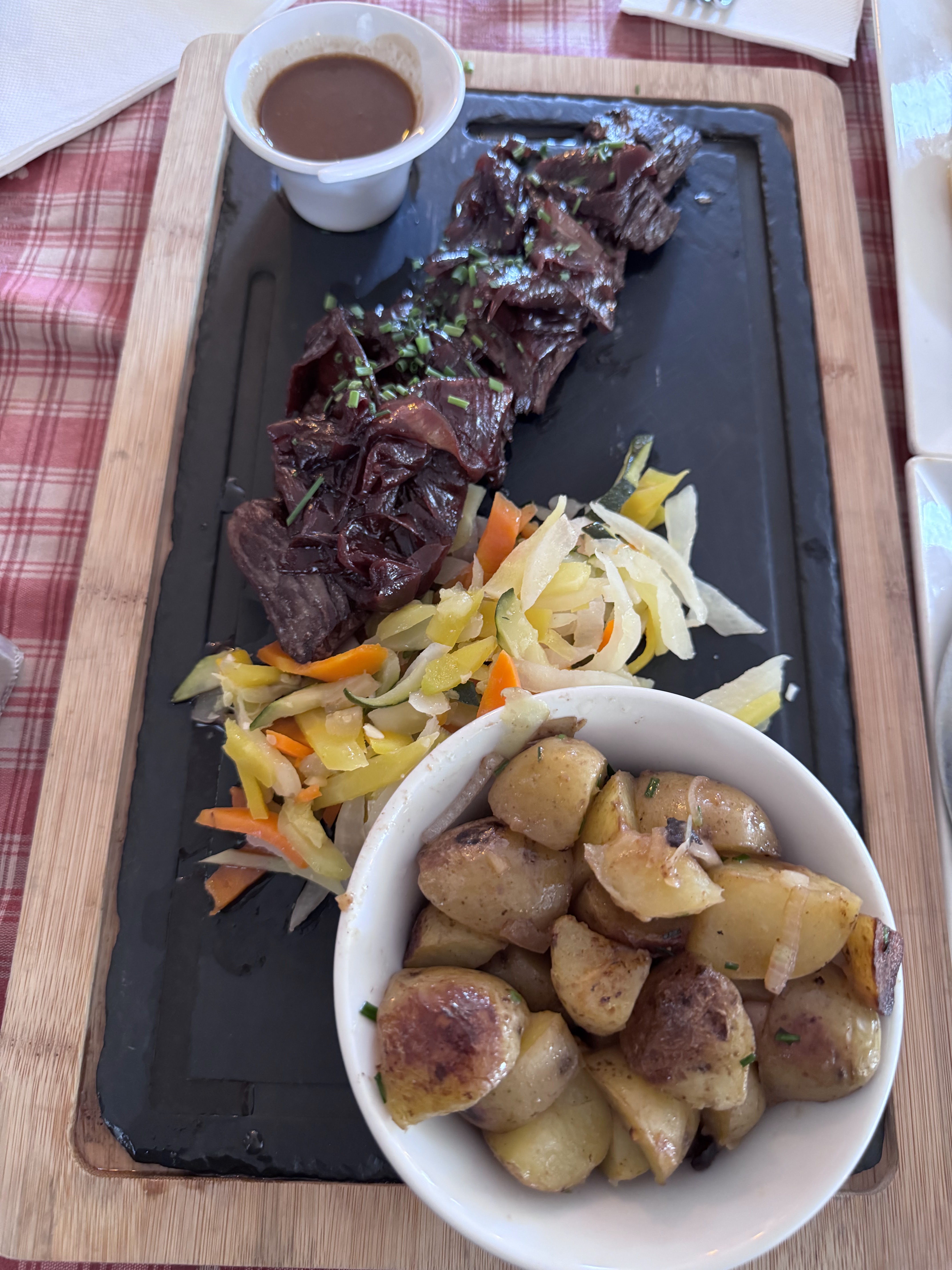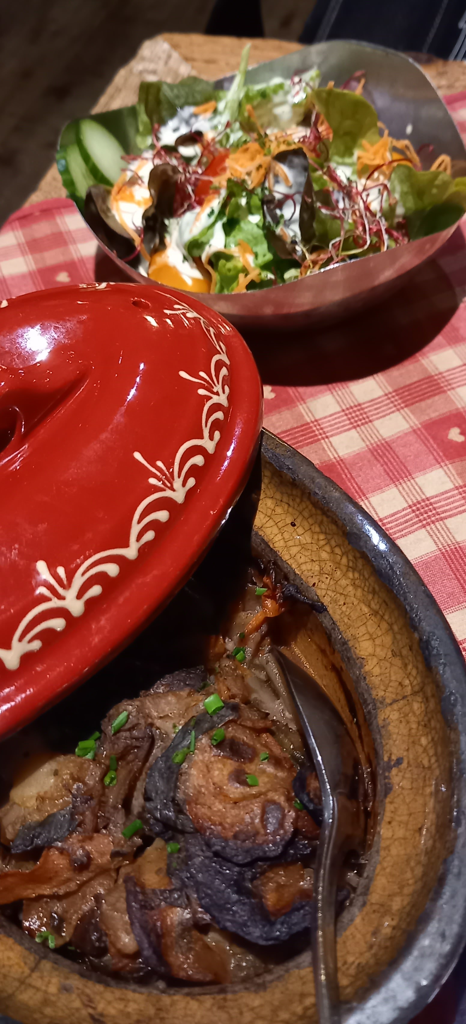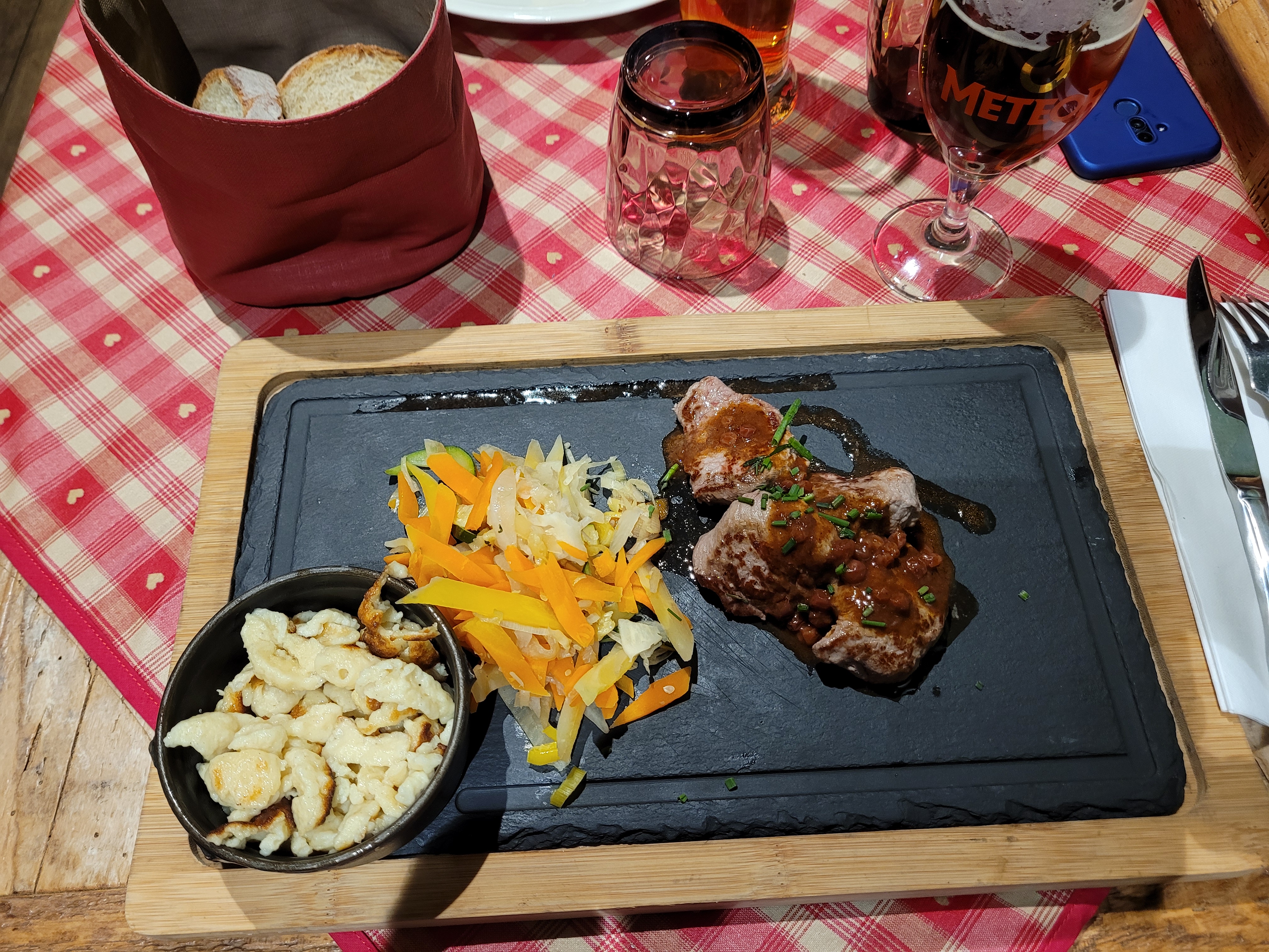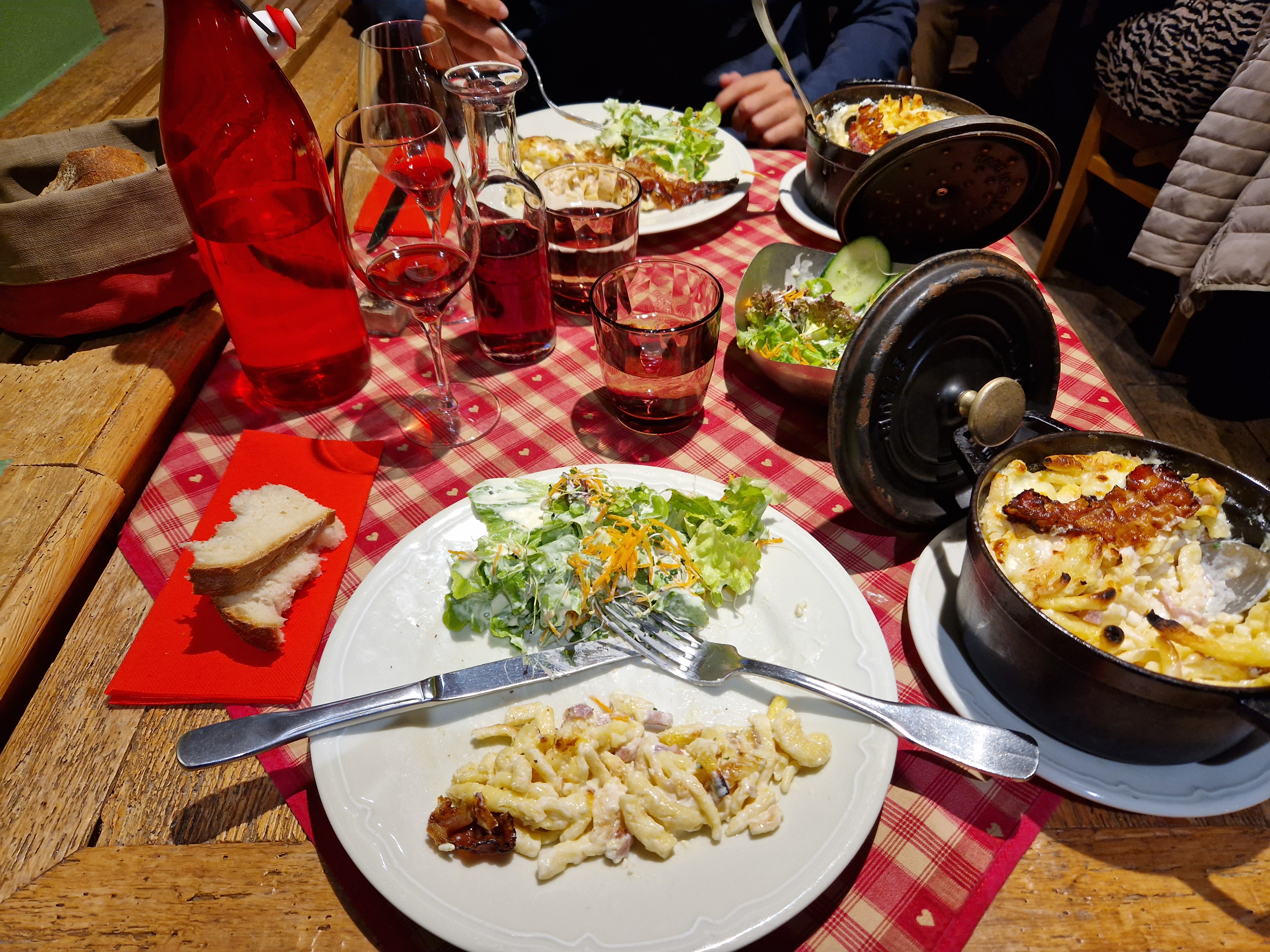 Tout a été parfait. Cassolette de Spätzle au munster et Fleischschnacka 👍. Super serveur (Hait-Savoyard, comme moi, il faut être chauvin 😂), très joviale, avec toujours un petit mot sympa et très professionnel, cela devient rare donc c’est à signalé. Le cadre du restaurant est très agréable.
