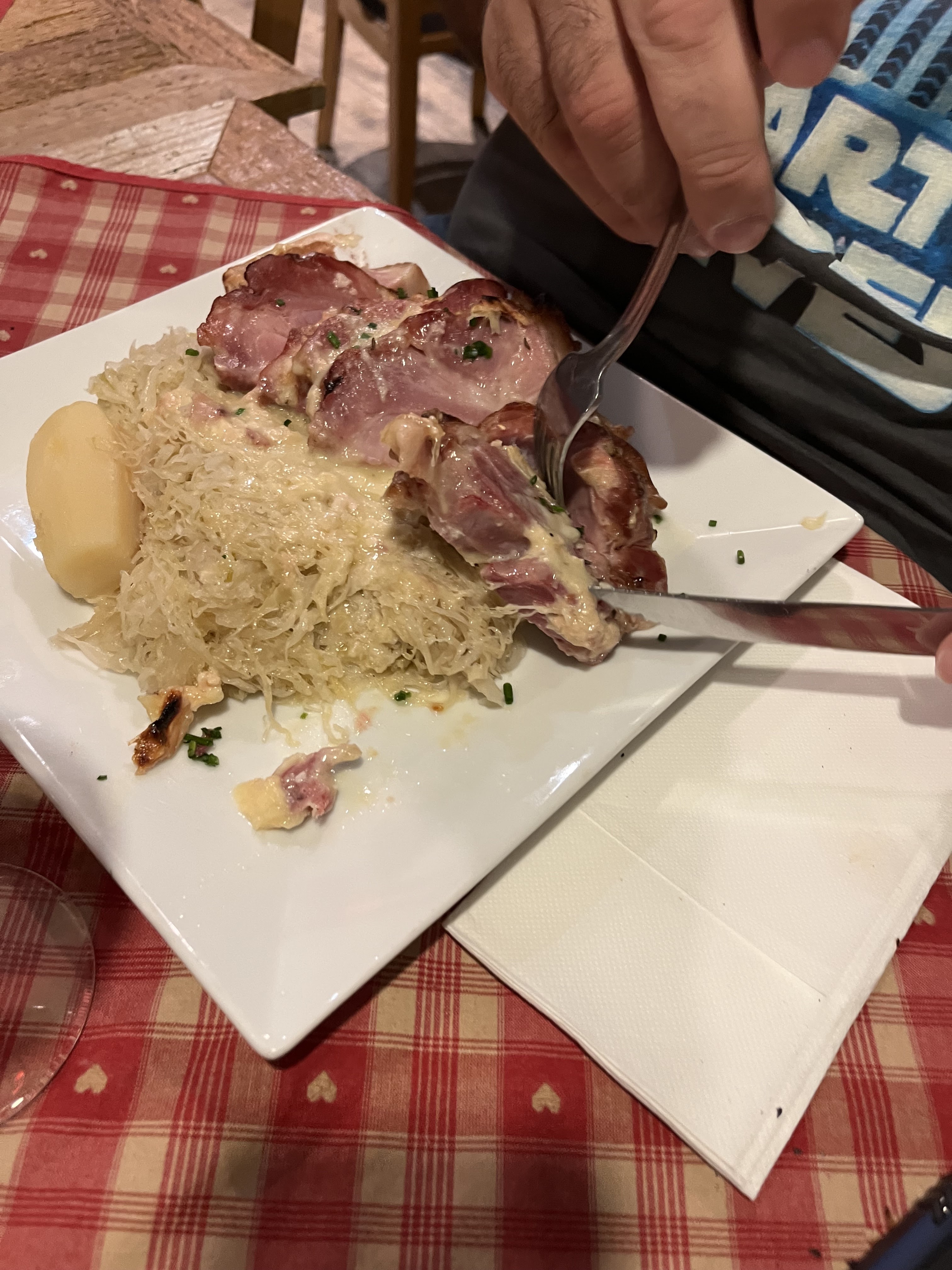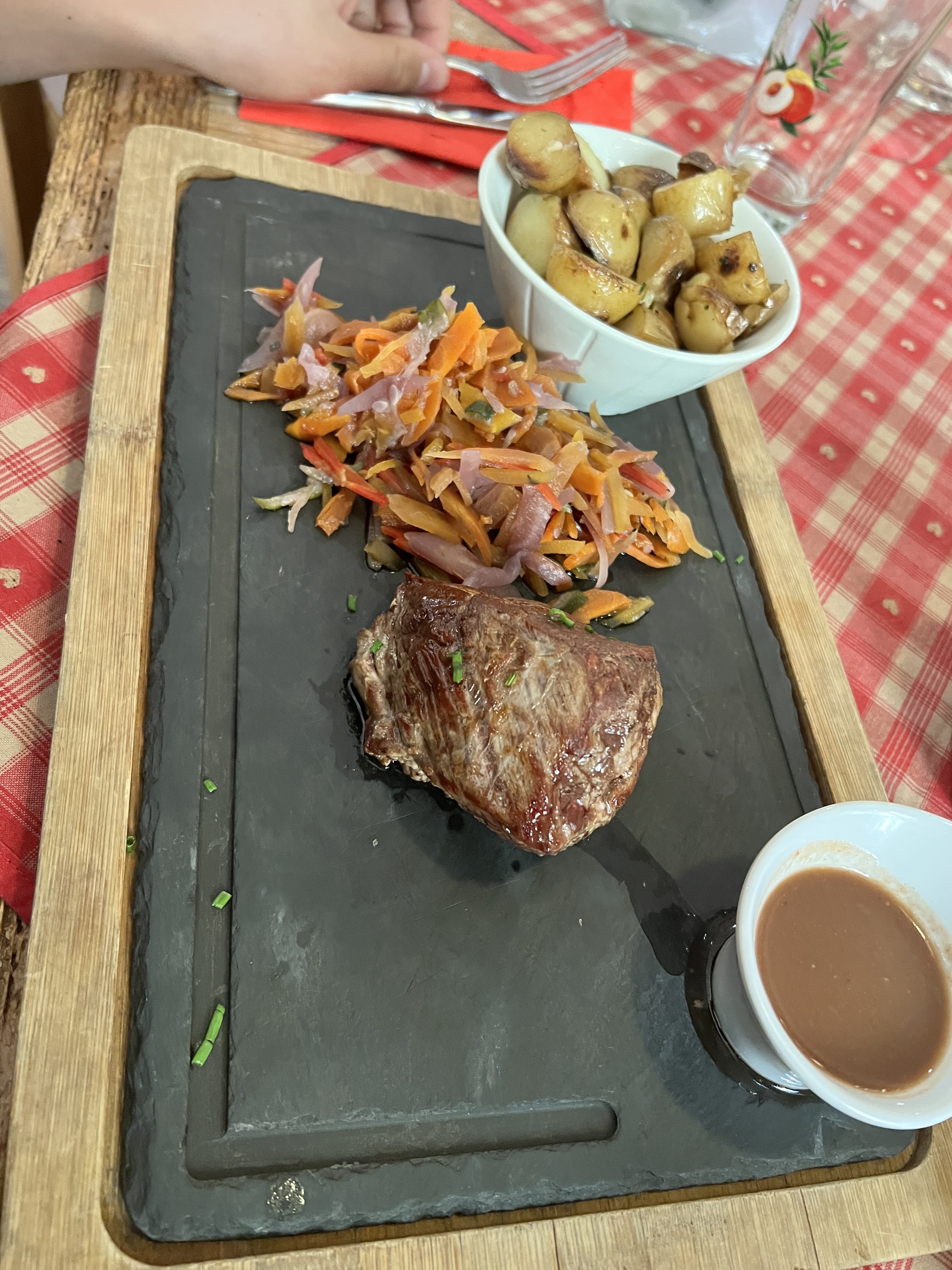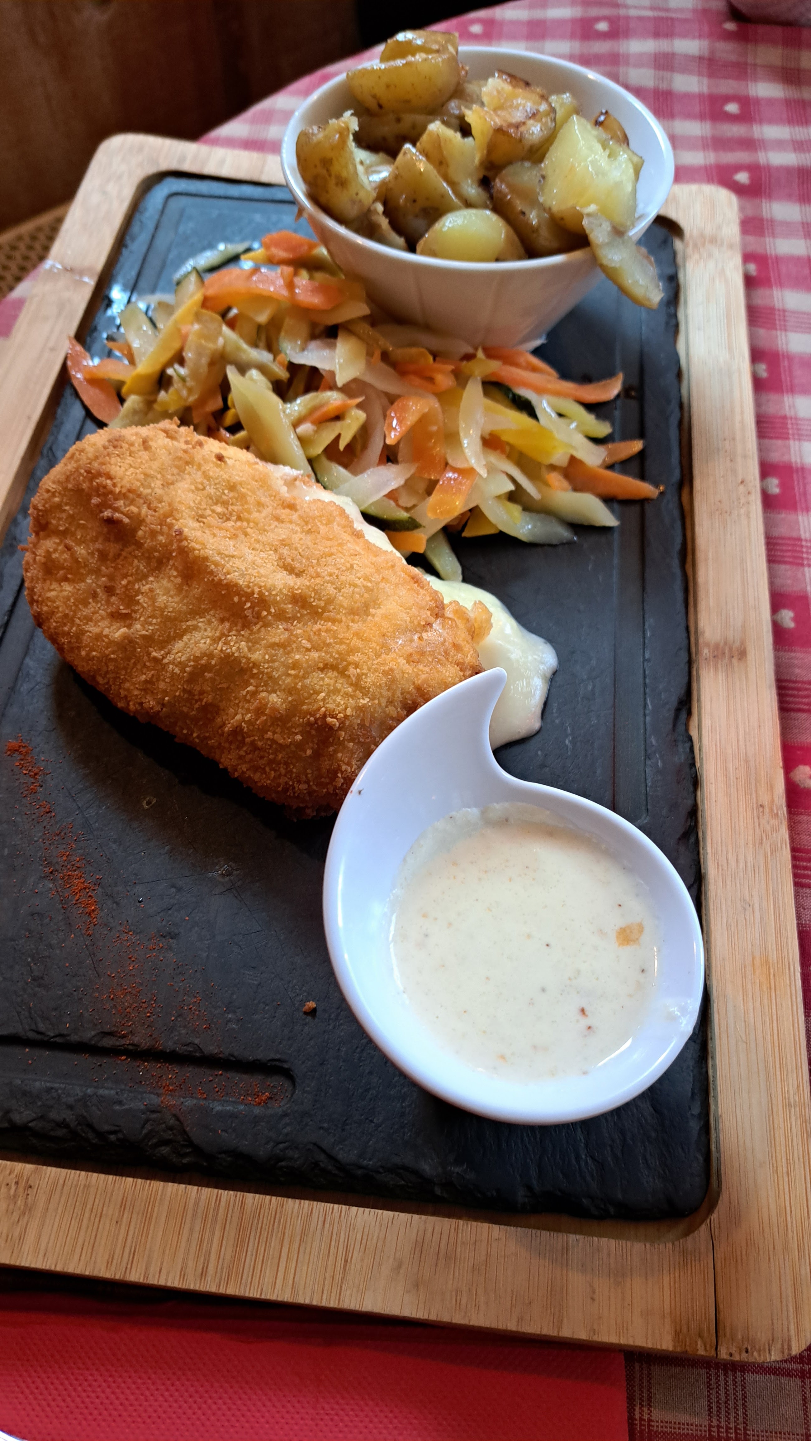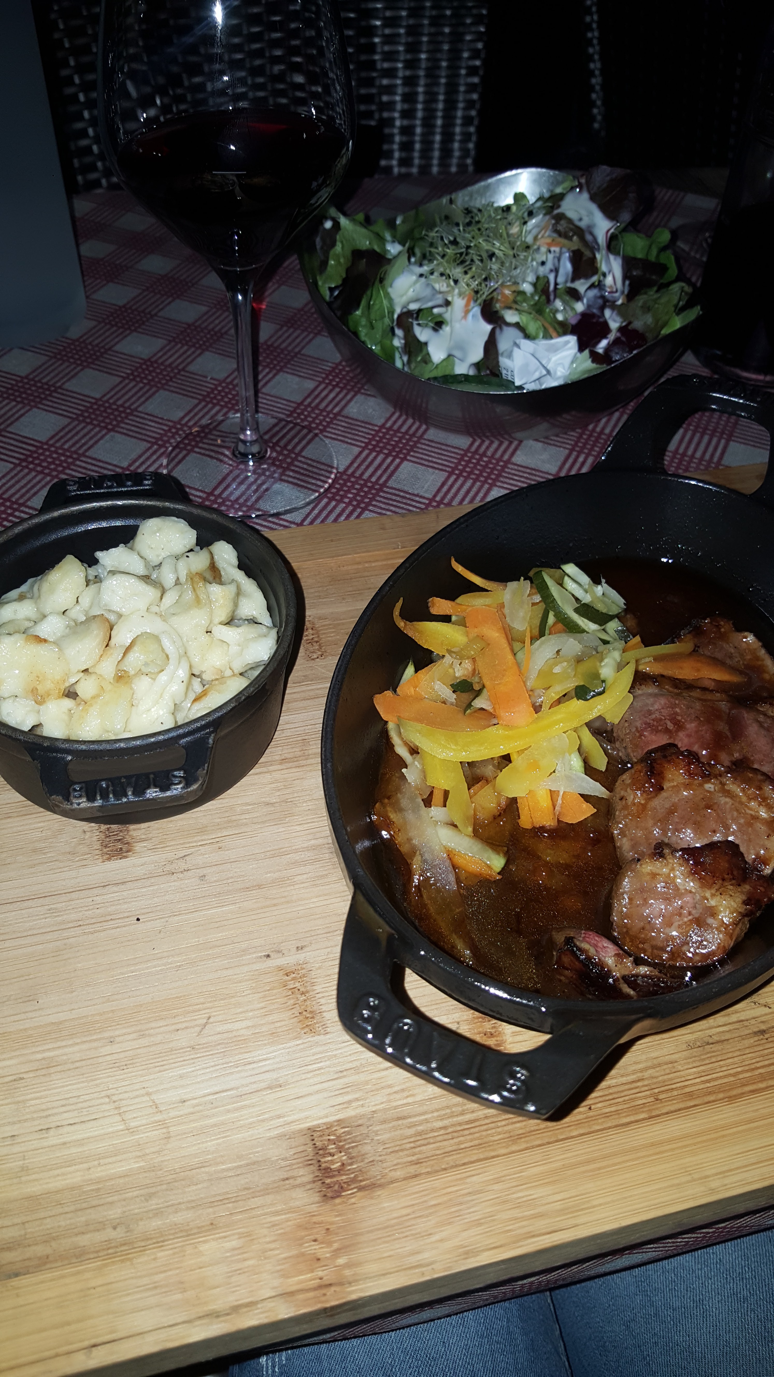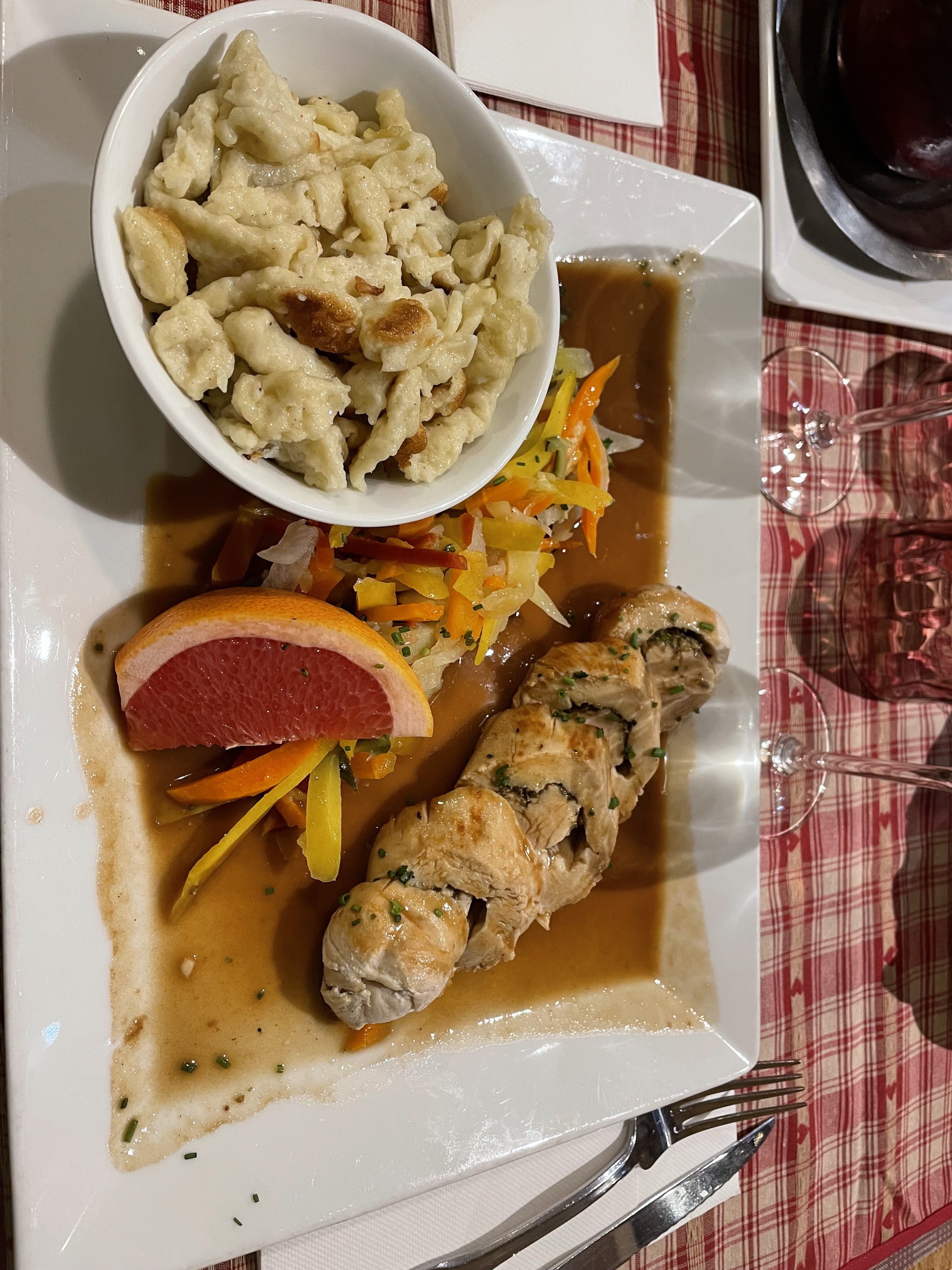 Tout a été parfait. Cassolette de Spätzle au munster et Fleischschnacka 👍. Super serveur (Hait-Savoyard, comme moi, il faut être chauvin 😂), très joviale, avec toujours un petit mot sympa et très professionnel, cela devient rare donc c’est à signalé. Le cadre du restaurant est très agréable.