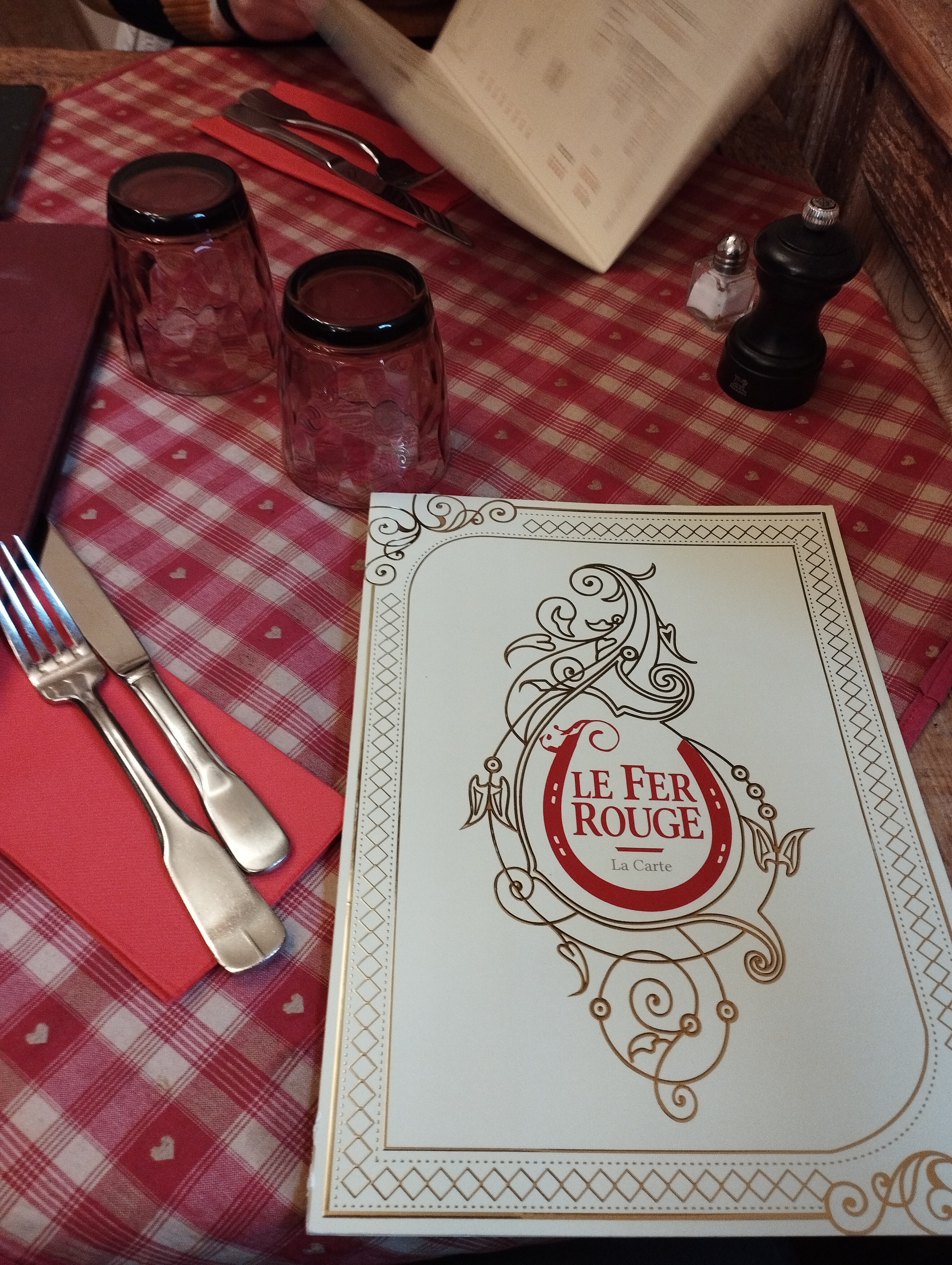 Cuisine authentique et régionale à souhait, de même que la décoration intérieure. Plats délicieux, de toute évidence il y a un Chef en cuisine. Parlons dessert : fin de repas trop souvent négligée dans lesrestaurants, mais au Fer rouge il y a une Cheffe pâtissière et cela se sent ! Ne partez pas sans avoir dégusté une tarte à la rhubarbe ou une forêt noire.