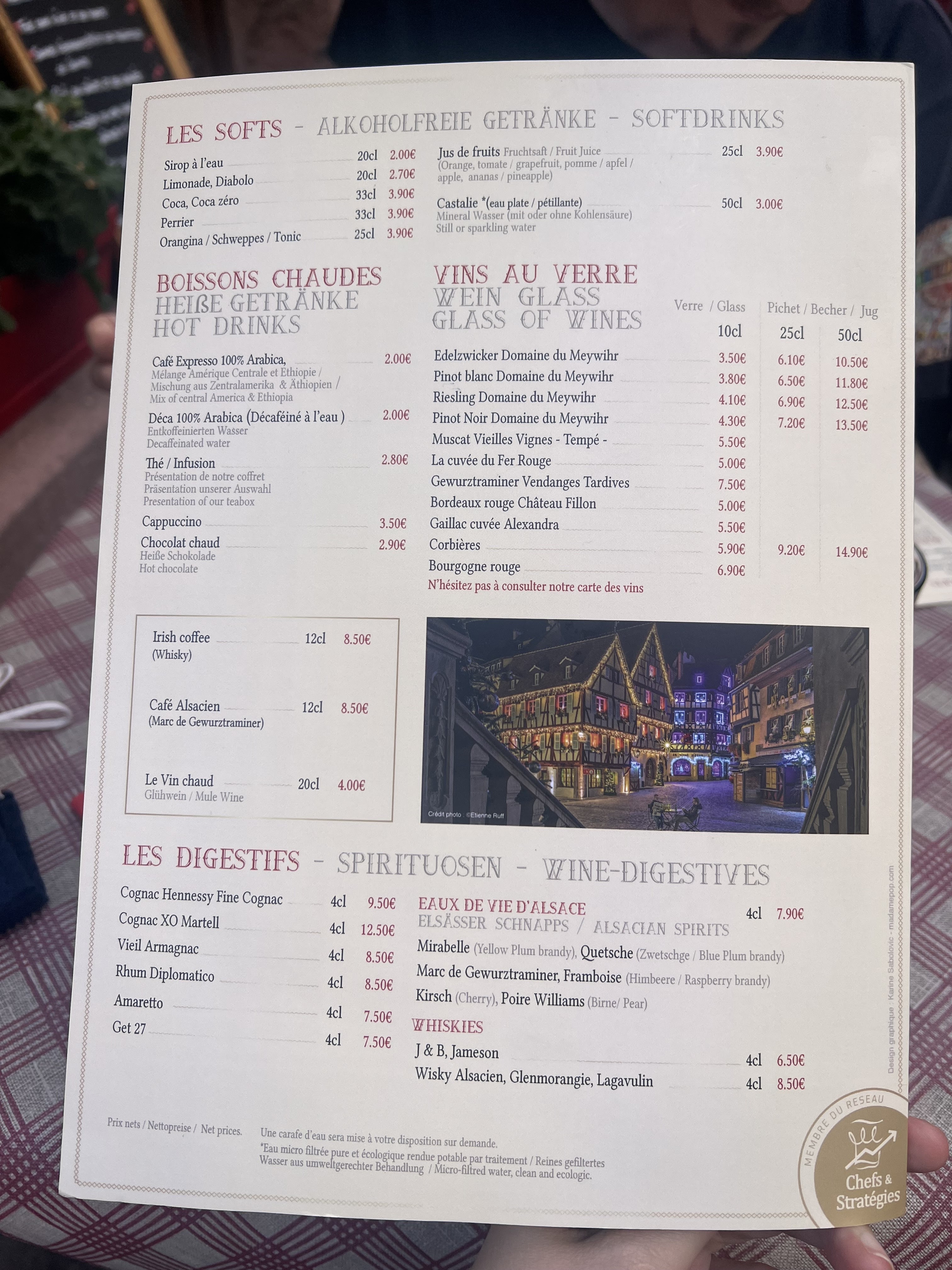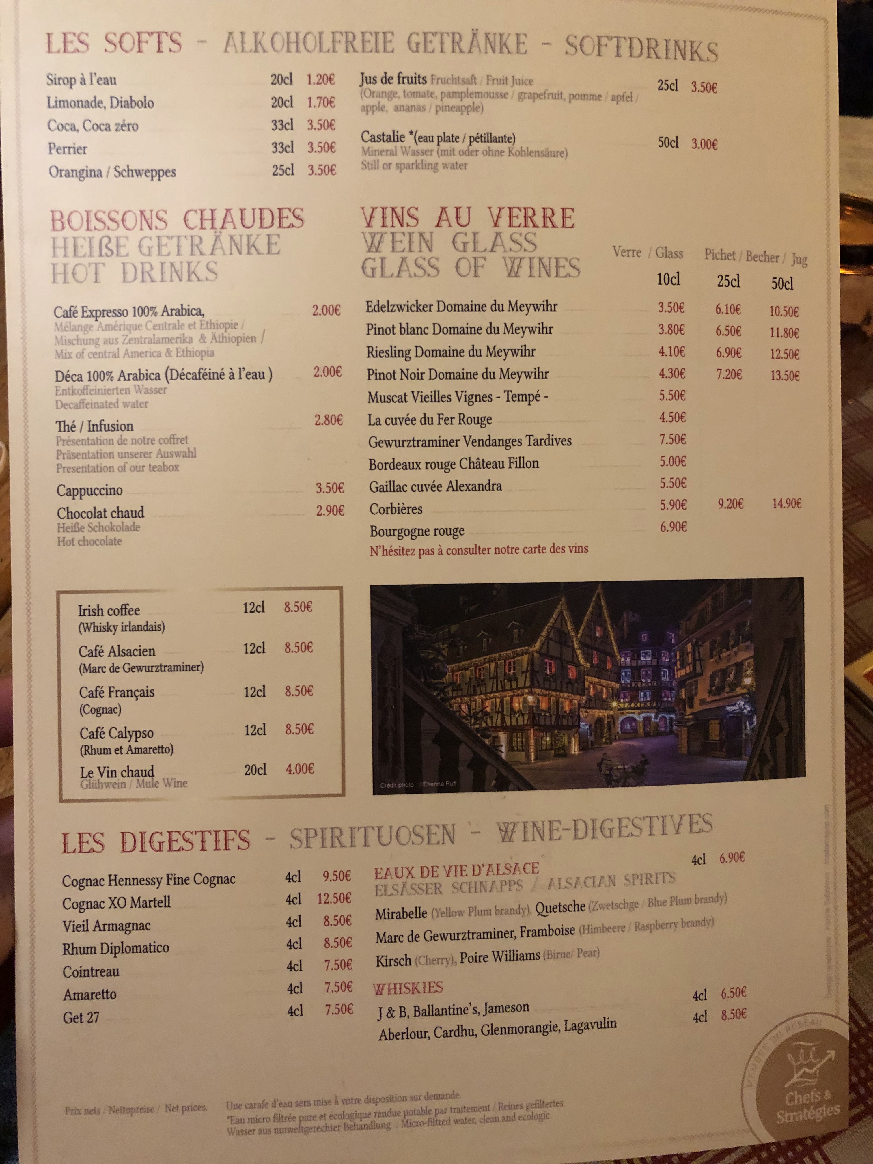 Rapport qualité prix c’est vraiment très très bon j’étais de visite à Colmar et je regrette pas 1 seul seconde les plats l’accueil malgré le monde tout le monde était super je recommande grandement