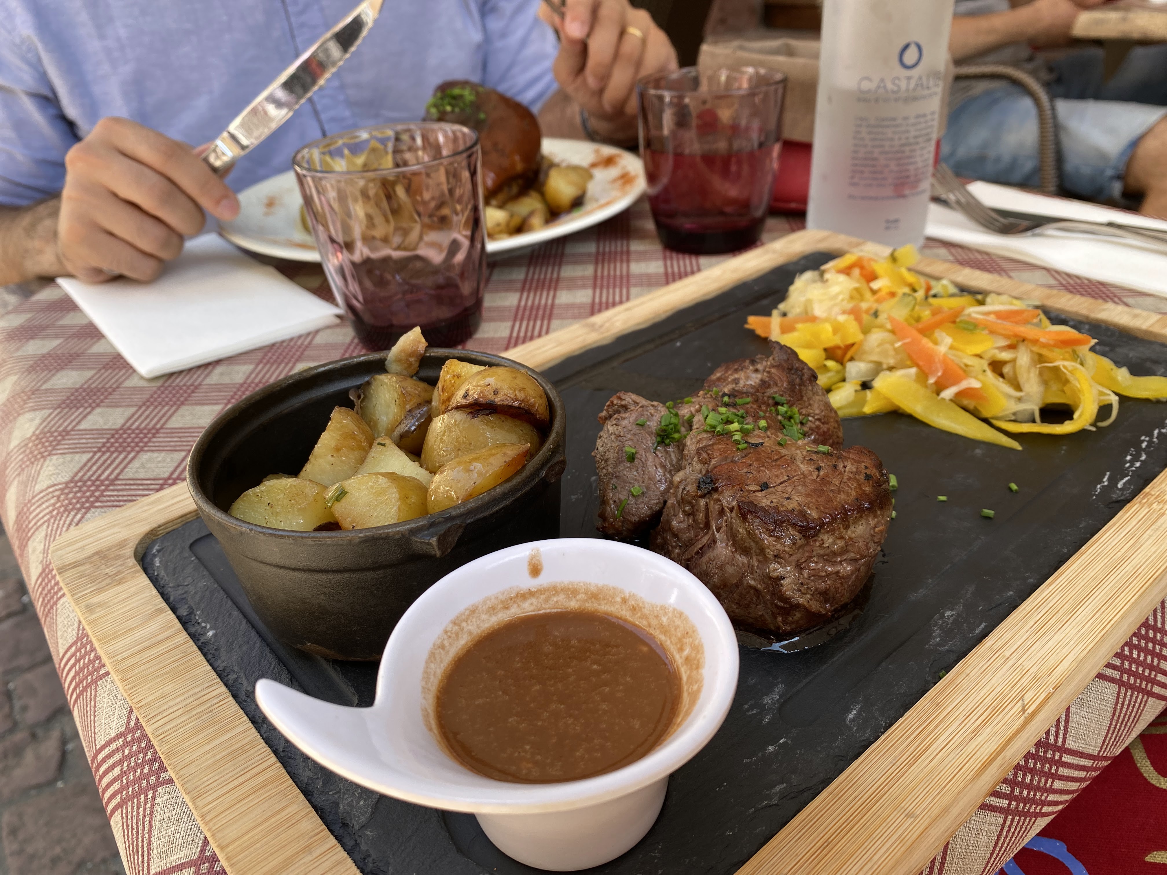 Nous avons très bien mangé. Le personnel est au petit soin et fait de son mieux pour vous satisfaire malgré la folie du service ( en plein marché de Noel). Félicitations à eux! La viande était très tendre et le pain perdu une tuerie!