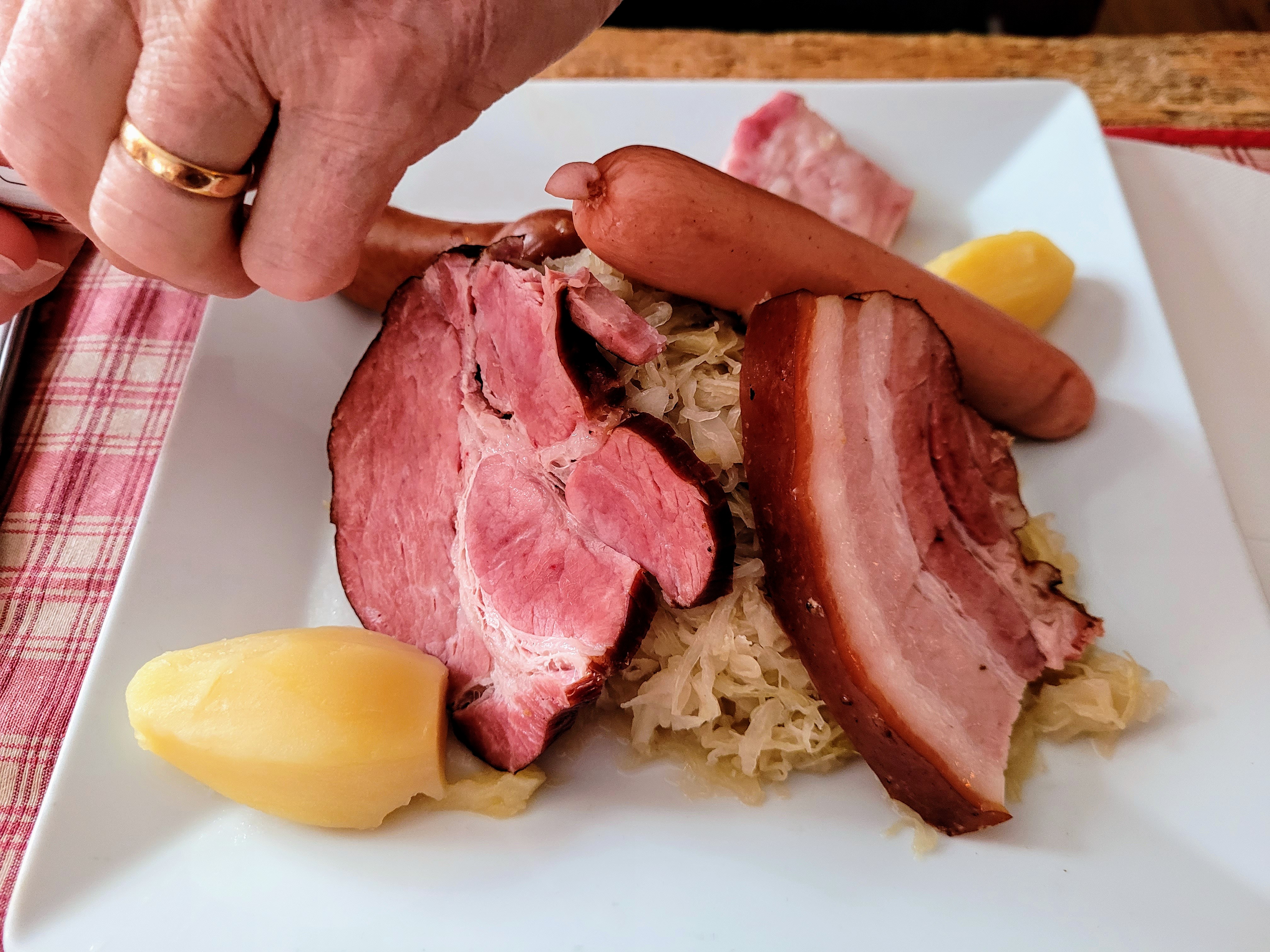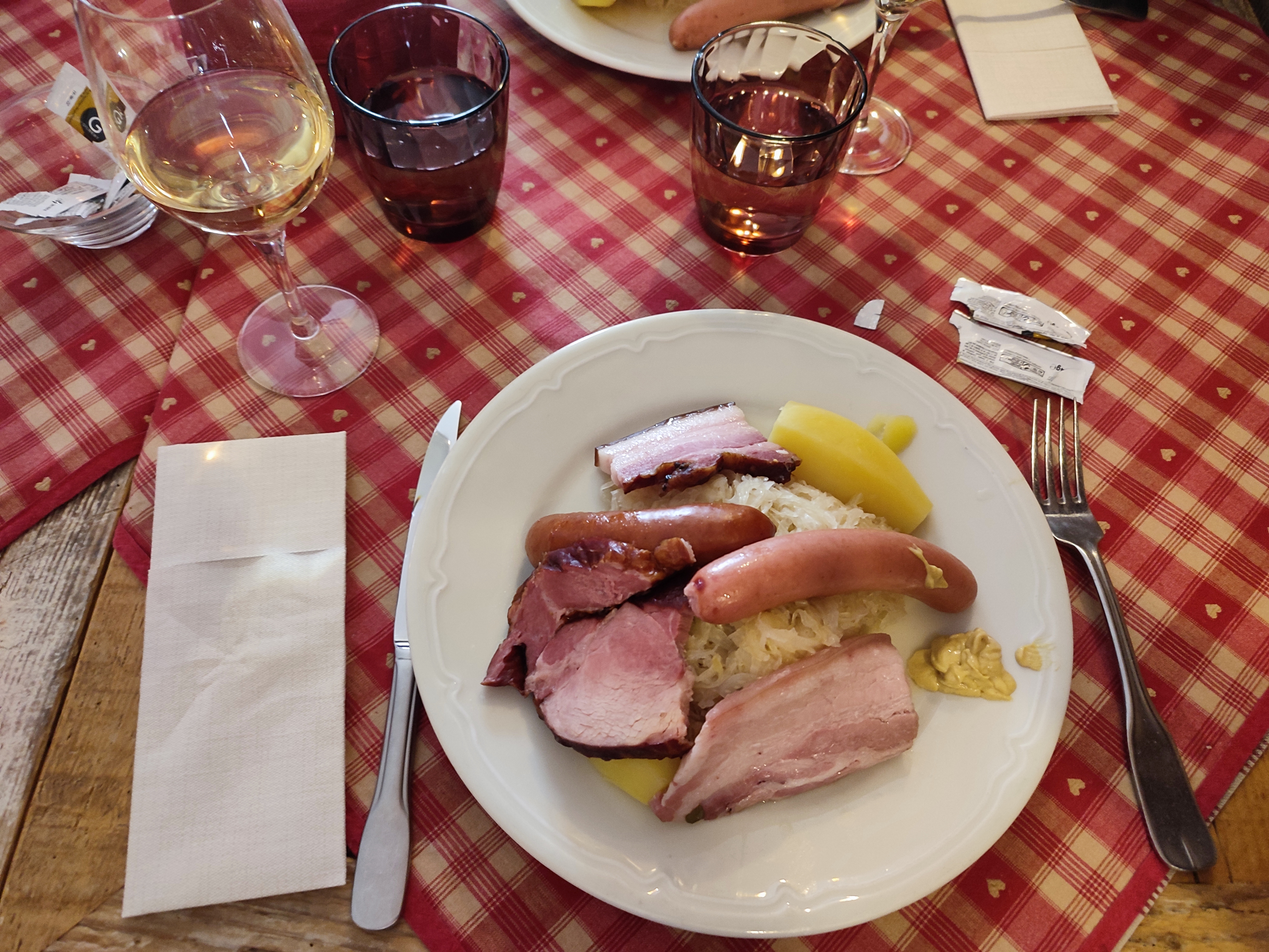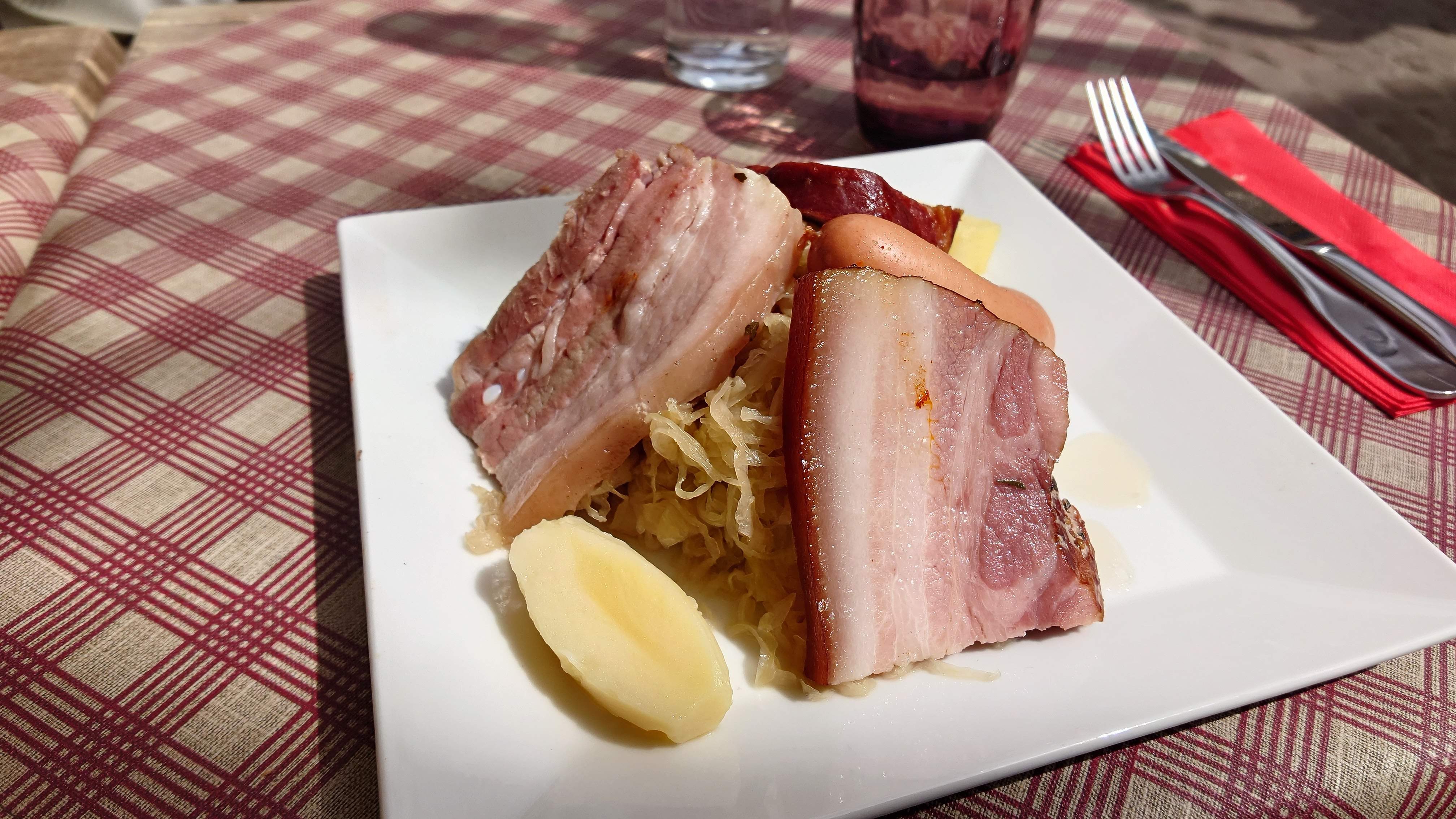 Excellent moment passé le midi dans ce restaurant. Certes il faut faire la queue en période touristique, mais nous n'avons pas été déçus ! Tous les plats goûtés été très bon : jambonneau sur choucroute, jambonneau braisé au miel, cocote de spaetzles gratinés au munster ou encore les petites ravioles de légumes (pour les plus sages..) Un excellent pain perdu en dessert, très bien équilibré en sucre avec une compotée de quetsches ! Également mention spéciale pour le très beau café gourmand. On ajoute à cela un service très agréable, et ça fait 5 étoiles sans grande hésitation. Bravo et bonne continuation à toute l'équipe de ce restaurant.