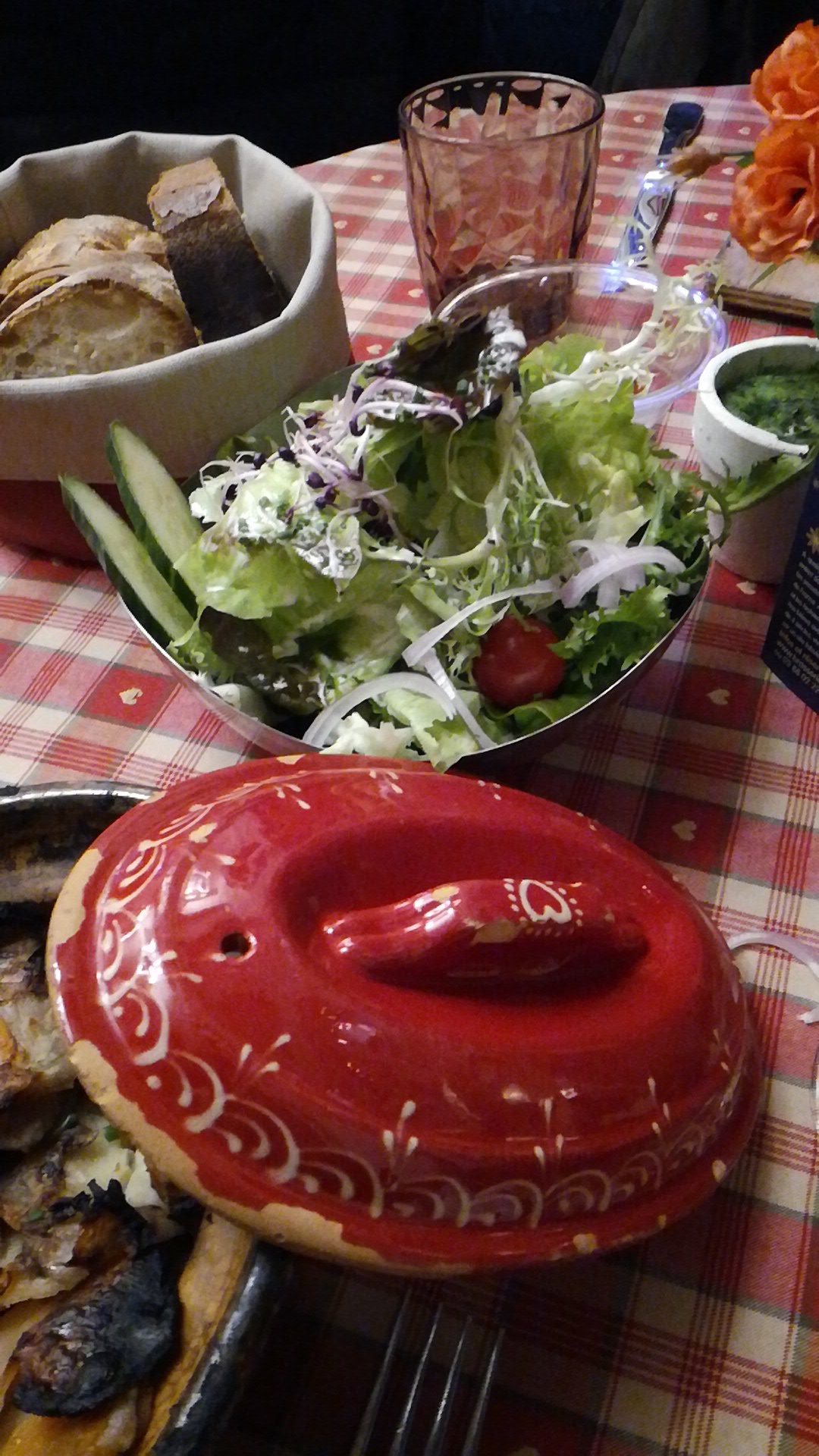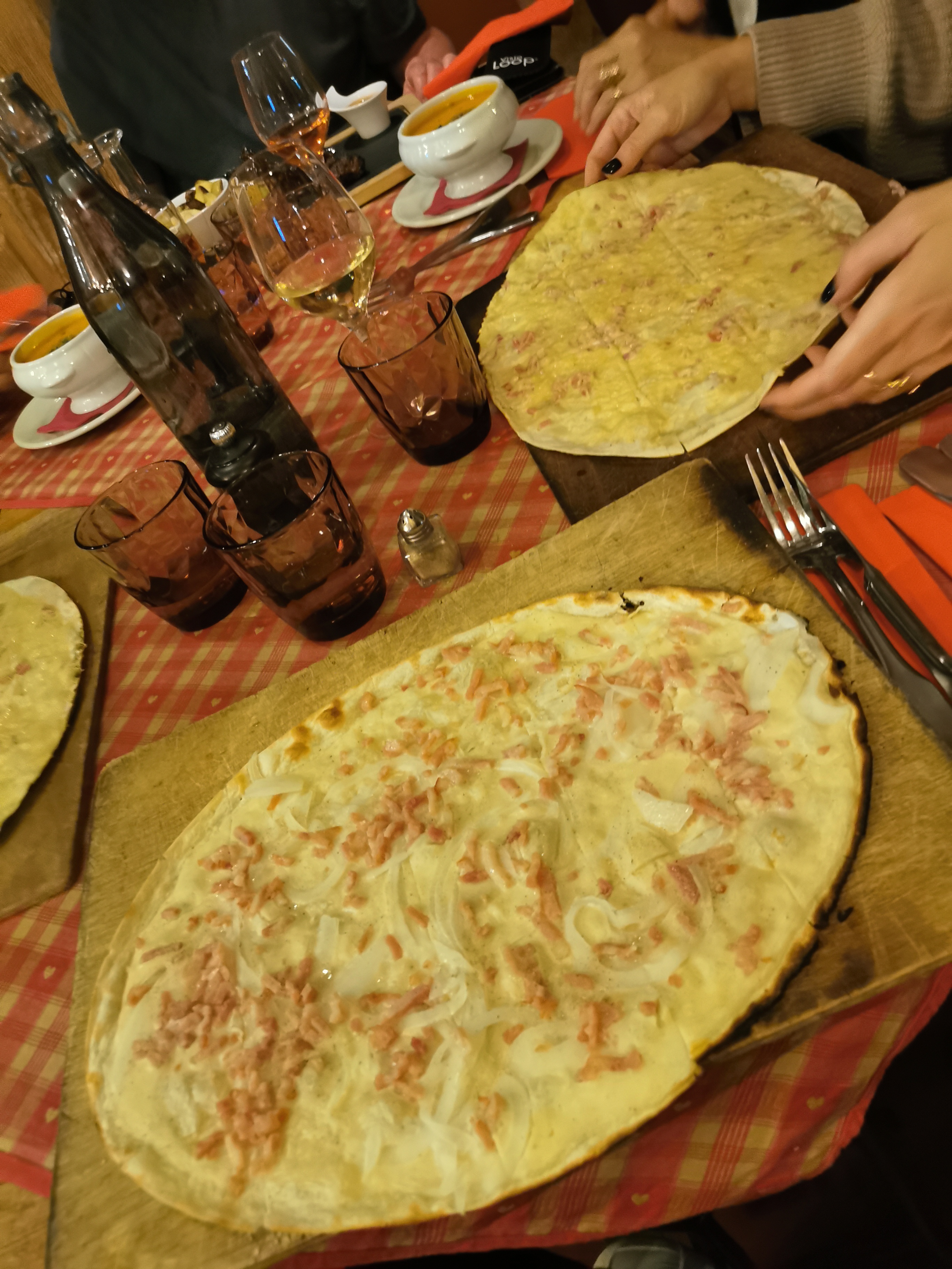 Joli restaurant et accueil très chaleureux. Les tartes flambées étaient assez bonnes. Avec 2 grands verres de vin et 2 tartes flambées, nous en avons eu pour 35€ ce qui me semble raisonnable dans un joli cadre comme ça. Merci