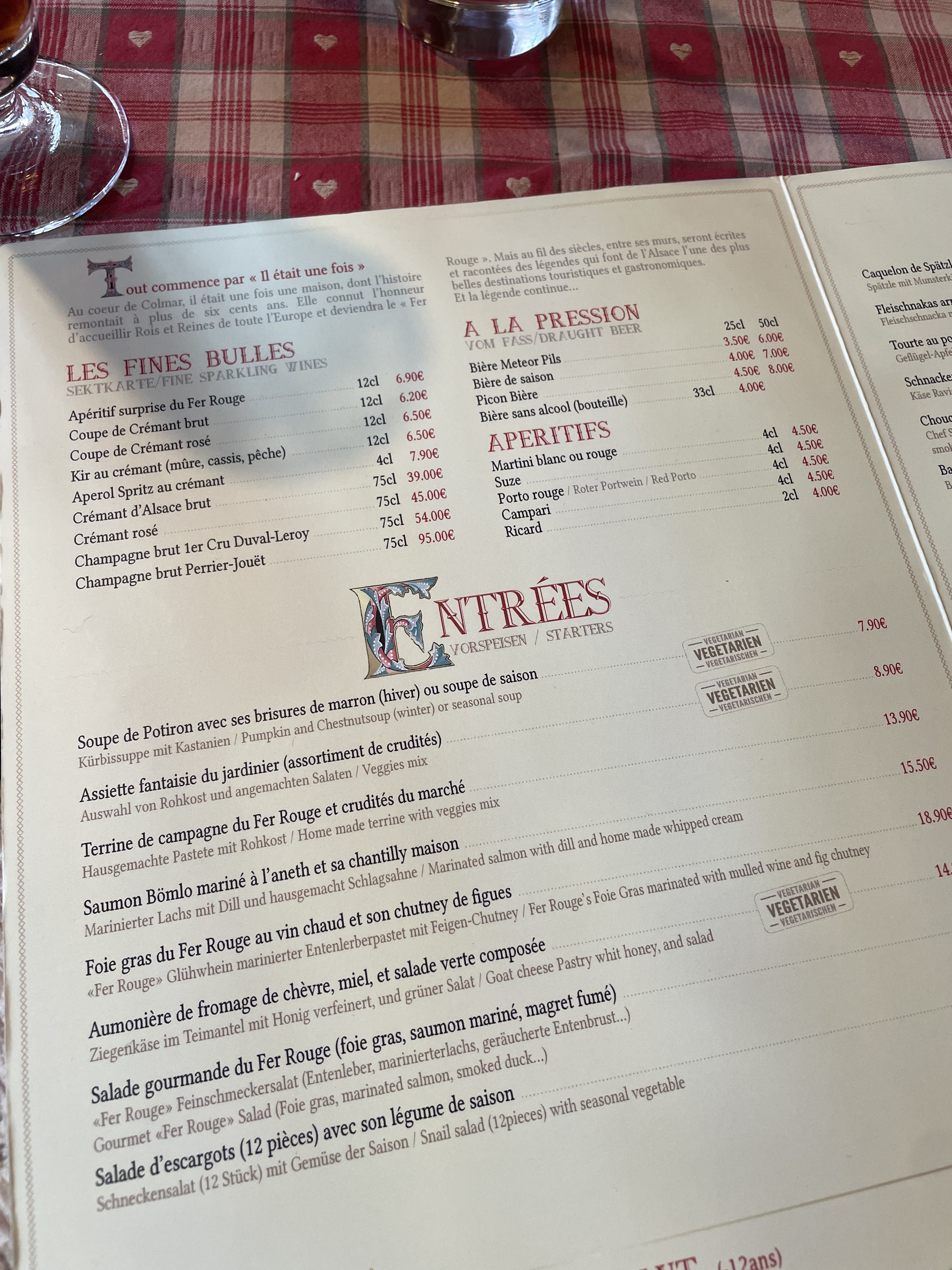 Le Fer Rouge est une institution colmarienne. La cuisine y est bonne bien que pas toujours faite maison mais c’est normal parfois. Les plats sont vraiment bons, l’accueil est chaleureux et le service rapide. À ne pas rater !