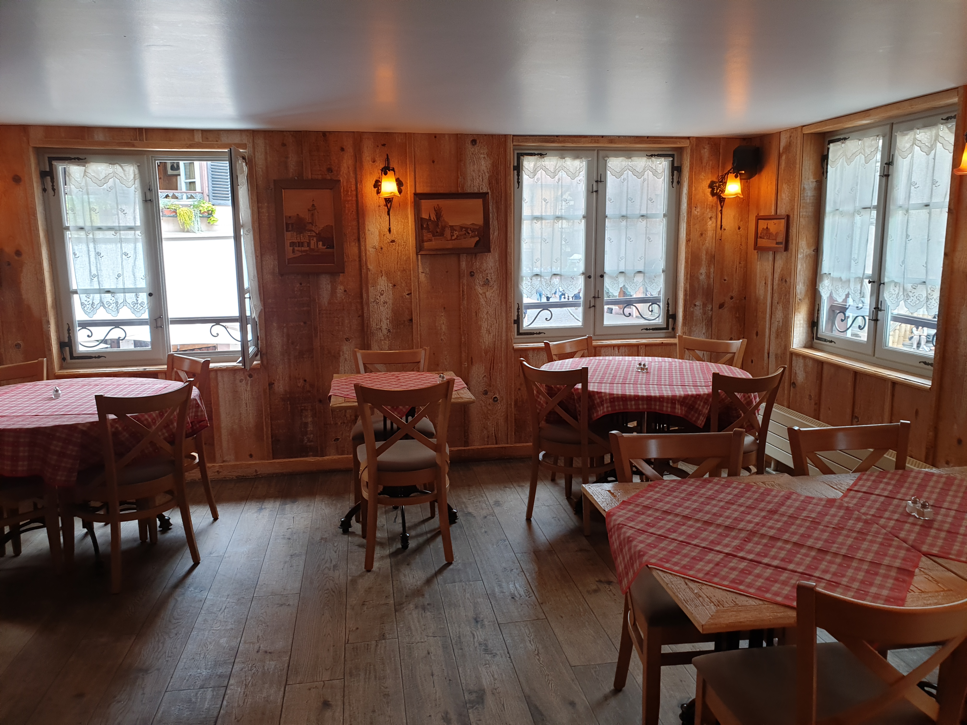 Quel bon repas! Acceuil très chaleureux, le serveur Nathan très gentil et prêt à nous conseiller de quoi manger/le choix de vin et trés serviable! Nous avons mangé le jambonneau et le caquelon de Spatzles, c'etait super bon! En dessert la mousse au chocolat, une vrai mousse, délicieuse! Un service très rapide et efficace.