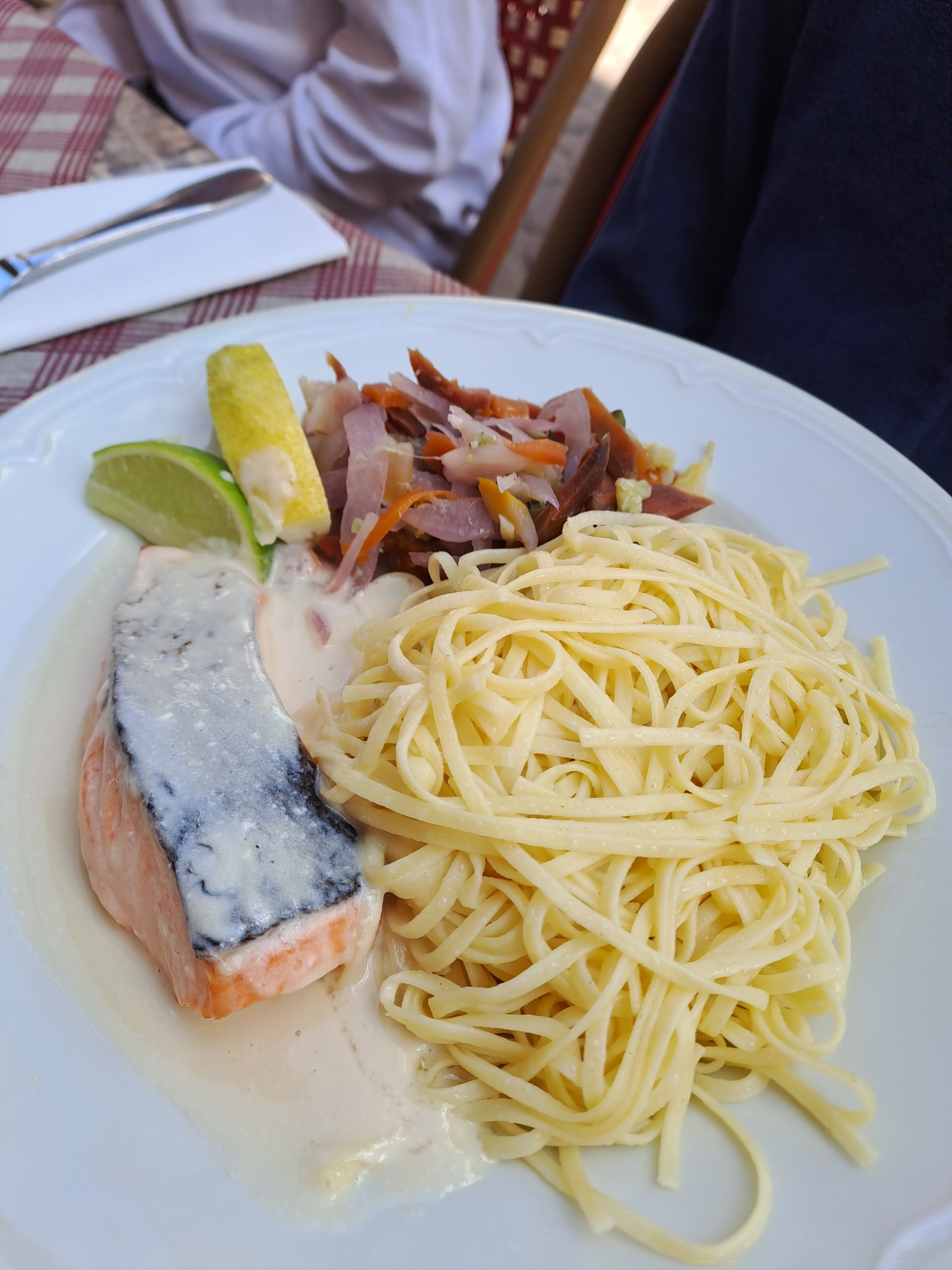 La cuisine est superbe et les quantités sont très très généreuses.. mais le service a été très long. Le serveur était tout seul sur notre côté le pauvre.. les autres serveurs, même quand ils n'étaient pas occupés, refusaient de s'occuper de nous et stipuler que c'était à ce serveur de nous servir. Je ne comprends pas bien l'entraide :/ Mais en tout cas cela reste un bon restaurant avec de la très bonne cuisine !
