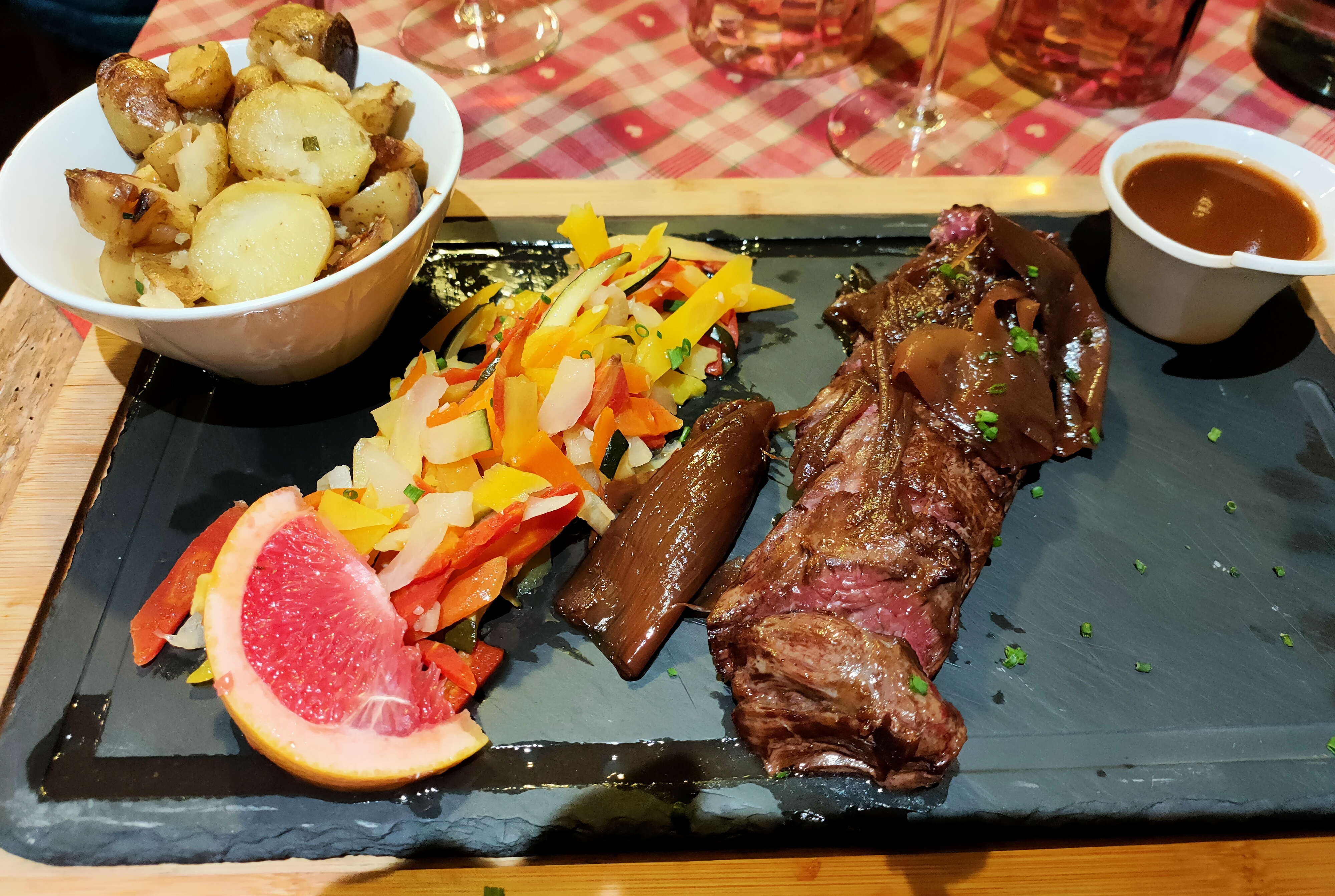 Le repas était excellent, avec des produits de qualité, mais malheureusement, le service n’a pas été à la hauteur. Bien que nous ayons pu entrer sans trop d'attente surtout en période du marché de Noël, une fois installés, l'attente pour être servis a été interminable. Nous étions au premier étage et la serveuse semblait un peu perdue, ce qui a contribué à un service particulièrement lent. Bien que nous n'étions que deux personnes, il semble que notre table ait été oubliée, car nos plats sont arrivés alors que des clients arrivés après nous commandaient déjà leurs desserts. De plus, au moment de régler, la serveuse a préféré terminer sa mise en place pour le lendemain et rigoler avec les collègues plutôt que de nous accorder une attention rapide.