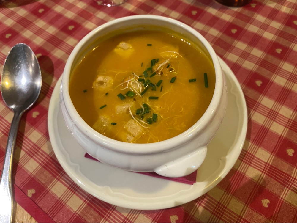 Restaurant très prisé. 3 étages, très vite complet, je recommande de réservé ou de venir en avance . Les prix ne sont pas excessifs, je ne pense pas que ce soit la meilleure de Colmar mais ça vaut le détour pour les curieux. Superbe soupes au potiron avec sa brisure de marron et un verre de vin blanc Gewurztraminer vendanges tardives à tomber par terre. En plat principal un Baekeoffe. Point négatif, cet établissement est loin d'être accessible aux PMR. Toilettes tout en haut au 3 ème étages par escaliers.