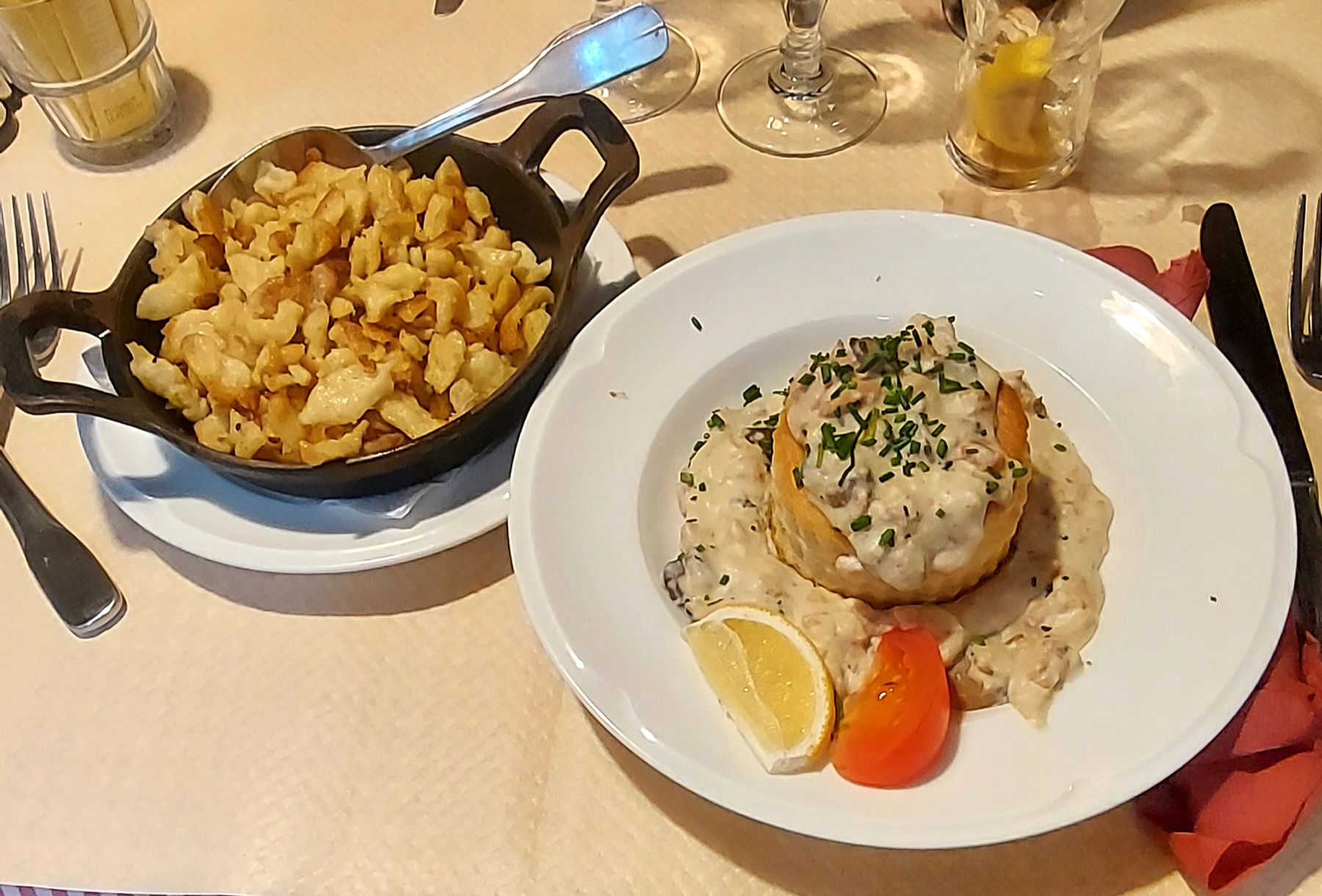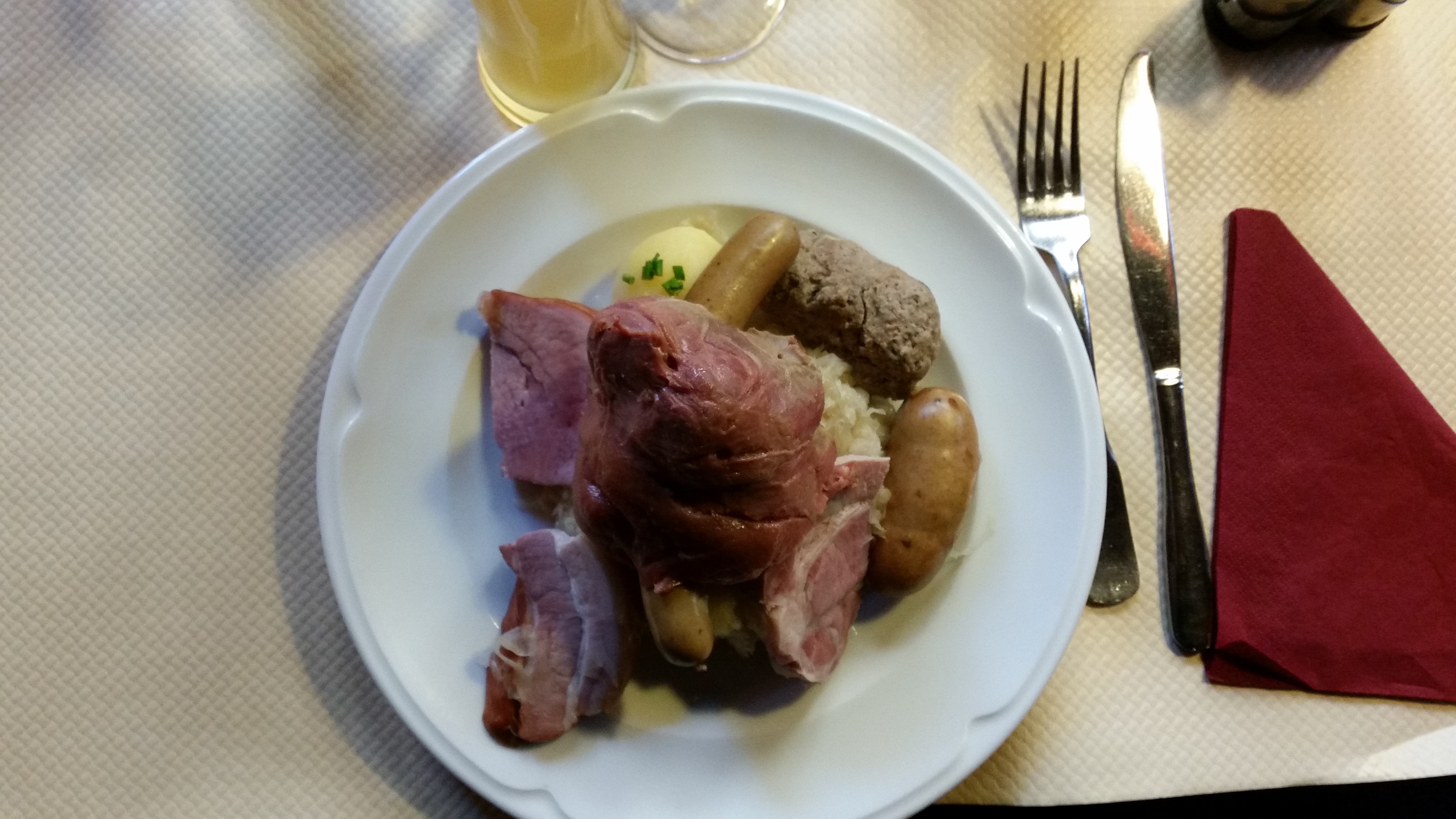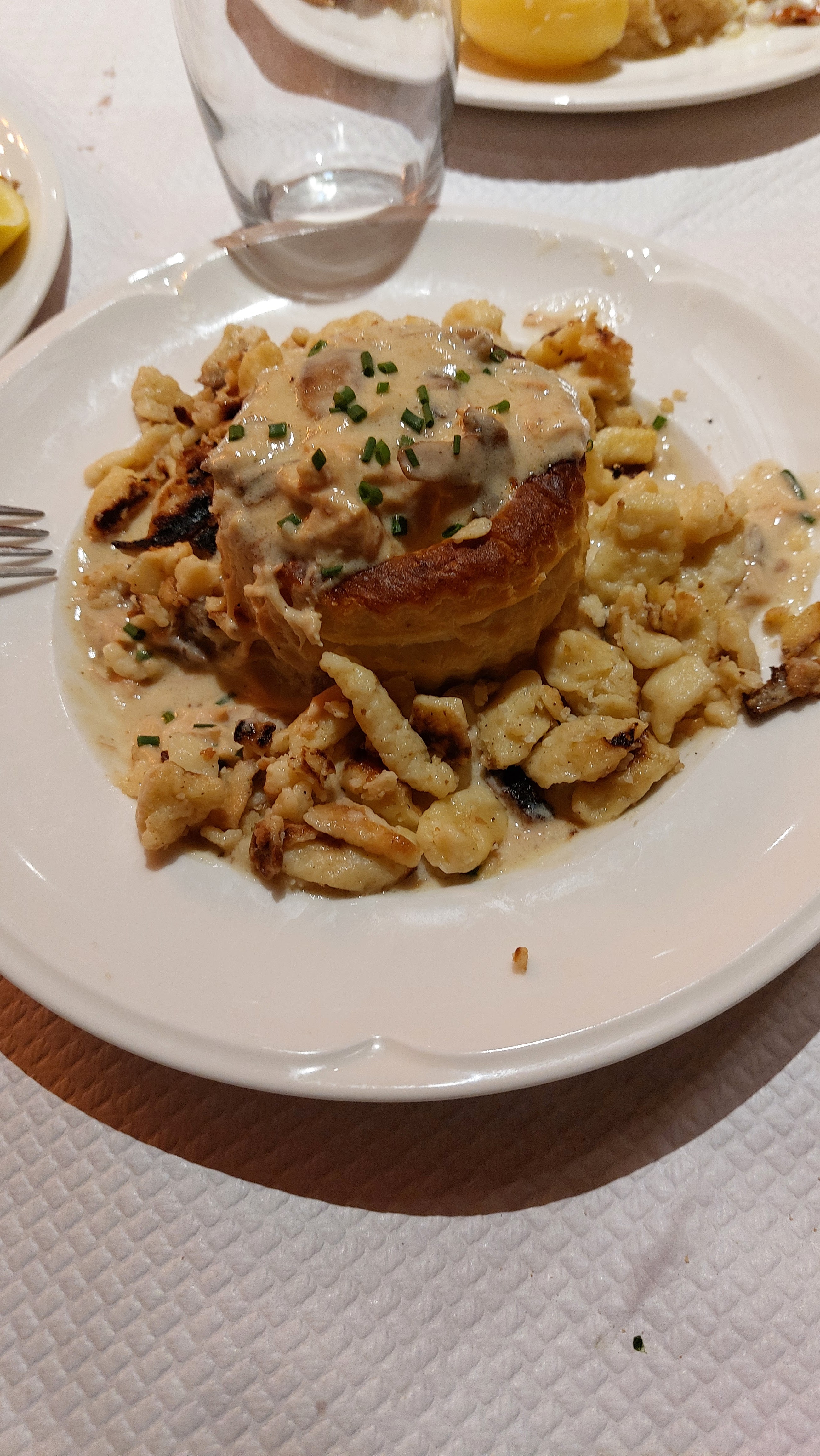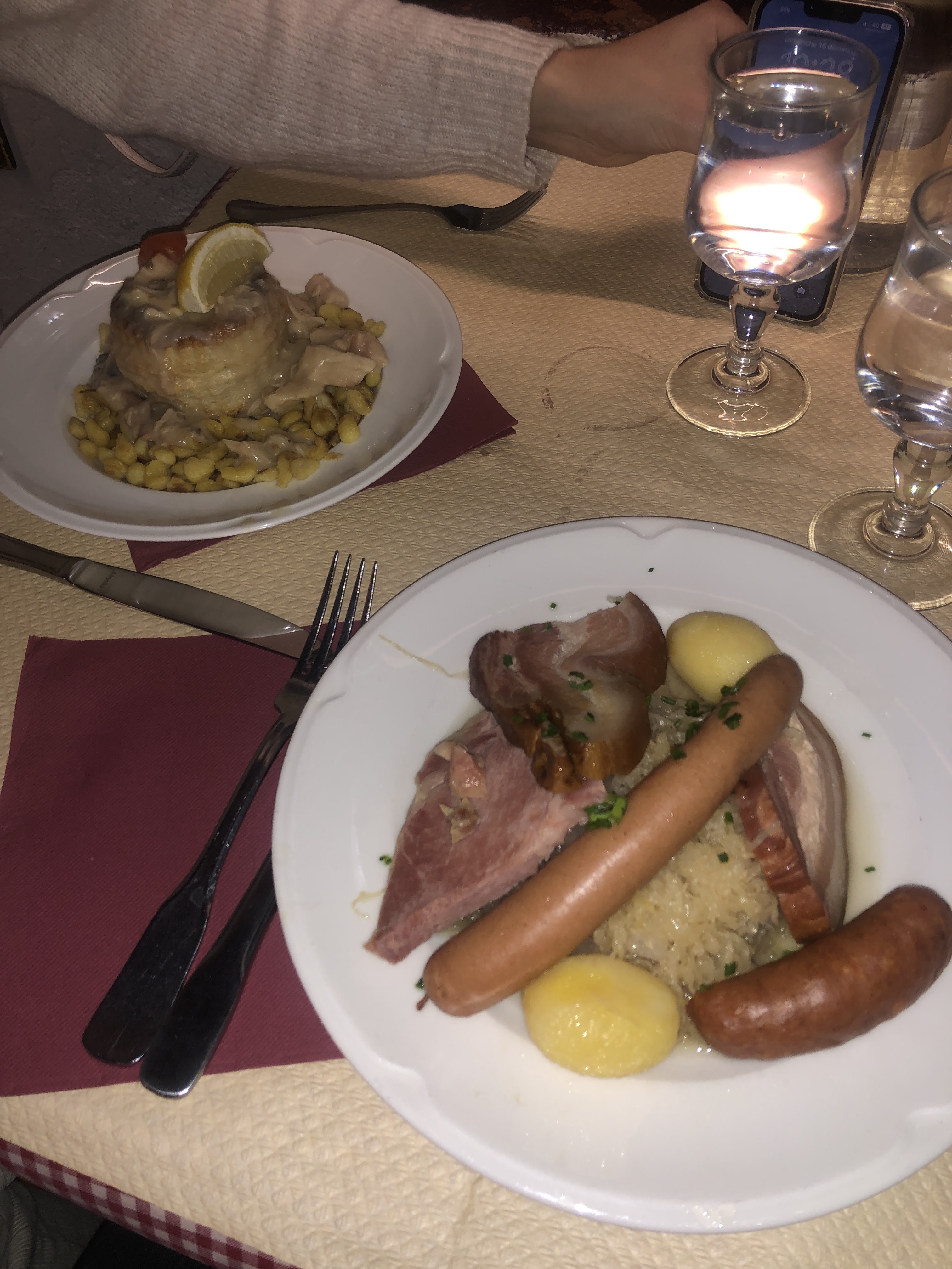 2 bouchées à la reine une choucroute et des fleichnakas... 15 minutes plus tard no comment^^ ok c'est très proche de la cathédrale de Strasbourg donc la fréquentation et les prix sont en conséquence mais sa vaut le coup^^