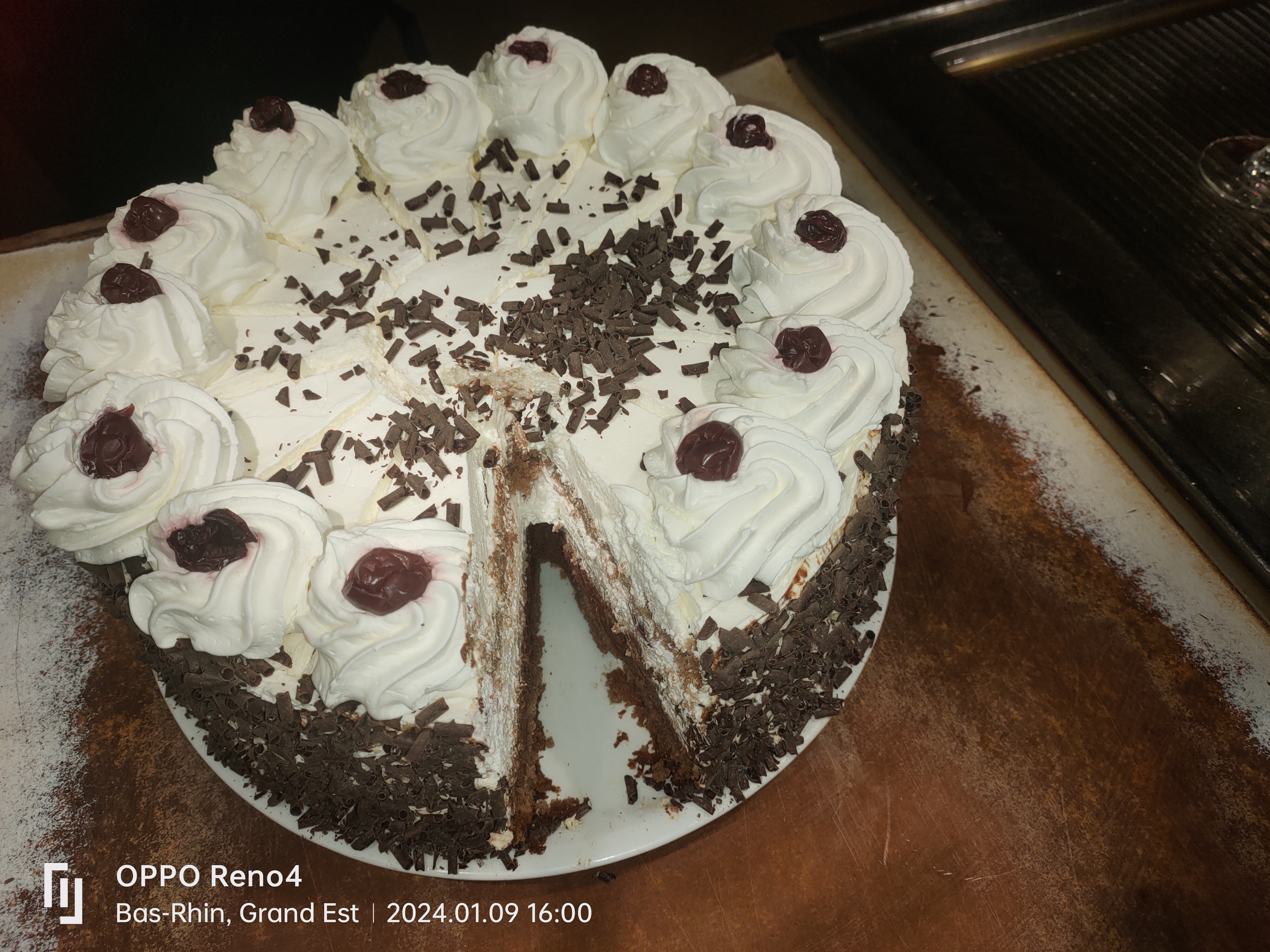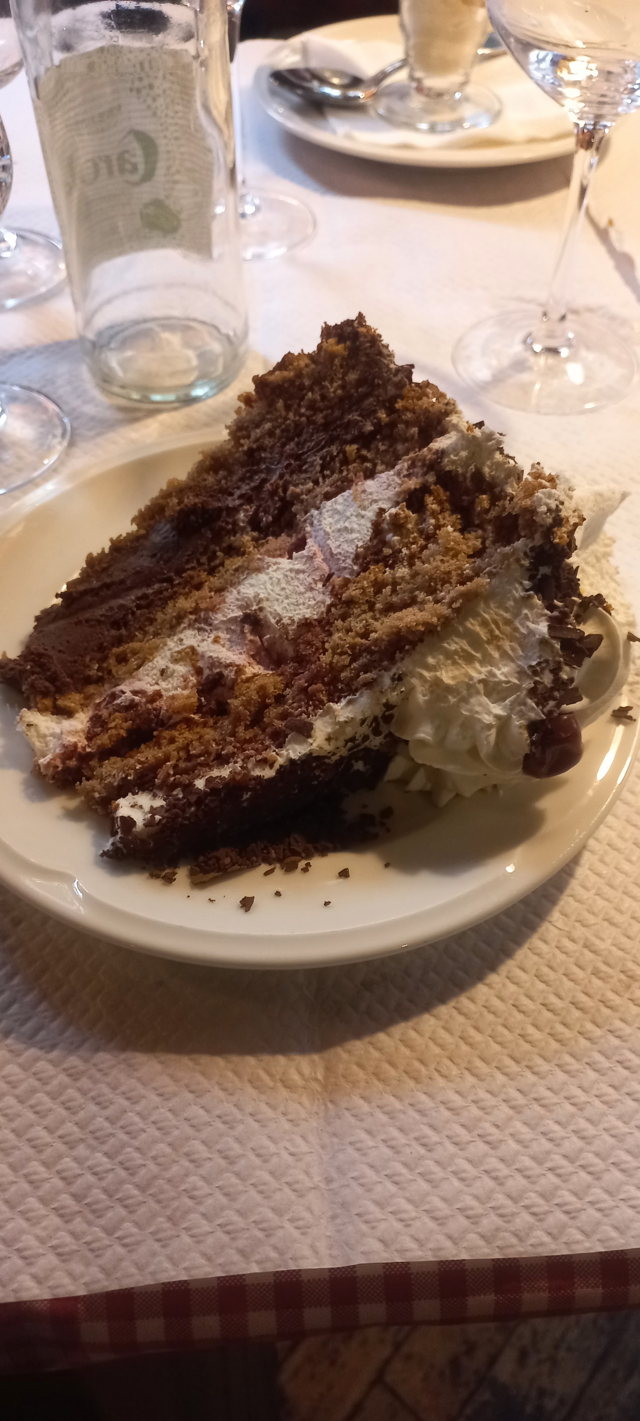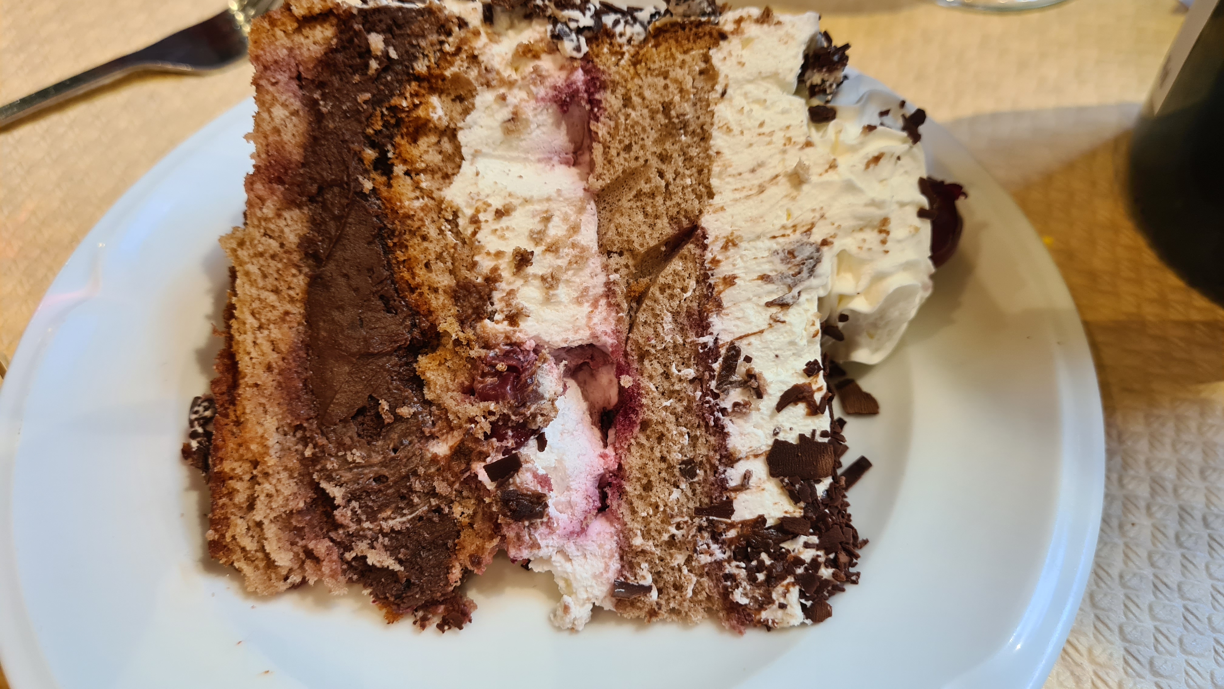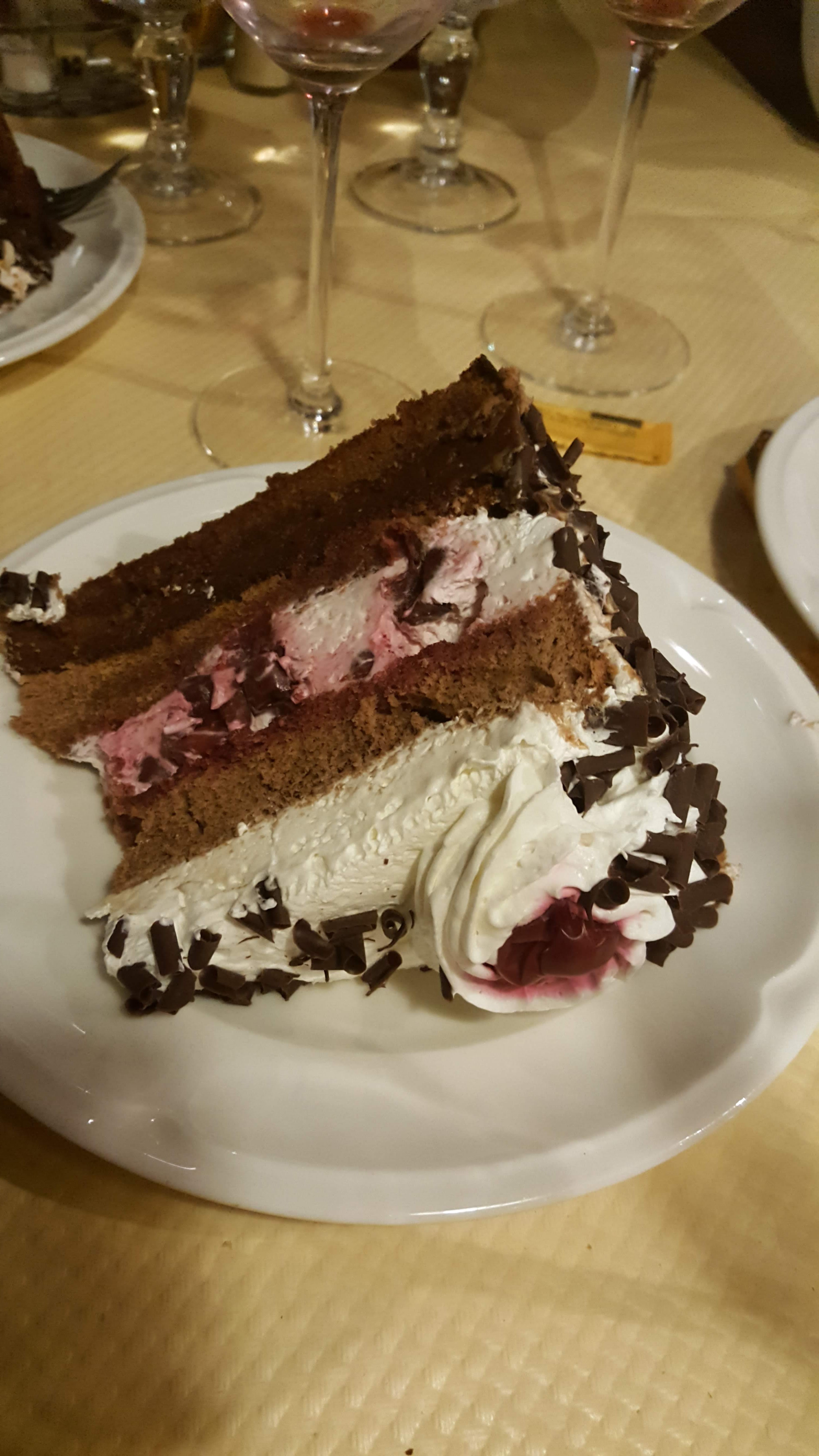 Olalala ça c’est un restaurant ! J’ai pris que le dessert en photo tellement que j’étais absorbé par les plats et comme on peut le voir c’est un part de forêt noire. Les prix sont cohérents au vu de l’emplacement, de la qualité et de la quantité. Une vraie forêt noire, classique mais si bonne. Je recommande cet établissement si vous voulez manger des bons plats traditionnels alsaciens !