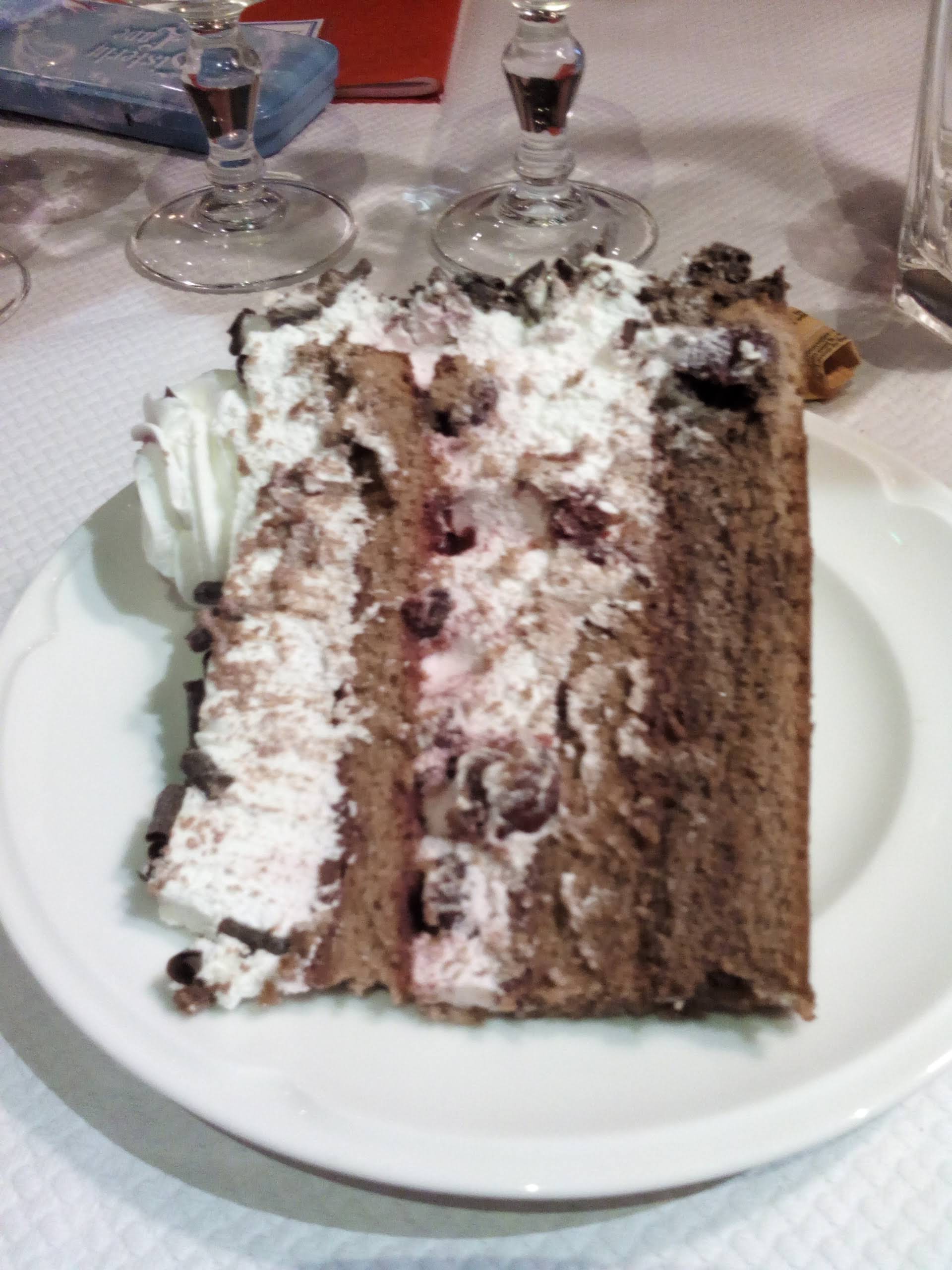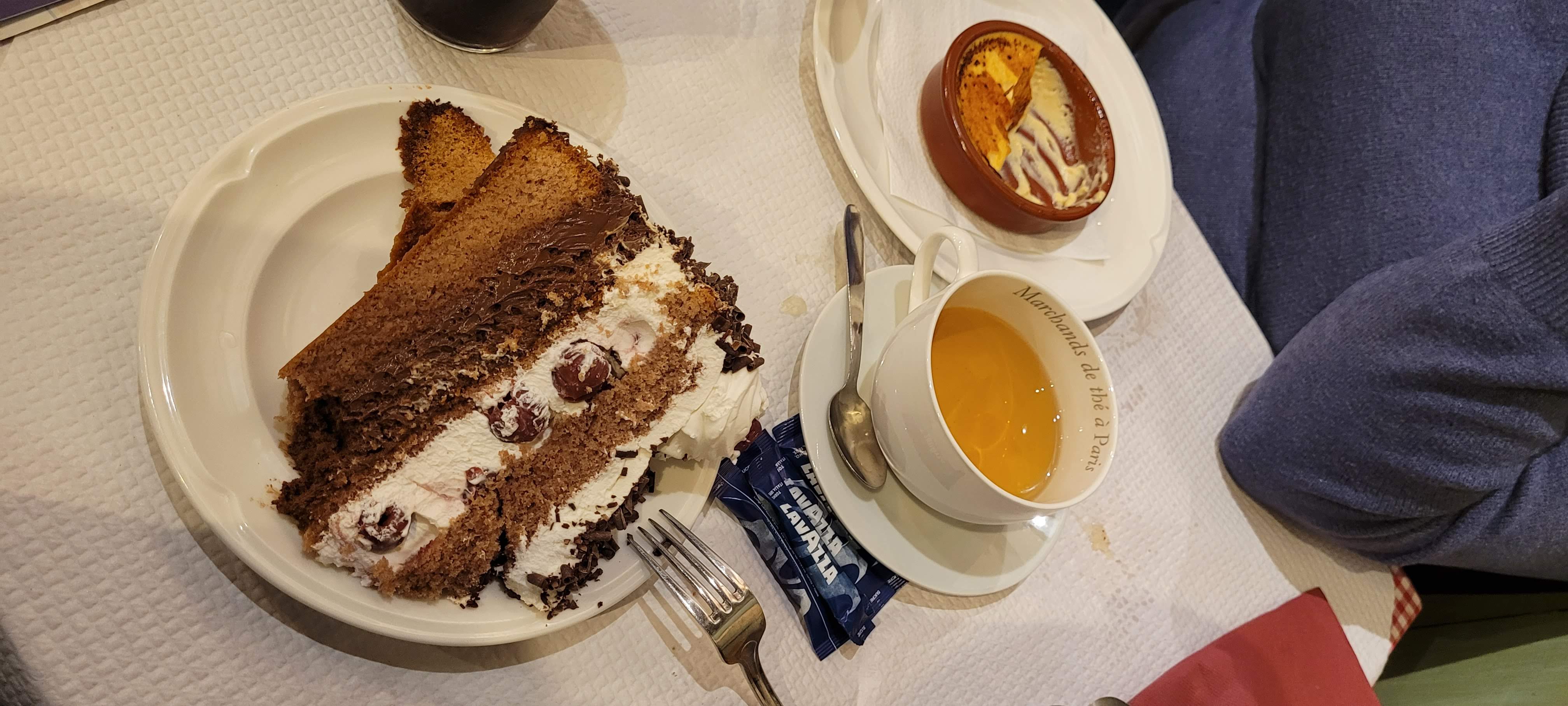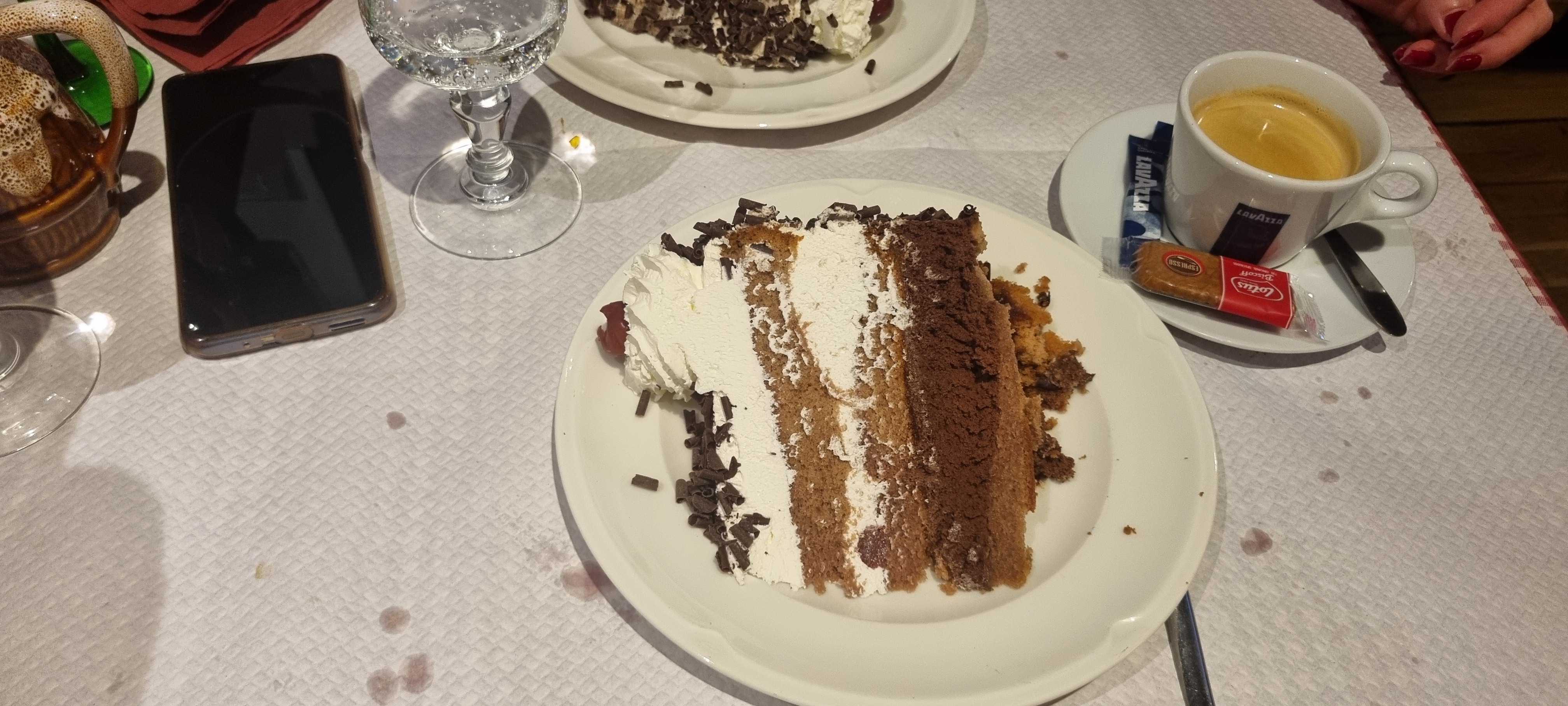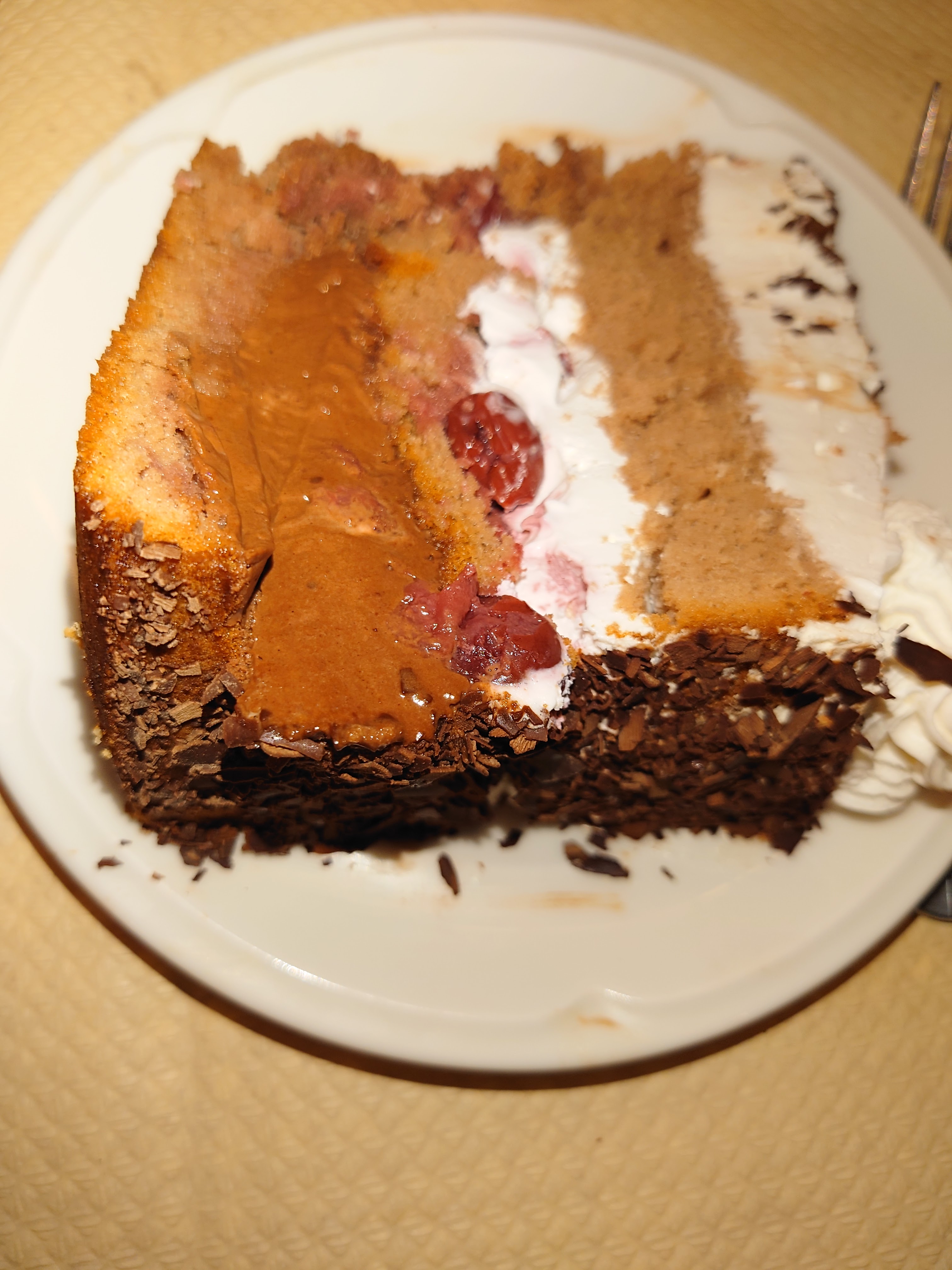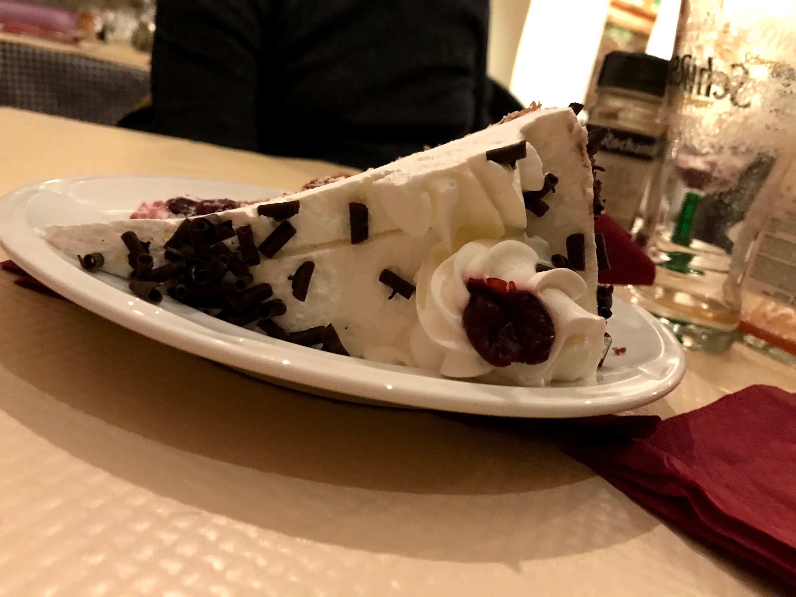 Olalala ça c’est un restaurant ! J’ai pris que le dessert en photo tellement que j’étais absorbé par les plats et comme on peut le voir c’est un part de forêt noire. Les prix sont cohérents au vu de l’emplacement, de la qualité et de la quantité. Une vraie forêt noire, classique mais si bonne. Je recommande cet établissement si vous voulez manger des bons plats traditionnels alsaciens !