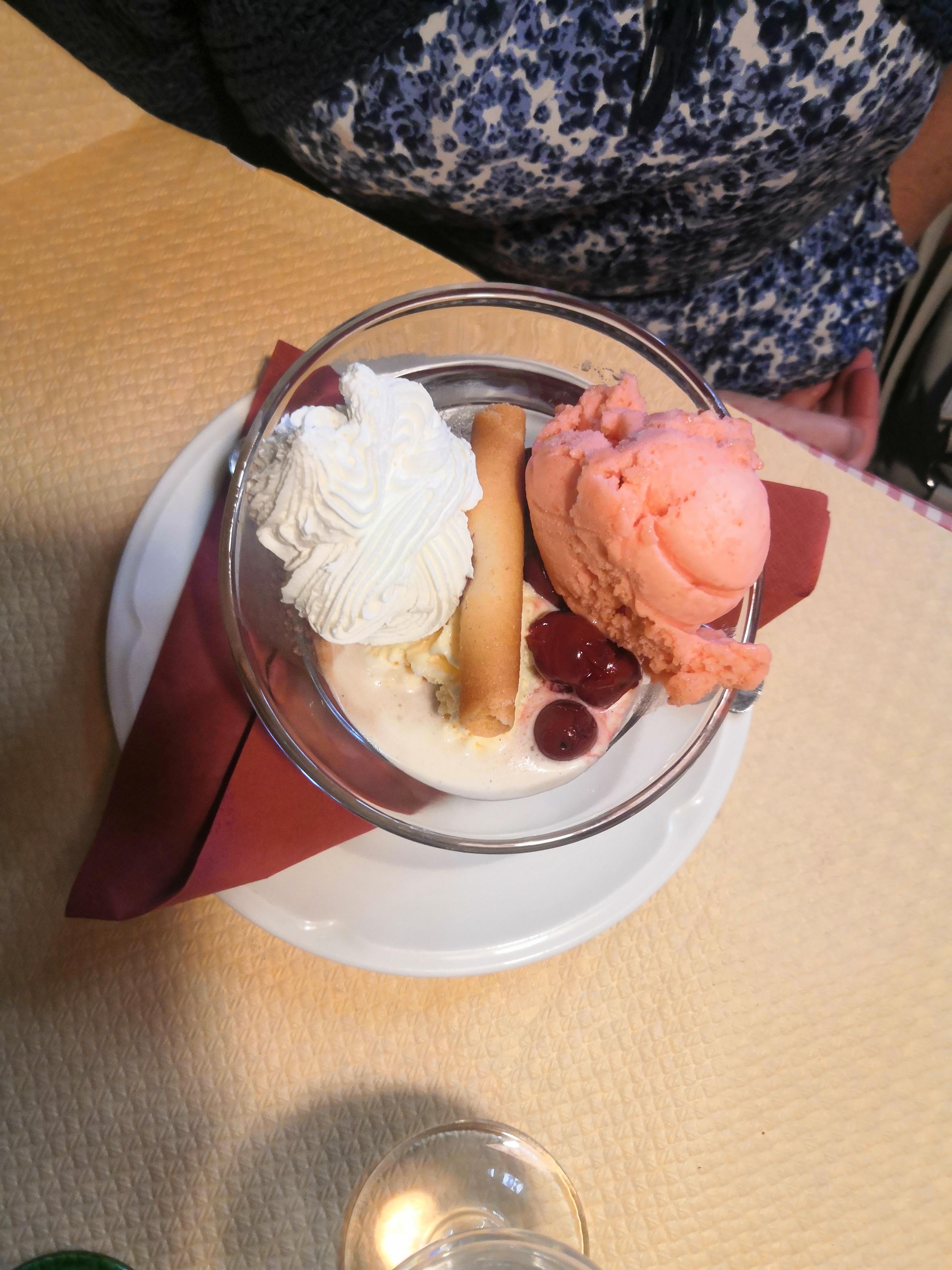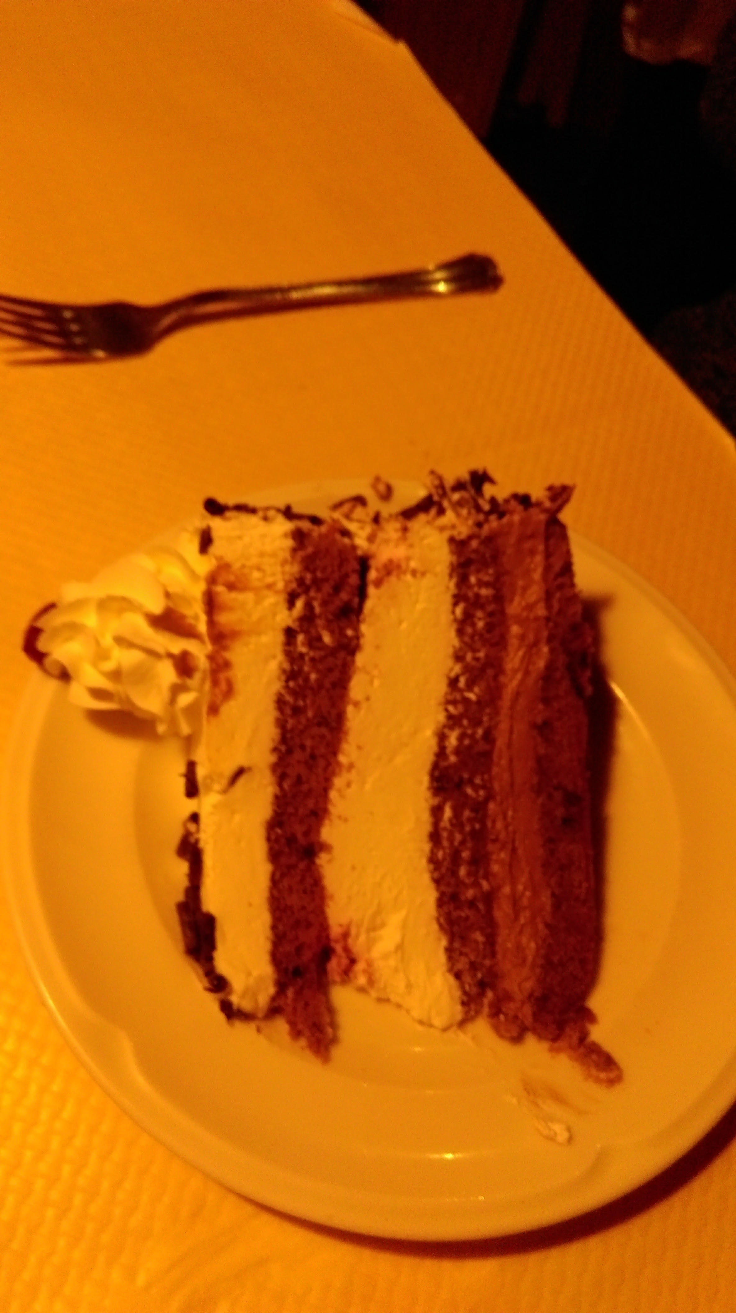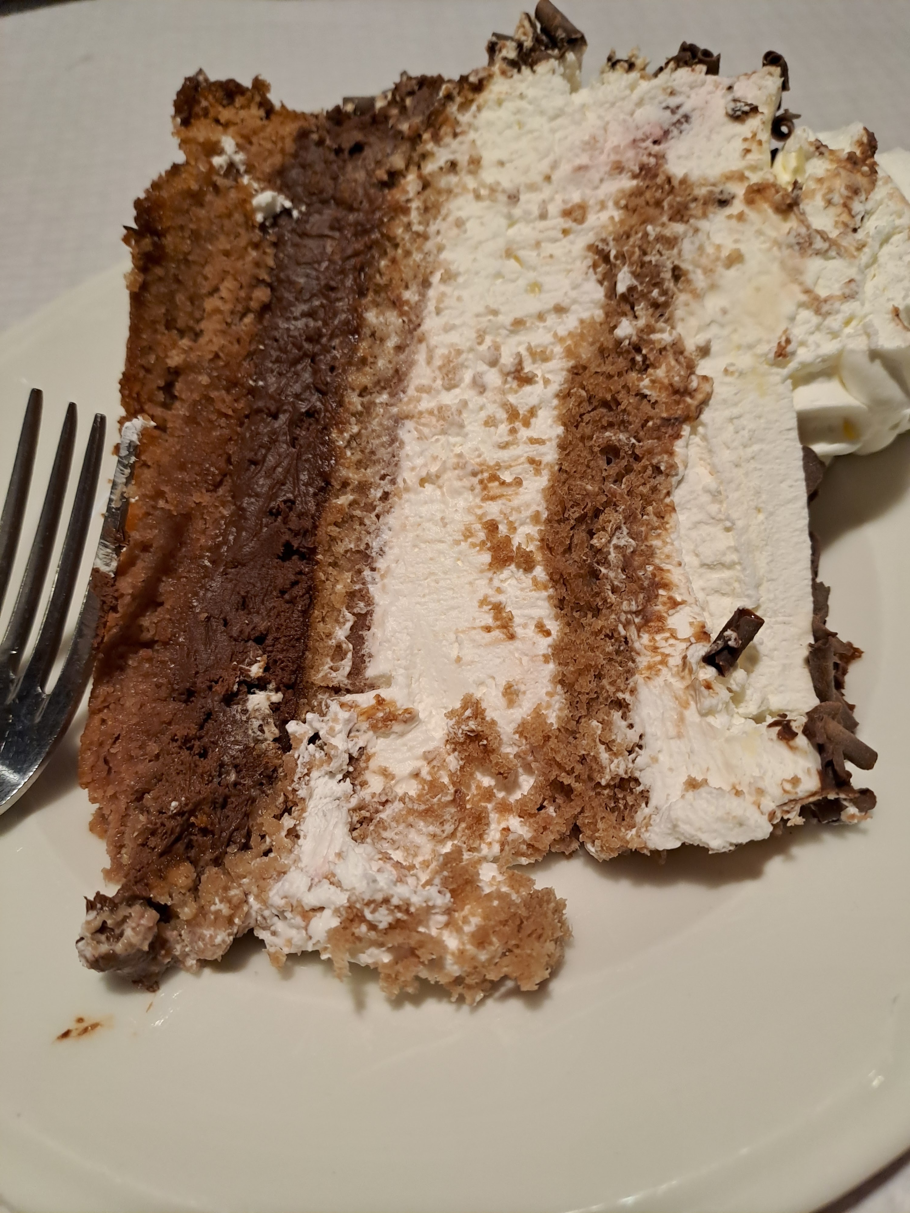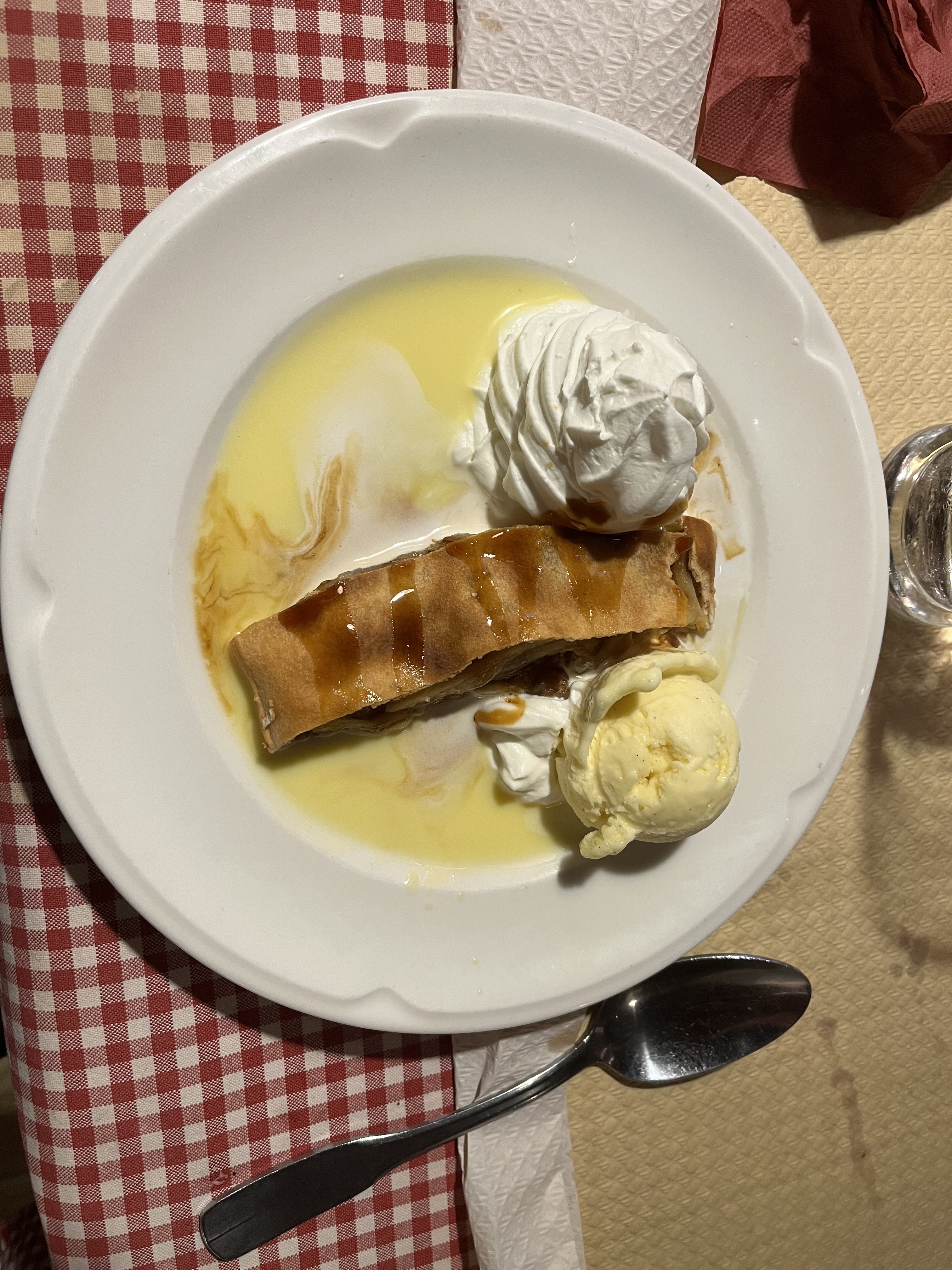 Olalala ça c’est un restaurant ! J’ai pris que le dessert en photo tellement que j’étais absorbé par les plats et comme on peut le voir c’est un part de forêt noire. Les prix sont cohérents au vu de l’emplacement, de la qualité et de la quantité. Une vraie forêt noire, classique mais si bonne. Je recommande cet établissement si vous voulez manger des bons plats traditionnels alsaciens !