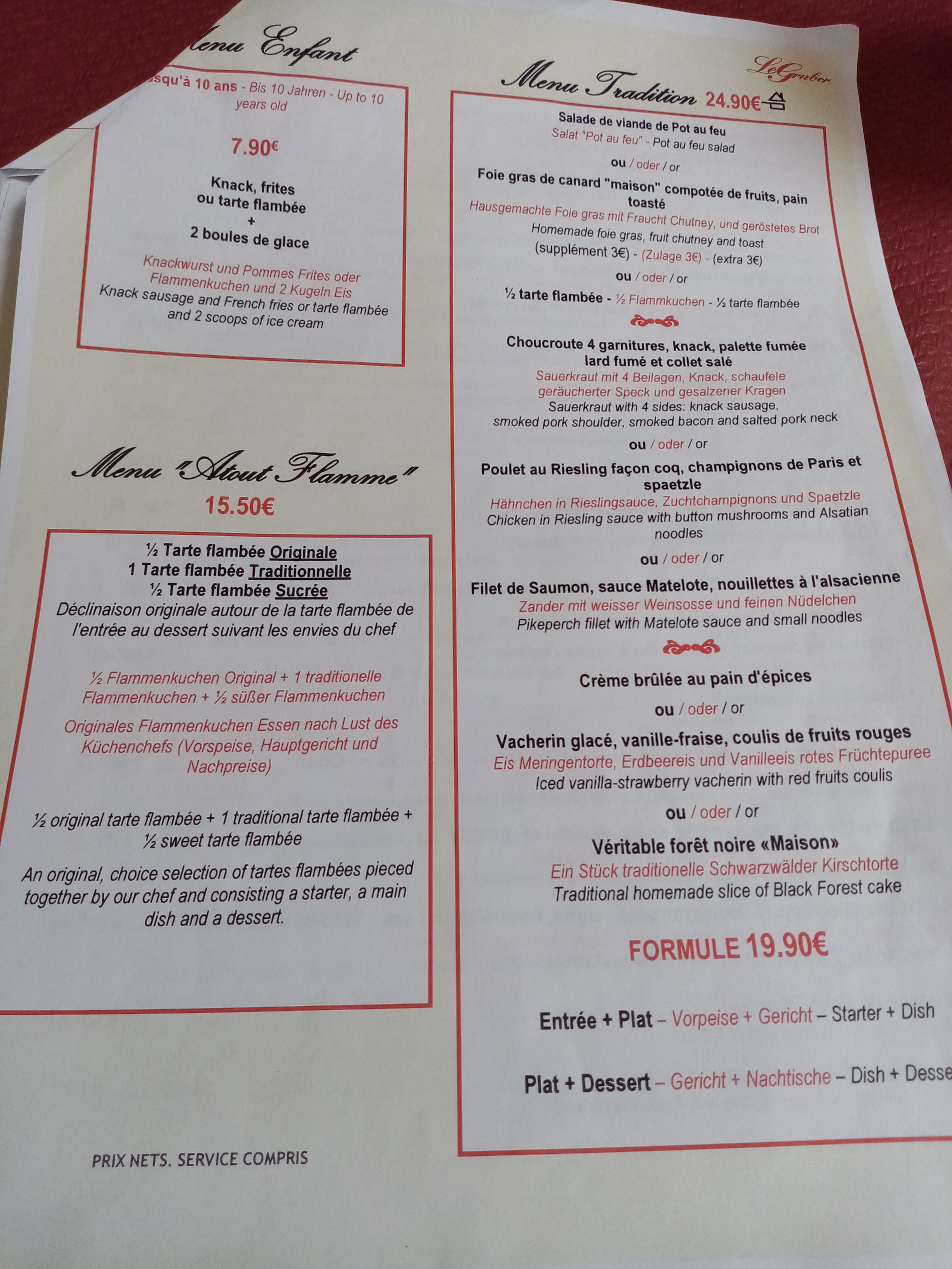 Découverte du gruber pour le repas du 24 décembre restaurant très convivial avec un très joli cadre. Le repas était très bon avec un service au top.