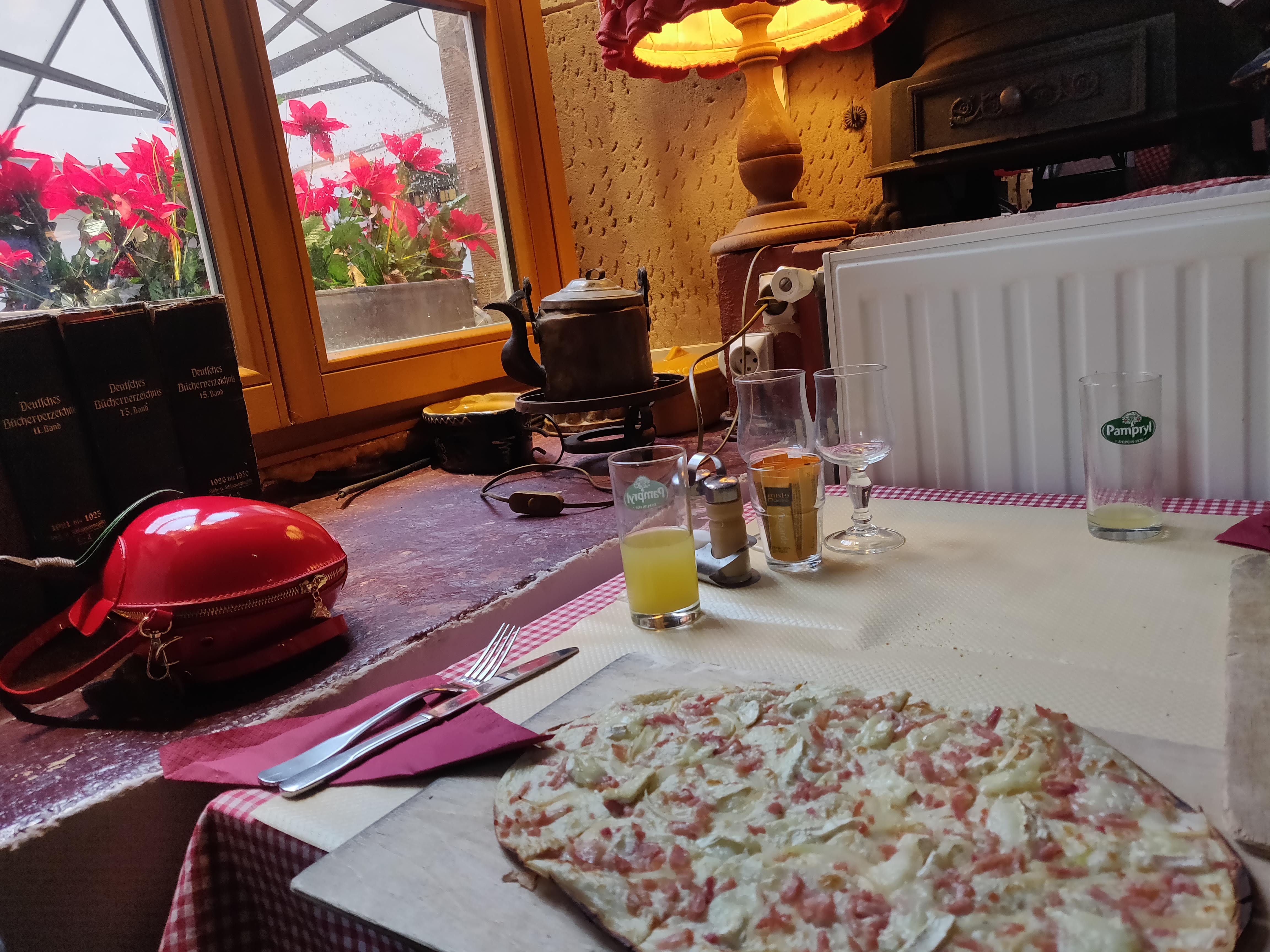 On avait peur du service en lisant les commentaires mais en fait l’accueil a été cordial par les serveurs, sans fioritures. Par contre le menu flamme nous apporte une succession de flammekuches industrielles sans saveur, cuites dans des fours électriques. Il y a certainement de meilleures adresses pour une expérience gastronomique. Edit : je baisse d’une étoile après avoir passé la nuit avec des maux d’estomac. Expérience vraiment négative. Merci de liker ou commenter si cet avis vous a été utile 👍🏻