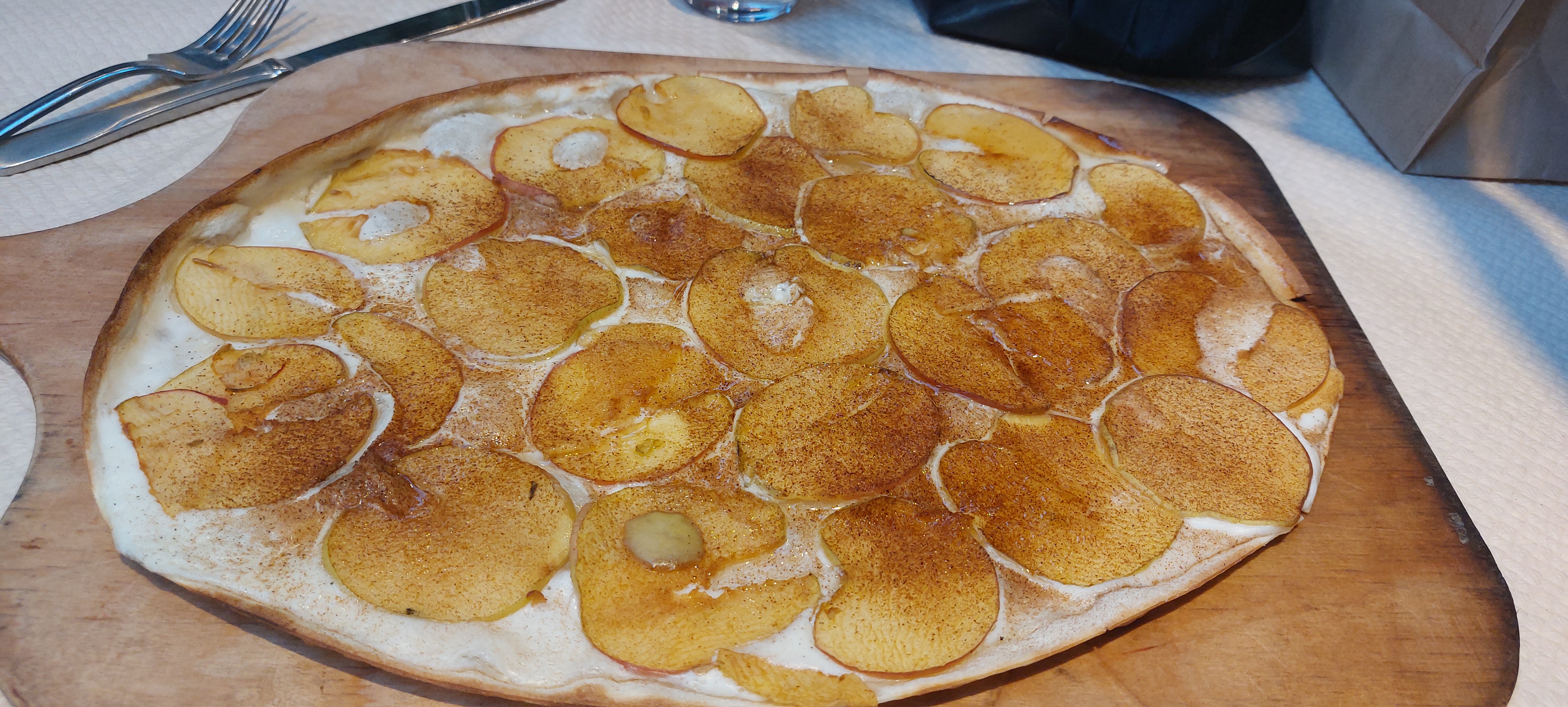 Bon accueil. Tartes flambées correctes. Par contre, la tarte flambée sucrée cerise /canelle était particulière ( recette choisie par le chef) ... Un an plus tard, j'y suis retournée. Accueil toujours agréable, palette de porc excellente. Je reviendrai l'an prochain 👍