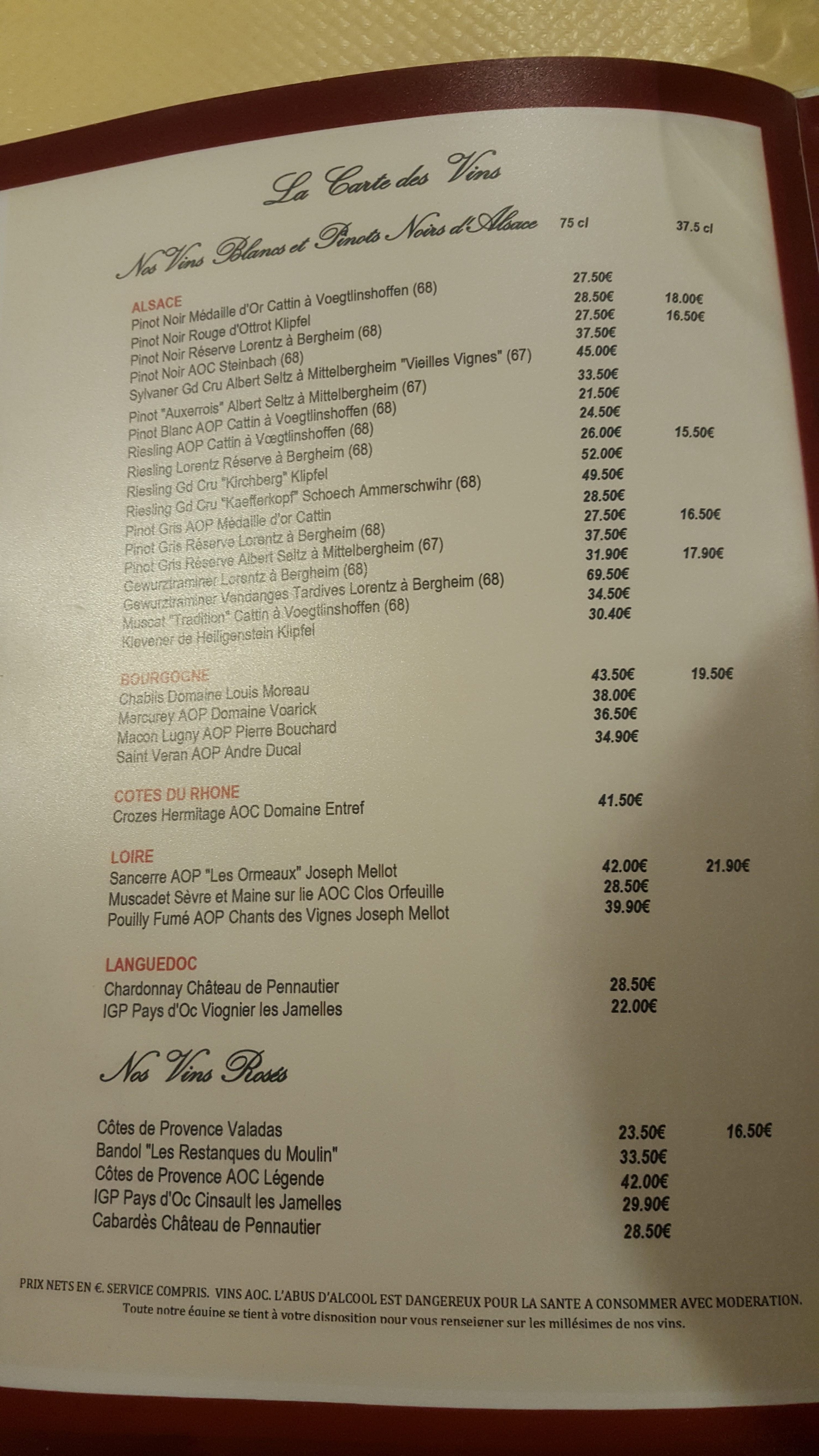Juste WOOOOAW De visite pour la première fois dans cette ville, il a bien fallut faire un choix pour le restaurant et rien que la devanture de cet établissement faisait envie. L'intérieur est atypique et va en adéquation avec l'histoire de cette ville. La décoration intérieure est vraiment incroyable. Concernant la carte, celle-ci est plutôt varié on peut manger de tout, Concernant les spécialités Alsacienne elles sont également variées et d'ailleurs nous en avons chacun prit une et personne n'a été déçu qu'il en soit de la quantité à la présentation jusqu'à la qualité. Je félicite les cuisiniers. Le choix des vins est également varié, pour ma part je ne suis pas un grand amateur de blanc mais dans une région comme celle-ci difficile de ne pas commander une des spécialités local qui de plus sont nombreuses sur la carte (pinot, gewurztraminer...) pour ma part nous avons commandé un gewurztraminer que je recommande pour ceux qui sont difficile en blanc comme moi. Le personnel (serveurs), un peu dépassé au vu du monde présent à tout de même été à la hauteur, poli, courtois et même de très bon conseil. Je recommande également le menu terroir qui m'a plus que surpris gustativement. Si je devais revenir à Strasbourg incontestablement je remettrais les pieds dans ce restaurant et encore une fois merci à tout le personnel.